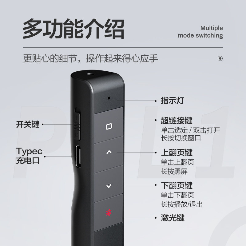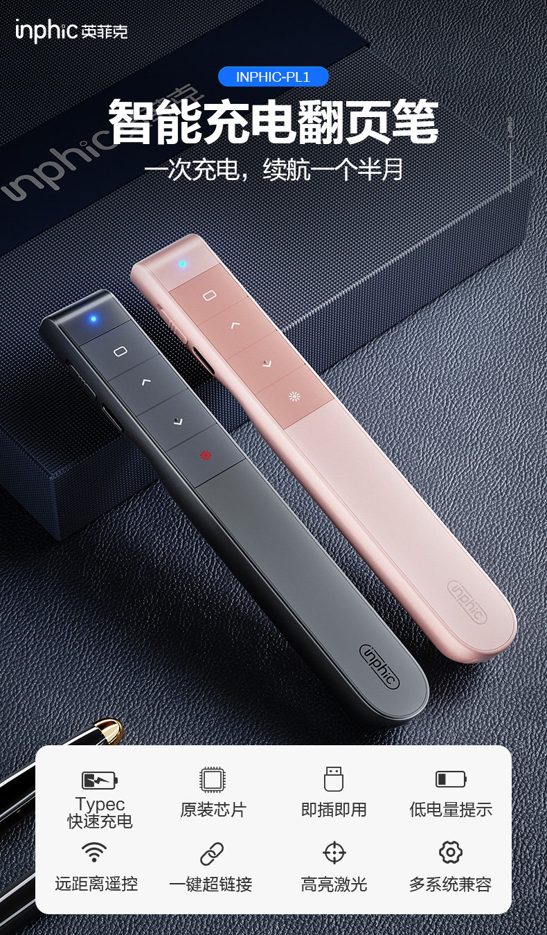 英菲克PL1激光ppt充电翻页笔教师用多功能电子投影仪讲课幻灯片切换翻阅红外线遥控器多媒体电脑希沃演讲控制