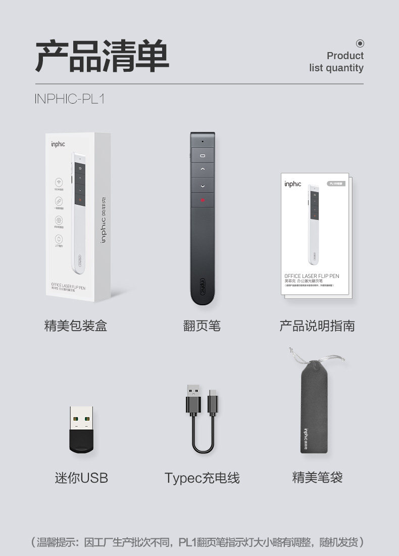 HomeProducts英菲克PL1激光ppt充电翻页笔教师用多功能电子投影仪讲课幻灯片切换翻阅红外线遥控器多媒体电脑希沃演讲控制
