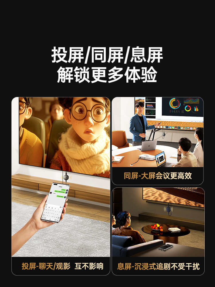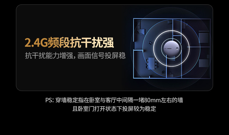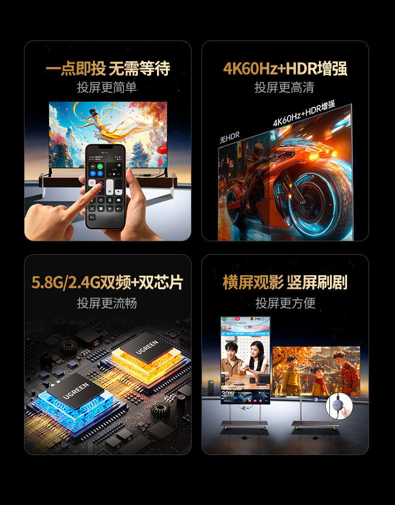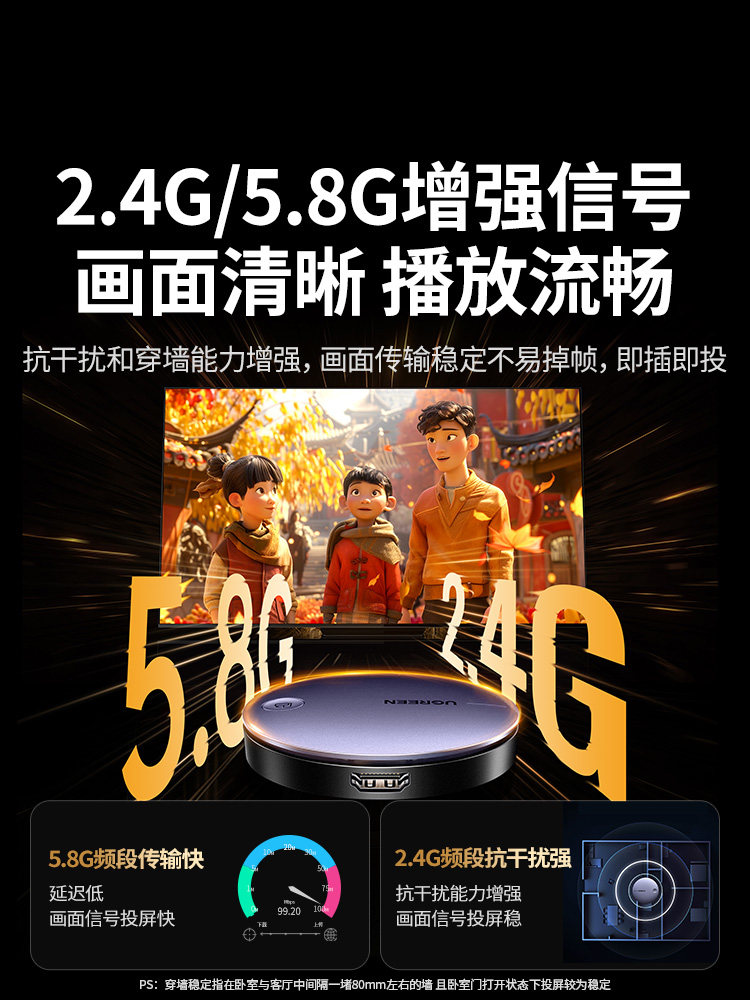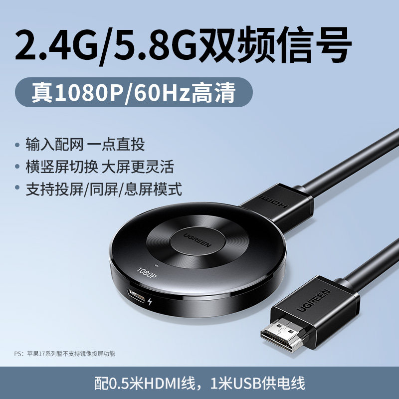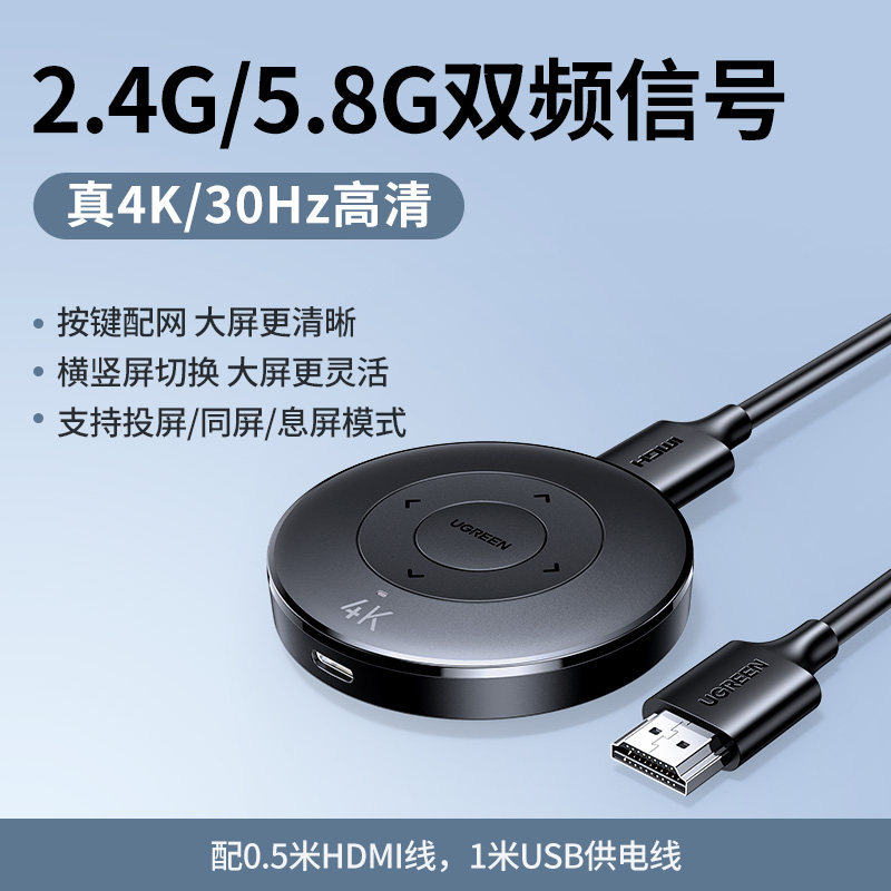 【投屏/同屏/息屏-真1080P/60Hz】2.4G/5.8G双频★按键配网