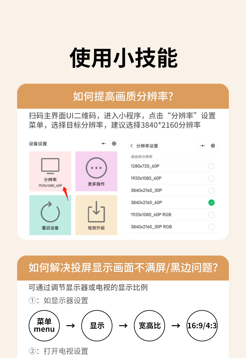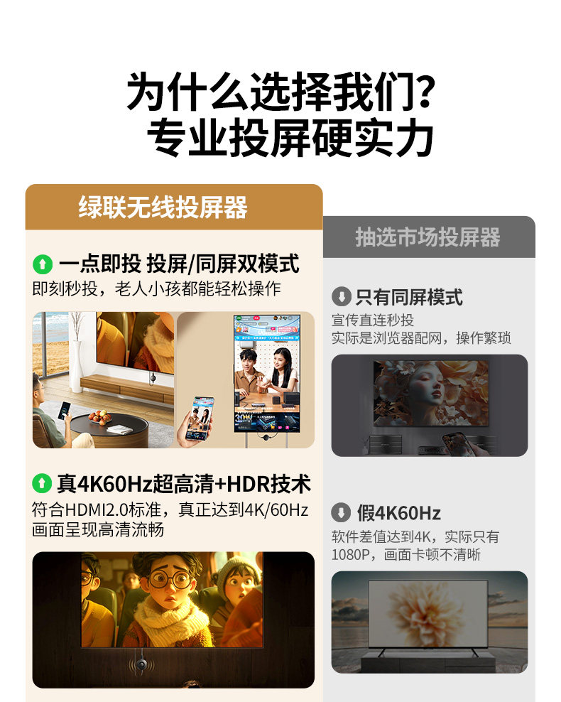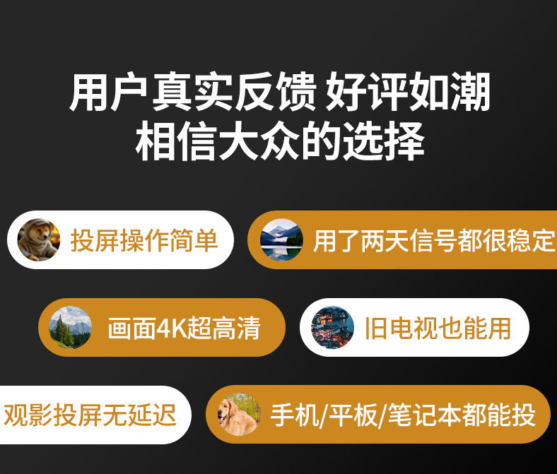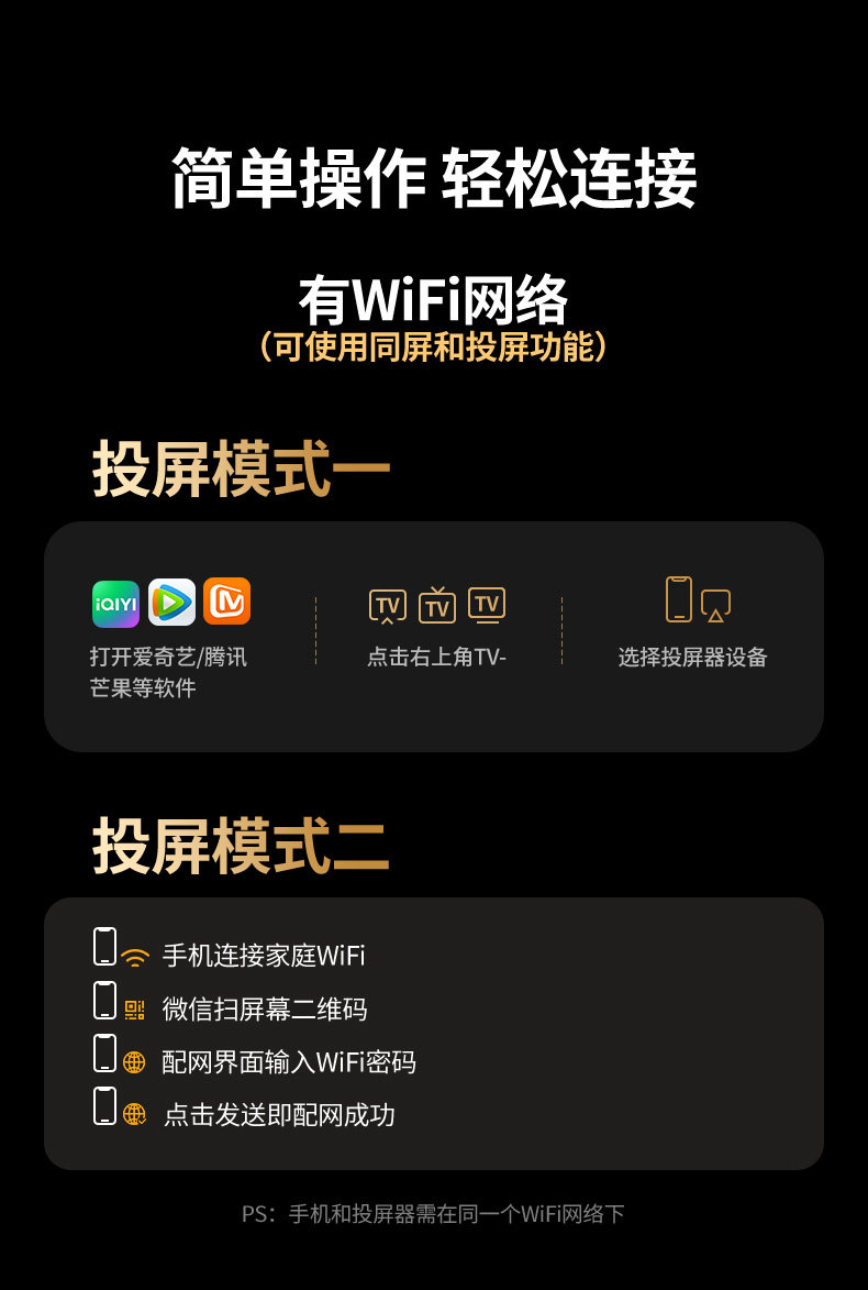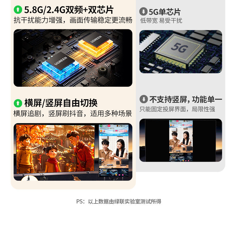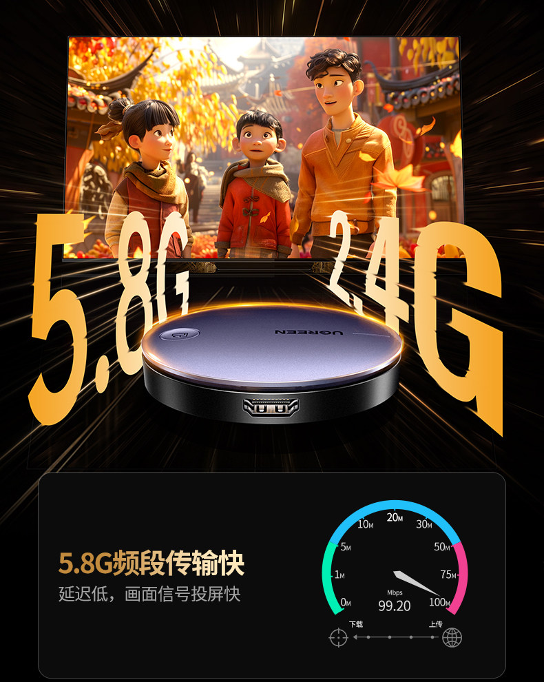 【投屏/同屏/息屏-真1080P/60Hz】2.4G/5.8G双频★按键配网