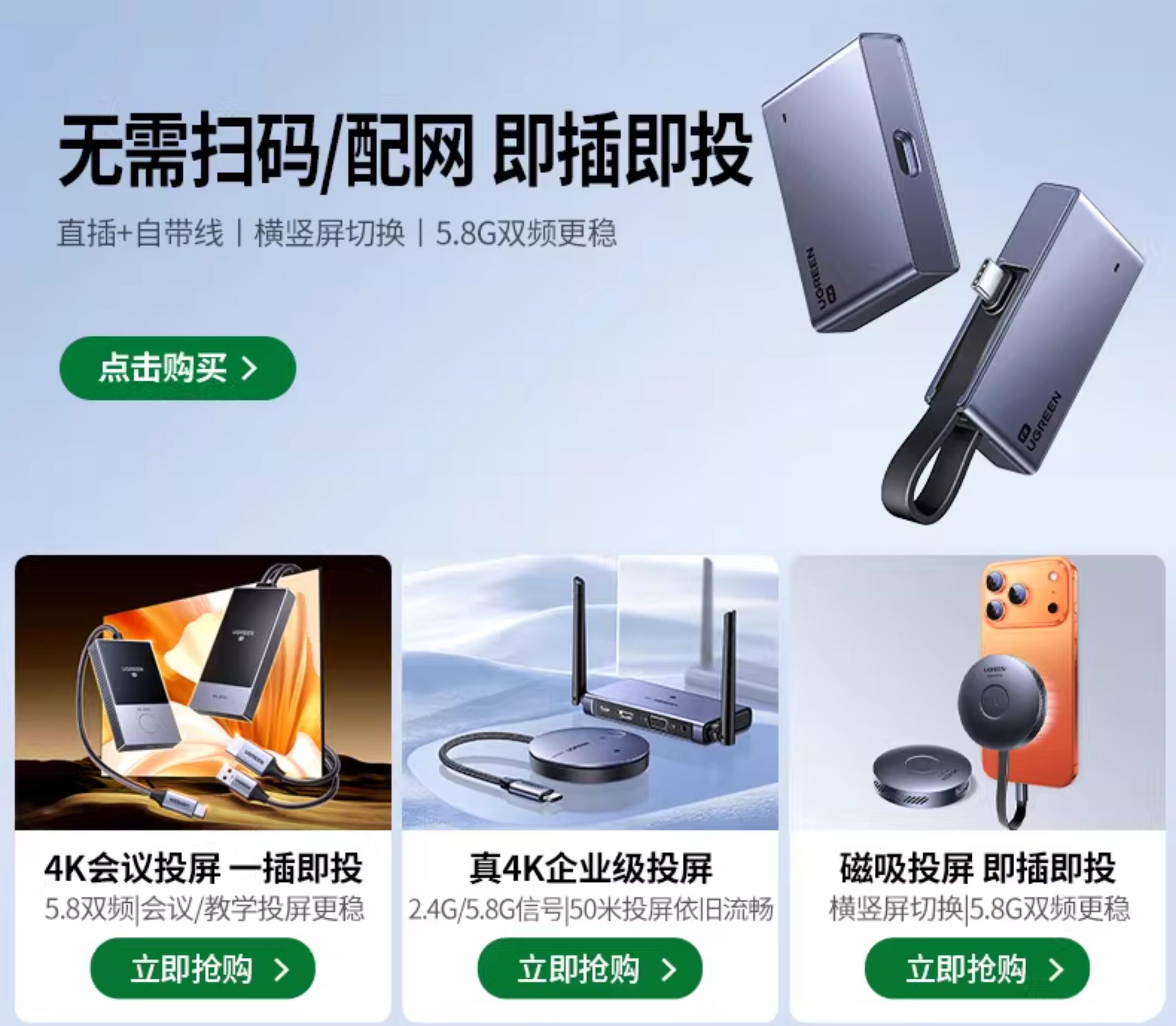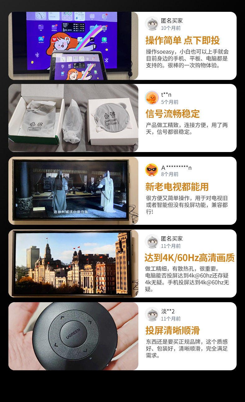 HomeProducts绿联无线投屏器手机连接电视机hdmi高清显示电脑同屏转换神器新款