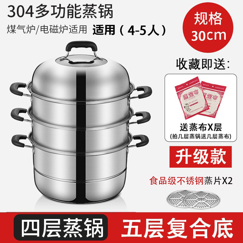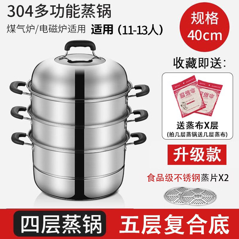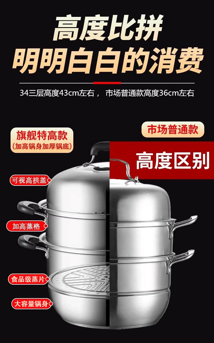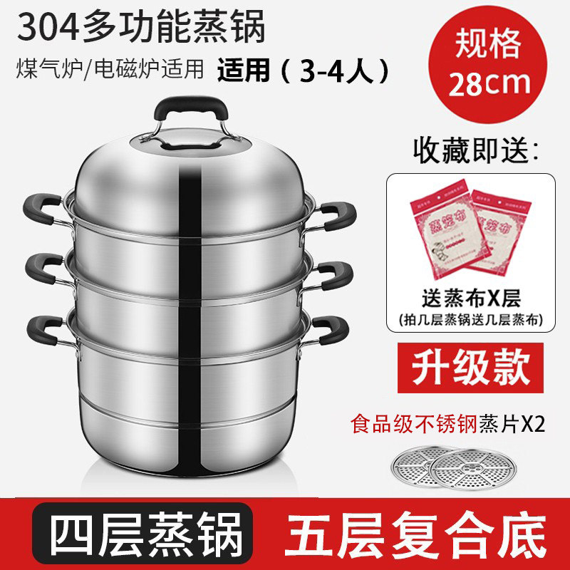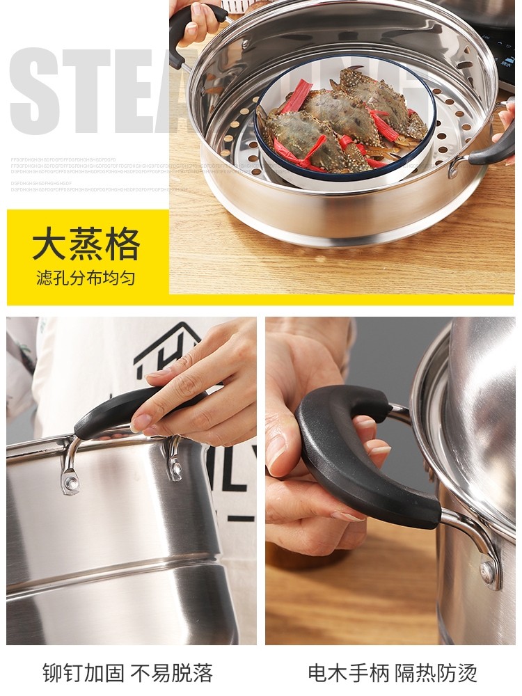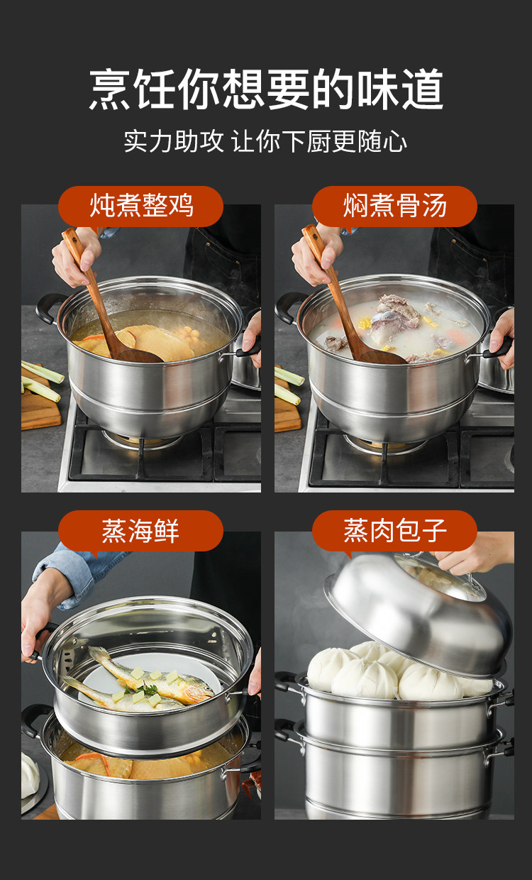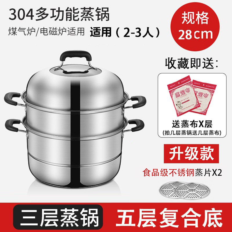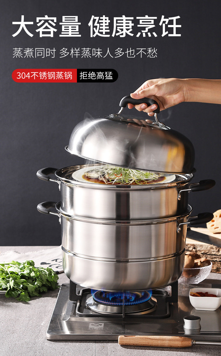 蒸锅家用2026新款304不锈钢三层加厚小型蒸锅大号蒸笼煤气电磁炉