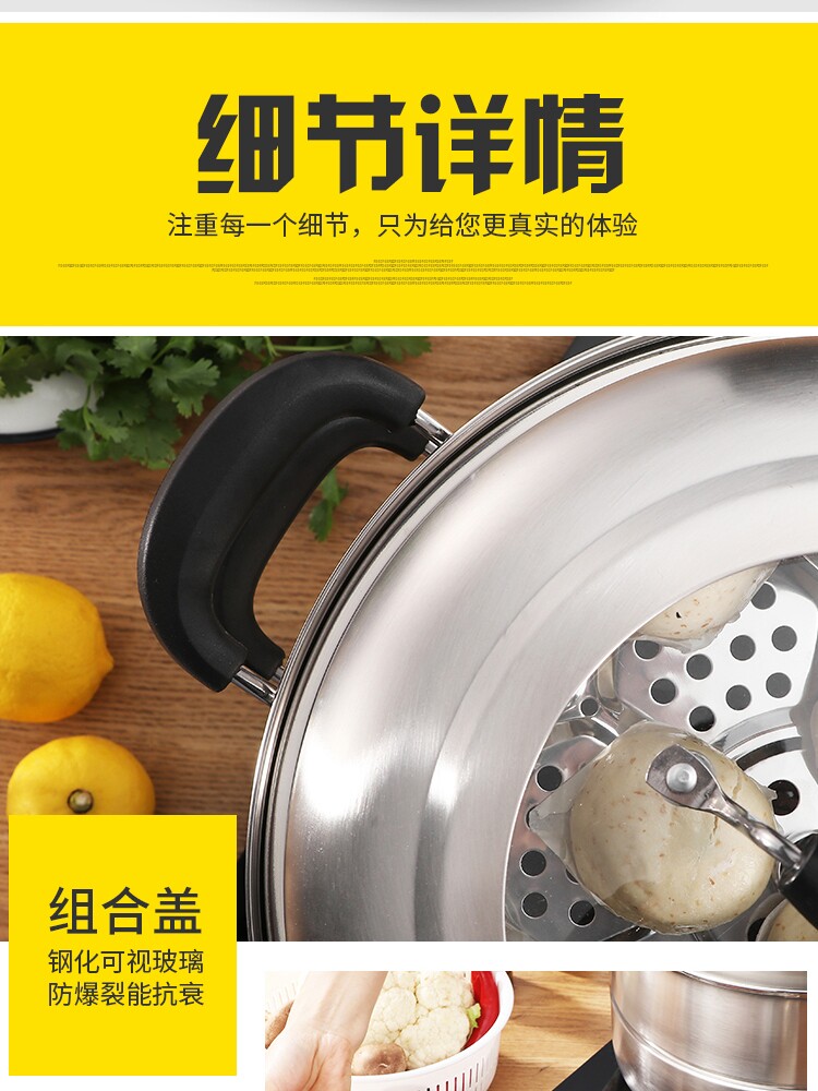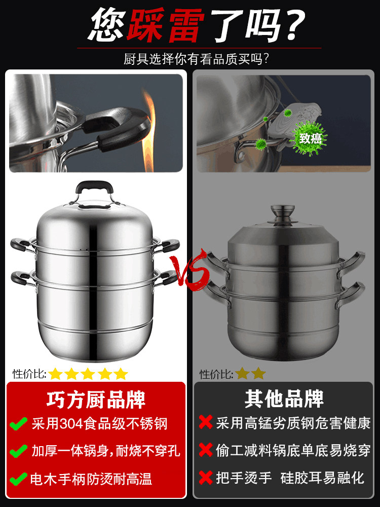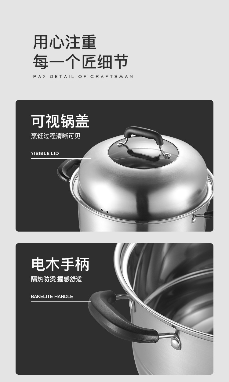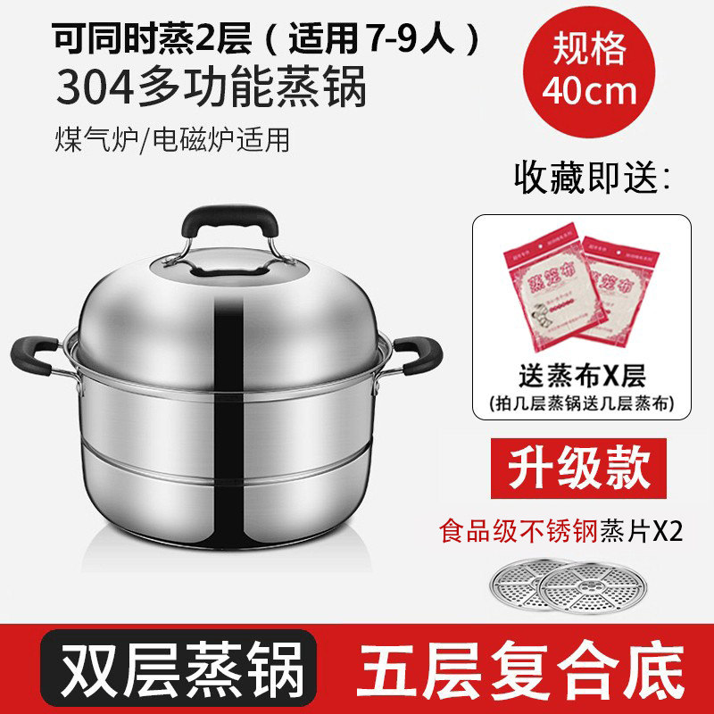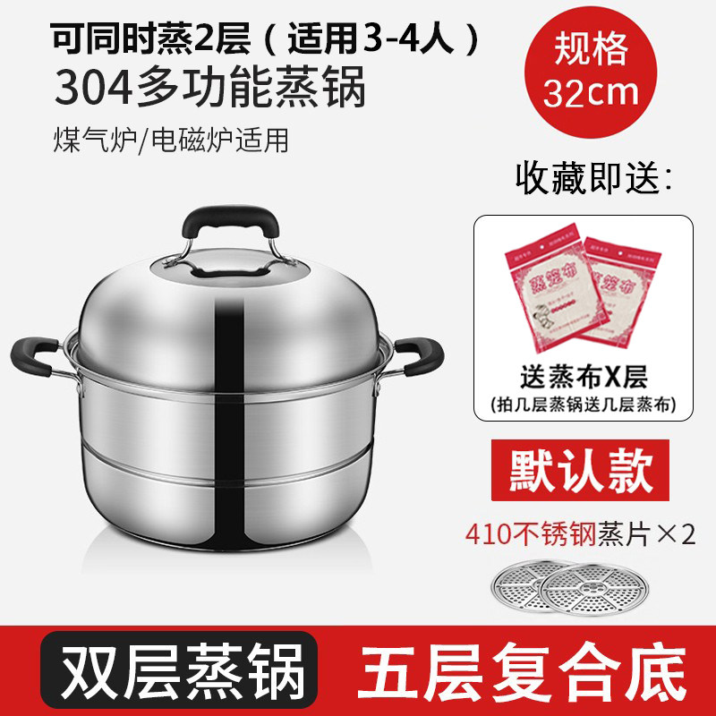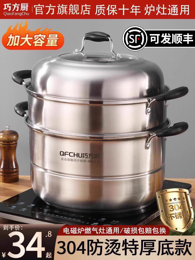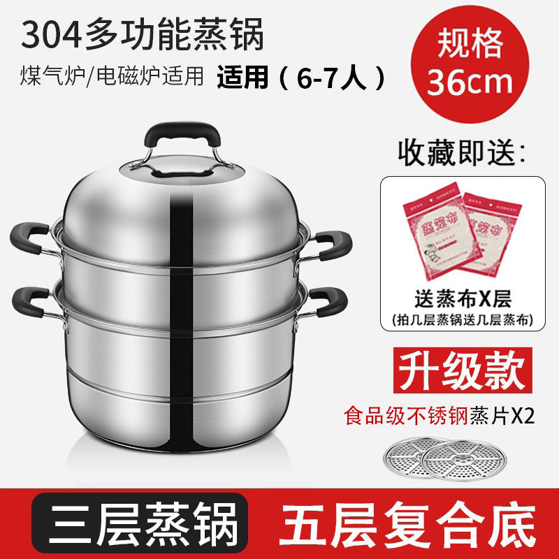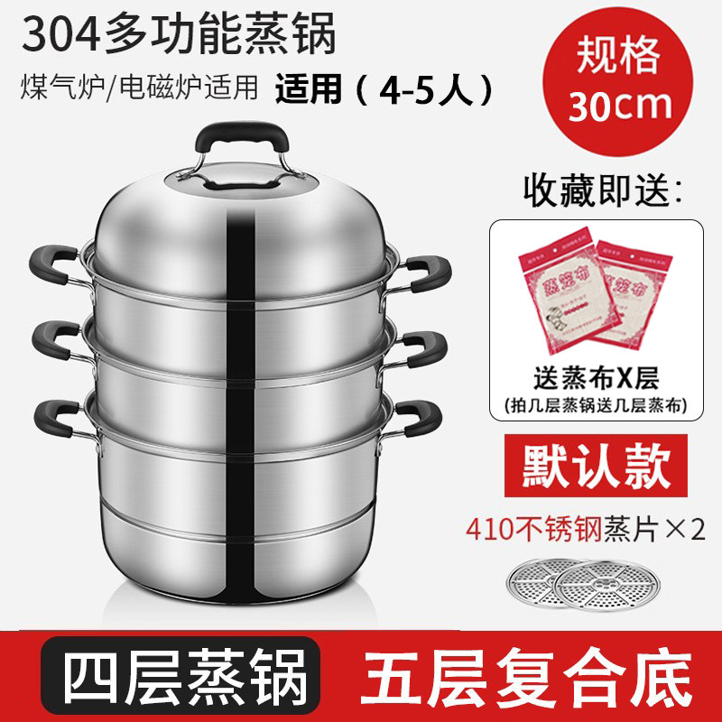 蒸锅家用2026新款304不锈钢三层加厚小型蒸锅大号蒸笼煤气电磁炉