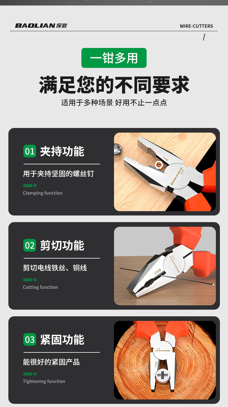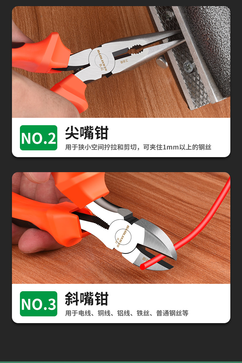 HomeProducts老虎钳钢丝钳多功能家用老虎专用工具大全电工斜口尖嘴工业级钳子