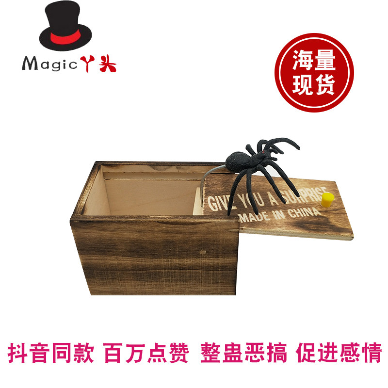 万圣节吓人一跳蜘蛛木盒子整人恶搞礼物惊喜整蛊送男友玩具道具