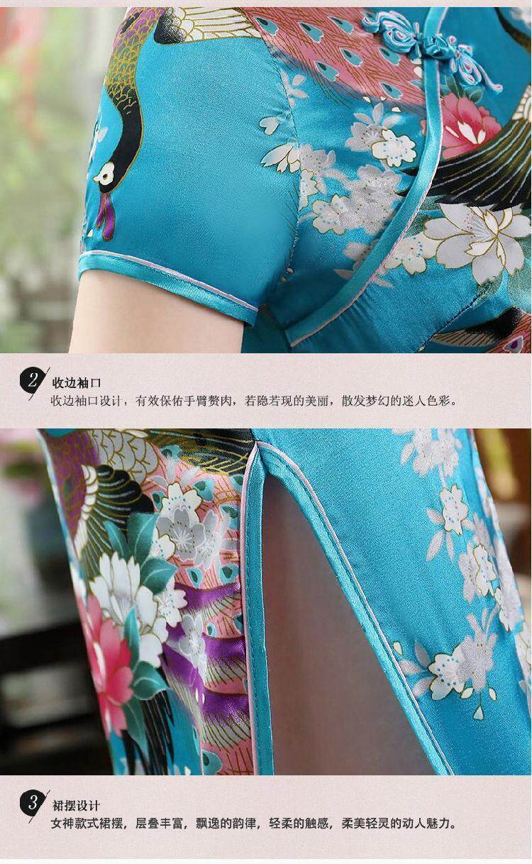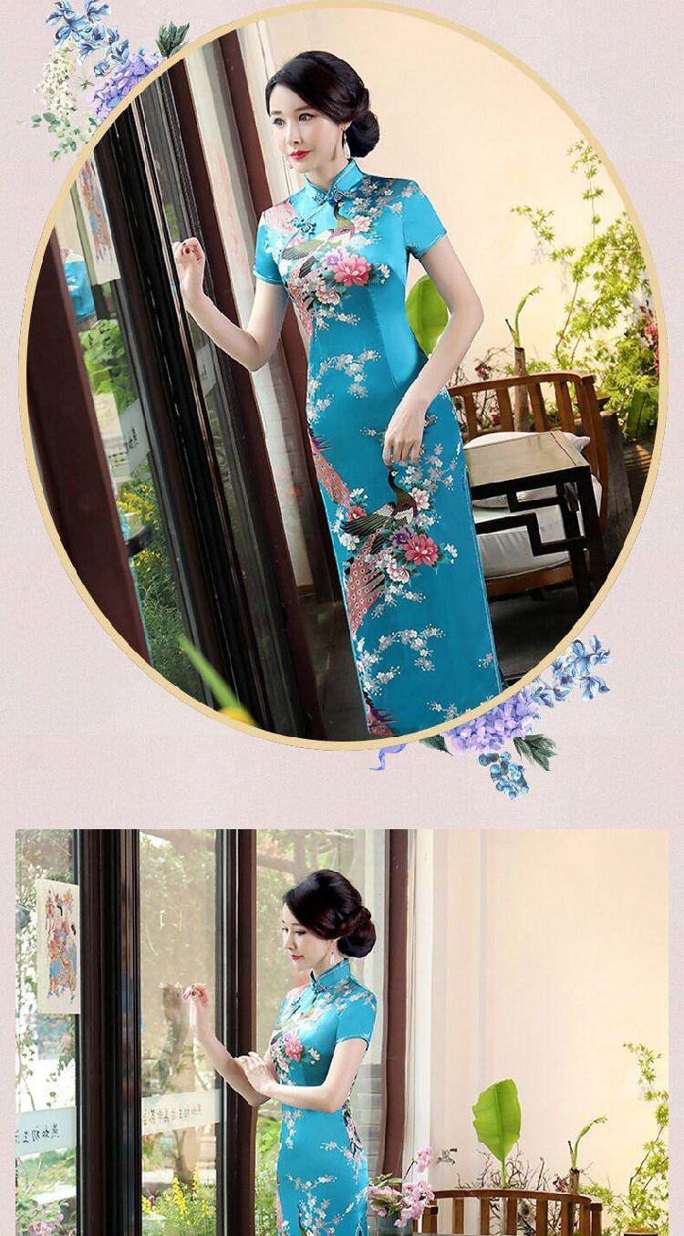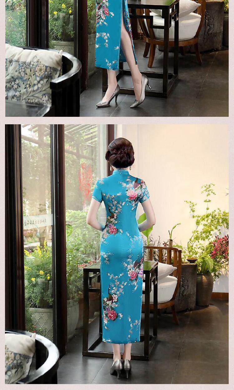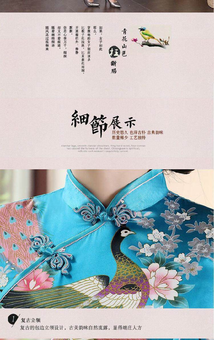 旗袍长款大码时尚短袖旗袍裙走秀表演日常连衣裙优雅精致复古