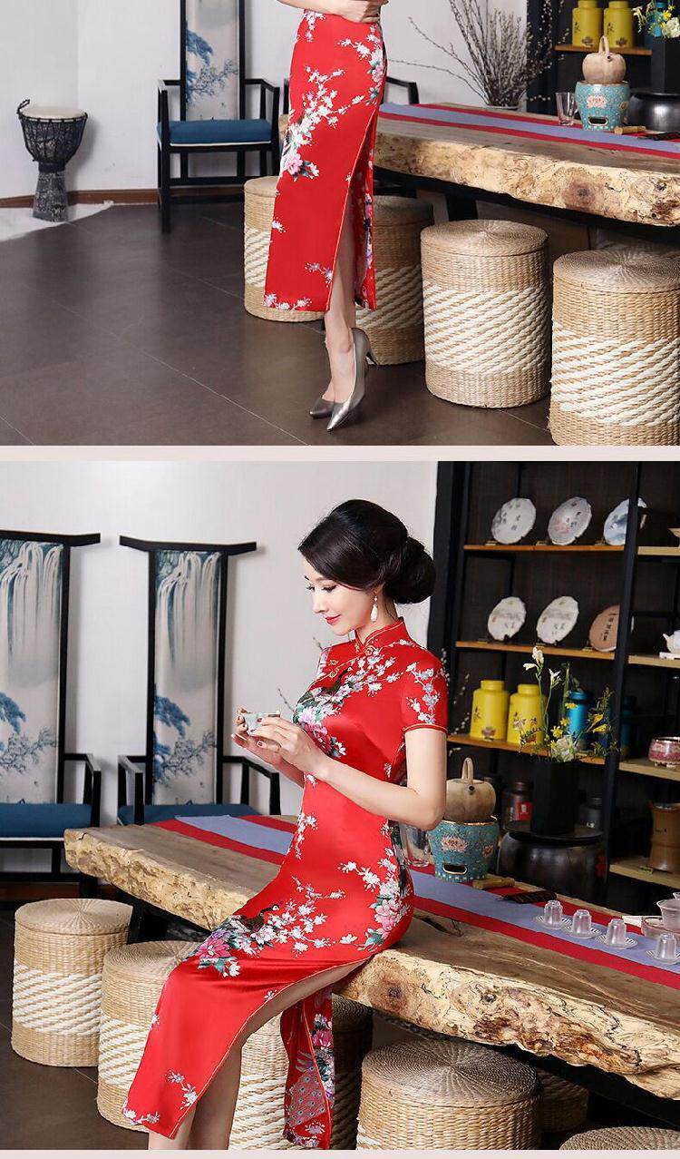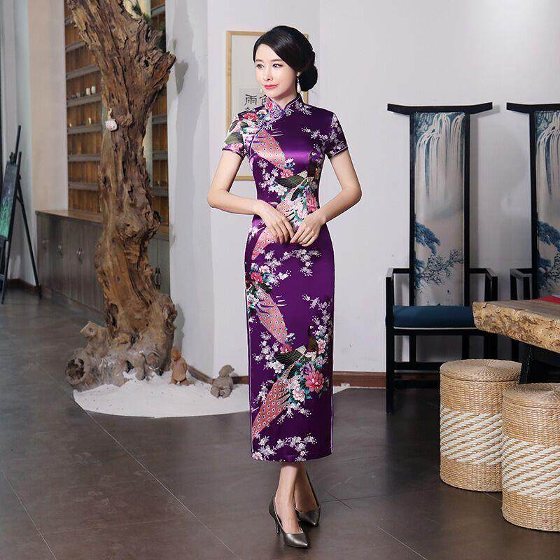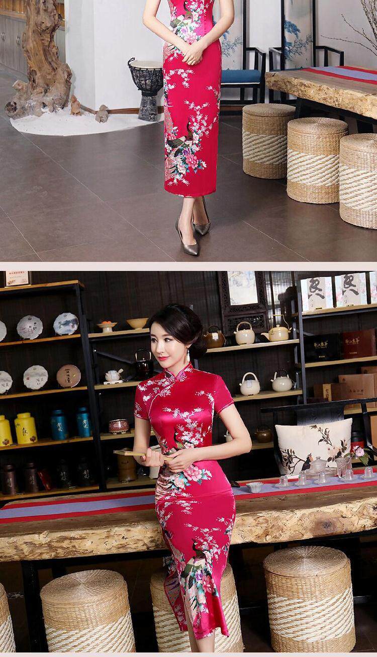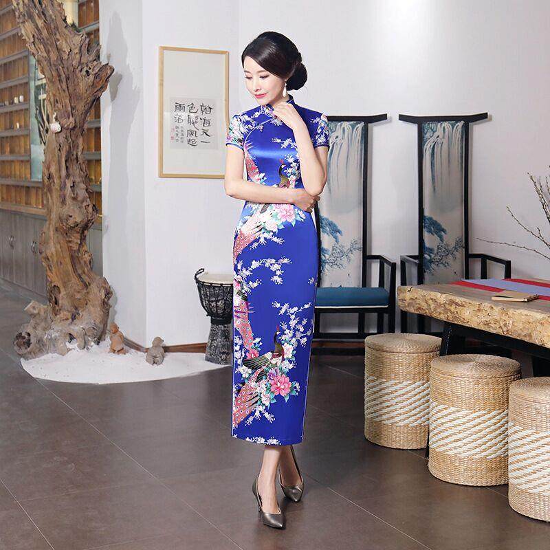 旗袍长款大码时尚短袖旗袍裙走秀表演日常连衣裙优雅精致复古