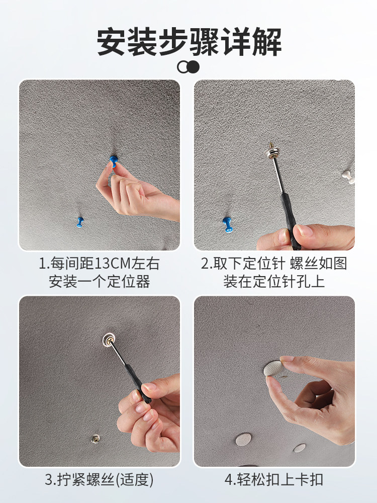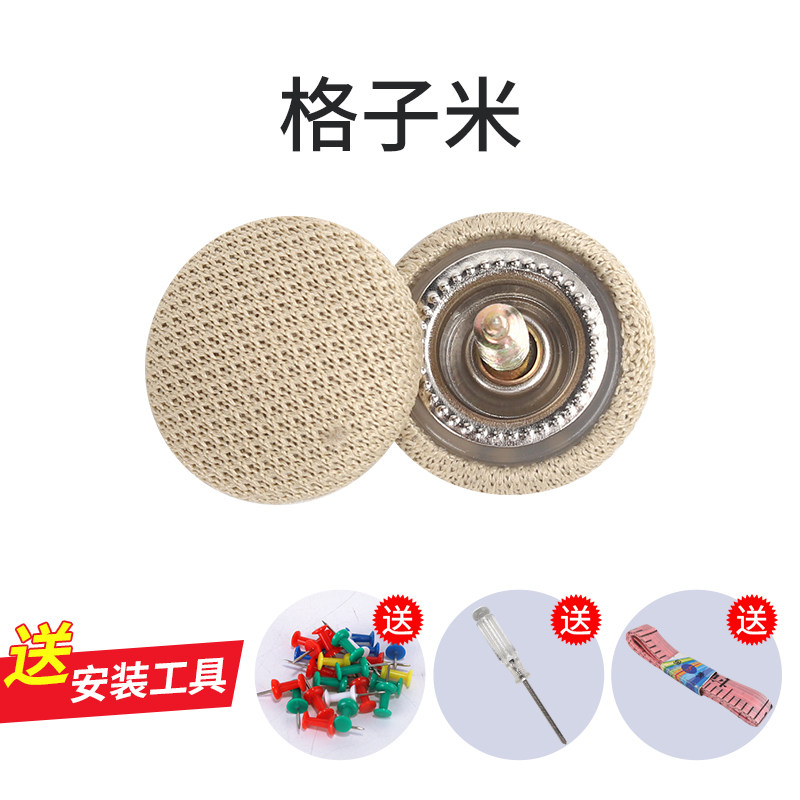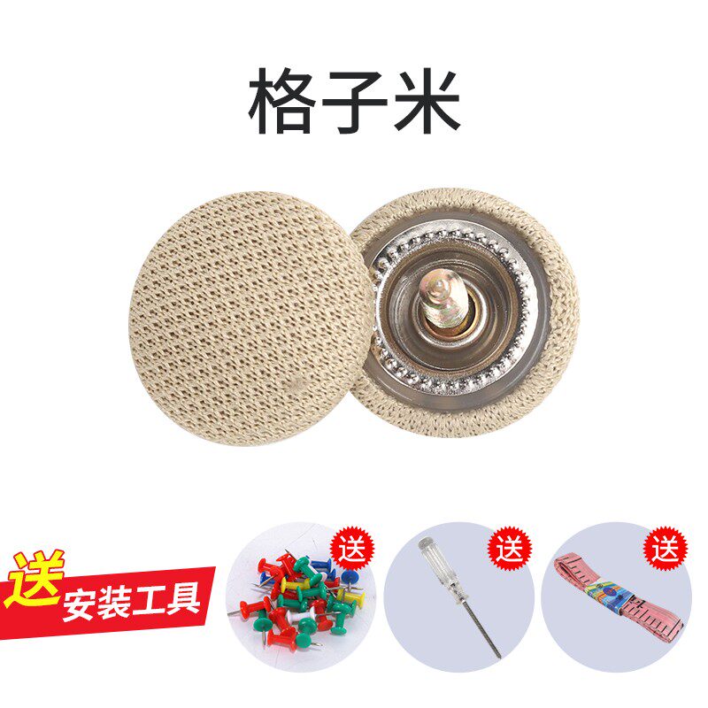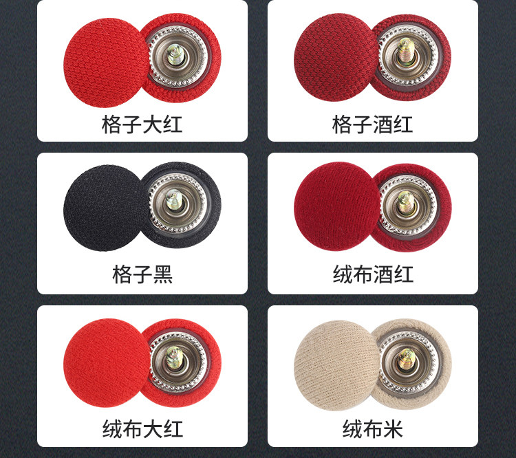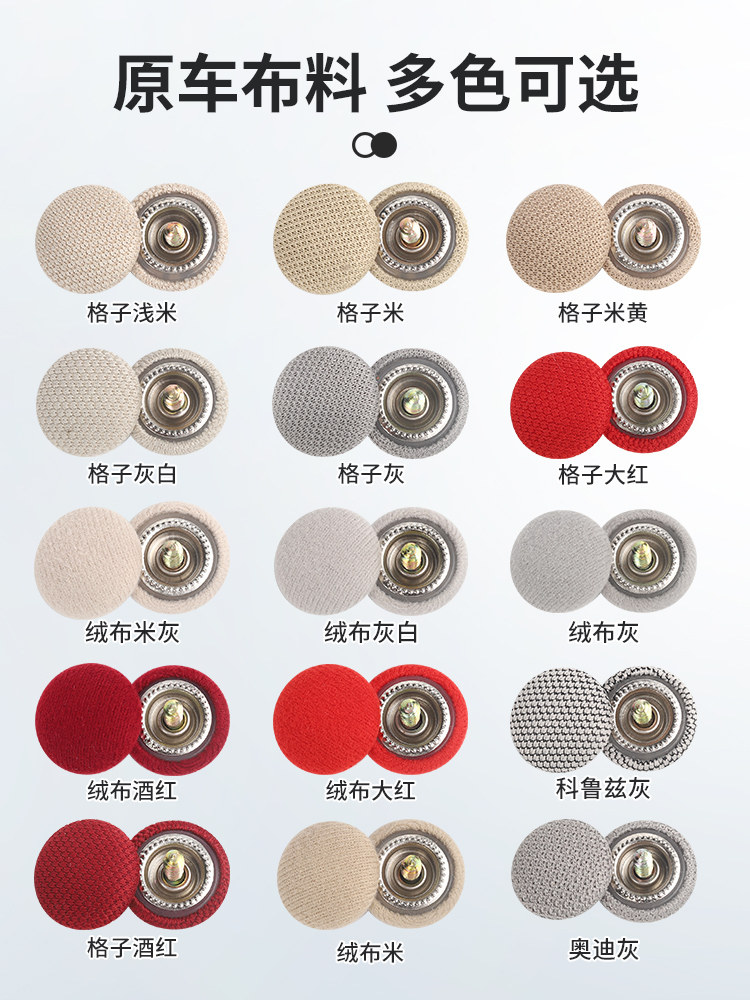 本产品介绍: 一种卡扣组件以及使用上述卡扣组件的车顶棚布固定结构,其中,卡扣组件包括用于穿入车顶的螺丝以及用于将棚布顶在车顶上的卡扣,所述卡扣包括公扣和母扣,所述公扣上设置有呈圆柱形的插接部,母扣上设置有用于插入并卡住插接部的插接孔,所述插接部的中部开设有用于插入螺丝的安装孔以及防止螺丝穿出安装孔的挡圈,所述插接部的一端设置有一圈用于顶在棚布上的固定圈。本产品结构简单,只需要拧入螺丝,并将母扣卡入公扣上即可,安装操作较为方便,并且棚布的固定较为平整,使得脱落的车顶棚布经过修复后,外观较为平整,整体美观效果好,并且母扣可以提供一定的装饰效果,相对现有的修复方式,美观程度大大提高。