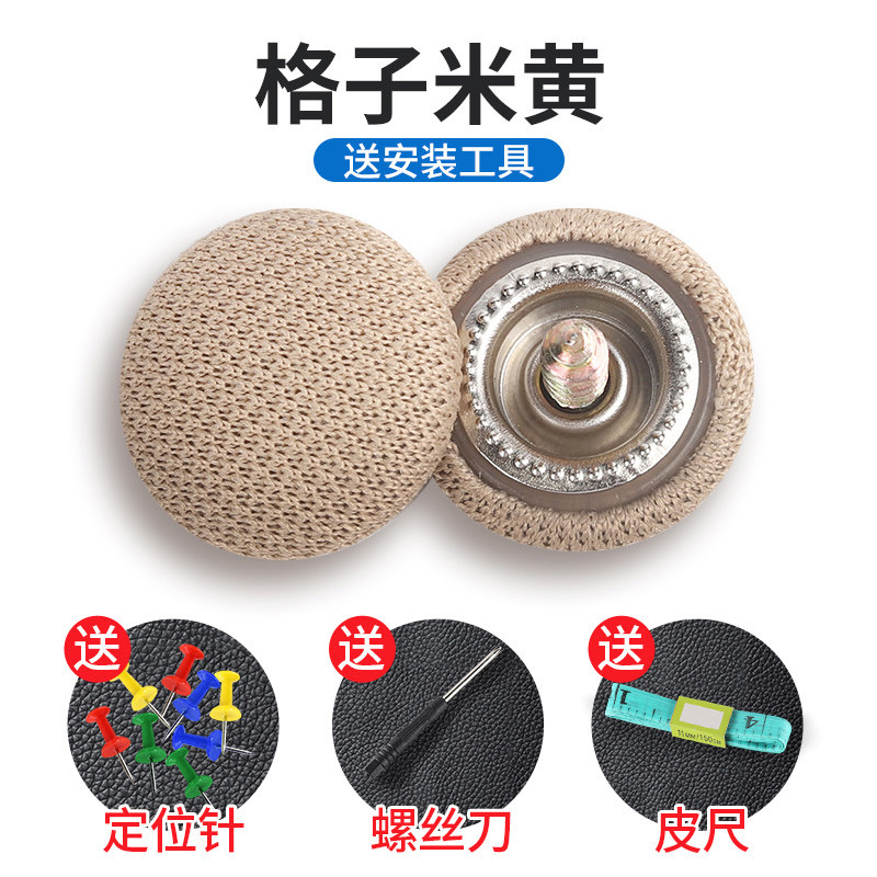 本产品介绍:一种卡扣组件以及使用上述卡扣组件的车顶棚布固定结构,其中,卡扣组件包括用于穿入车顶的螺丝以及用于将棚布顶在车顶上的卡扣,所述卡扣包括公扣和母扣,所述公扣上设置有呈圆柱形的插接部,母扣上设置有用于插入并卡住插接部的插接孔,所述插接部的中部开设有用于插入螺丝的安装孔以及防止螺丝穿出安装孔的挡圈,所述插接部的一端设置有一圈用于顶在棚布上的固定圈。本产品结构简单,只需要拧入螺丝,并将母扣卡入公扣上即可,安装操作较为方便,并且棚布的固定较为平整,使得脱落的车顶棚布经过修复后,外观较为平整,整体美观效果好,并且母扣可以提供一定的装饰效果,相对现有的修复方式,美观程度大大提高。
