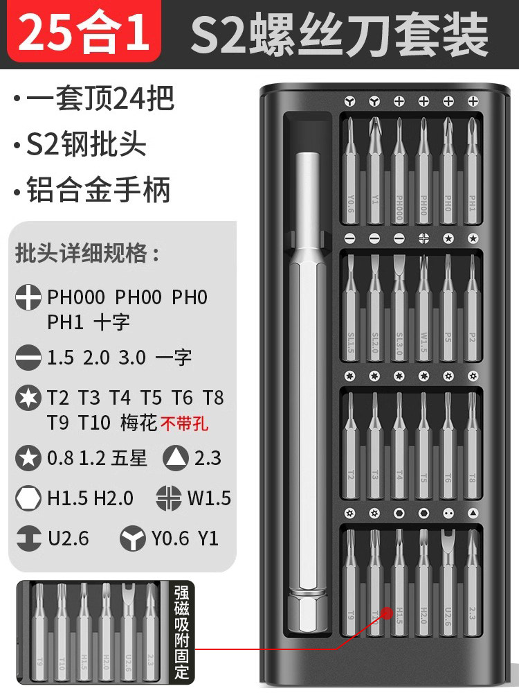 【S2钢】25件精密螺丝刀强磁收纳