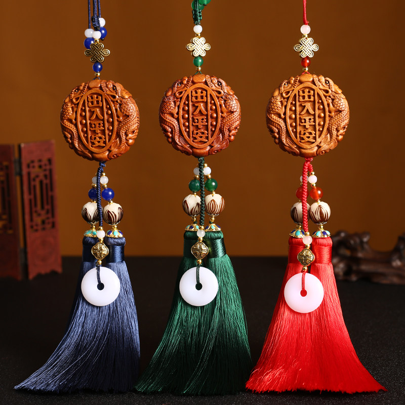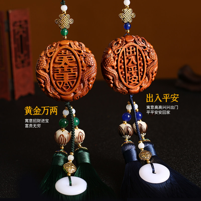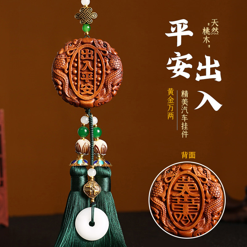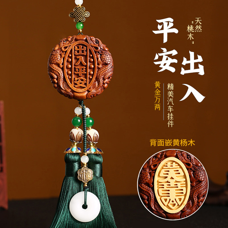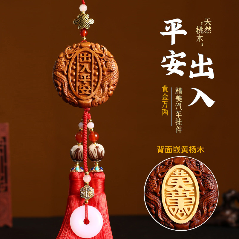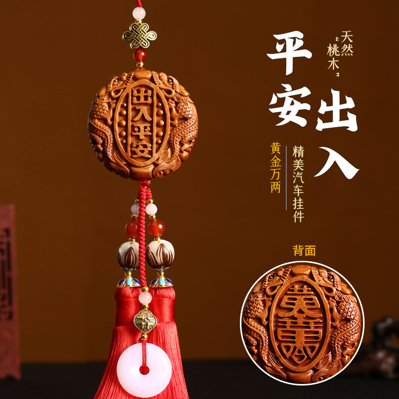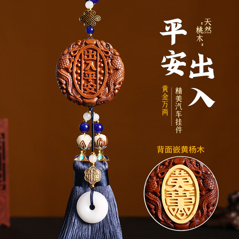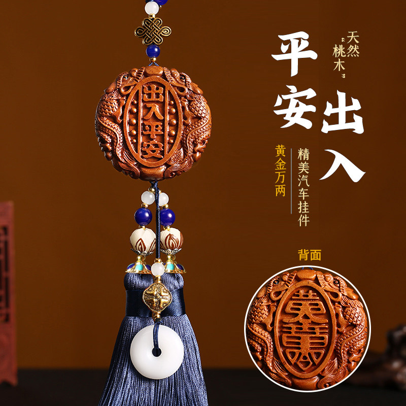 汽车挂件平安符桃木出入平安吊饰车内饰品车载男士高档小车平安