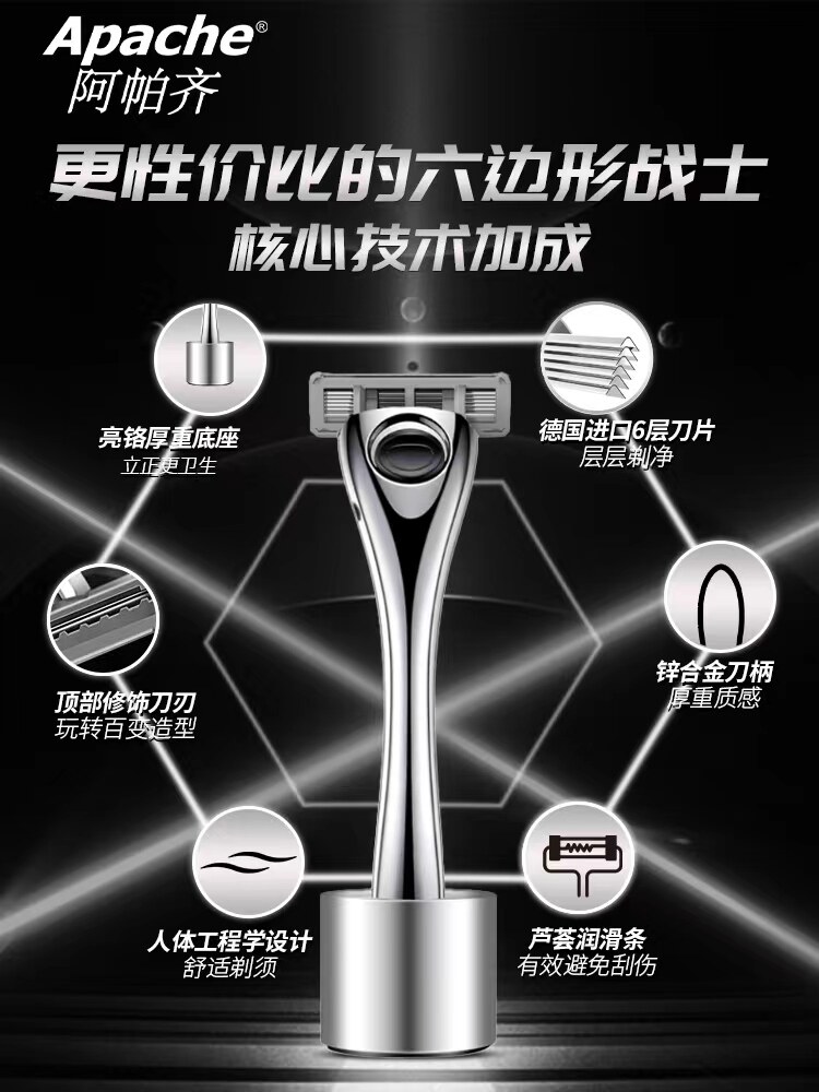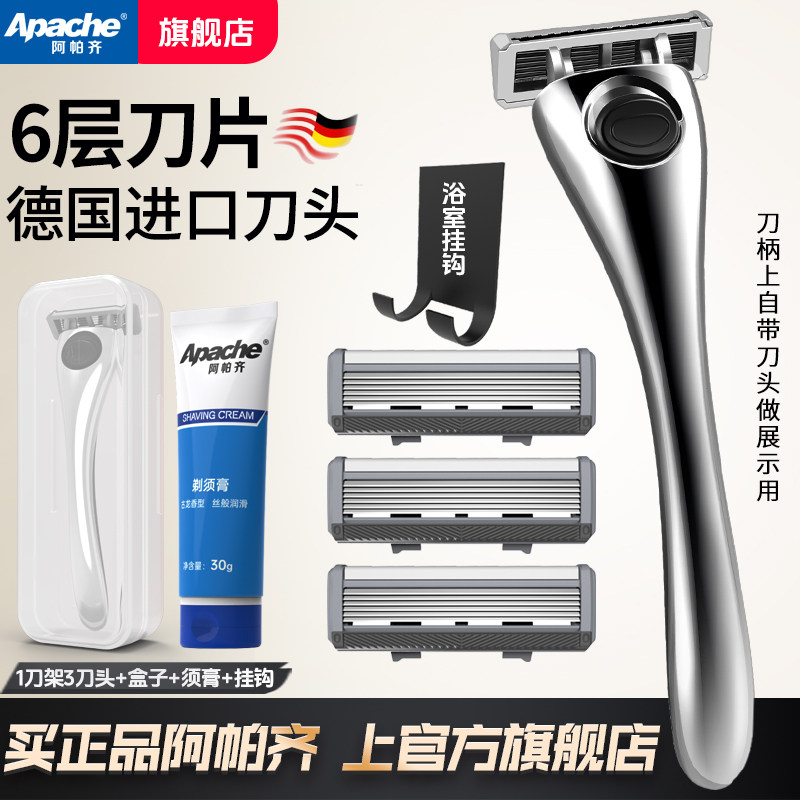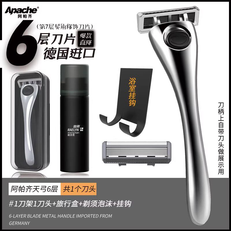 阿帕齐天弓六层剃须刀手动阿帕奇手动刮胡刀手动式刮胡子胡须刀男