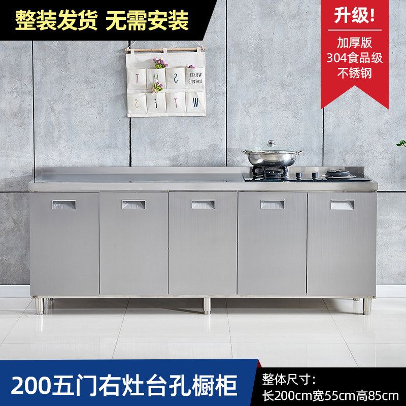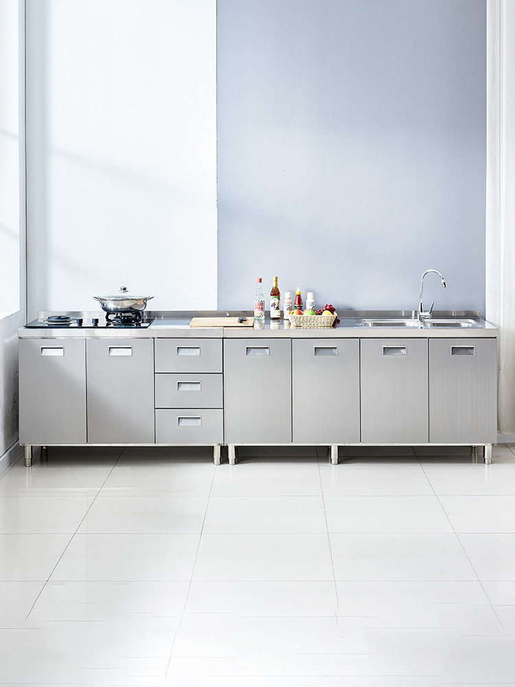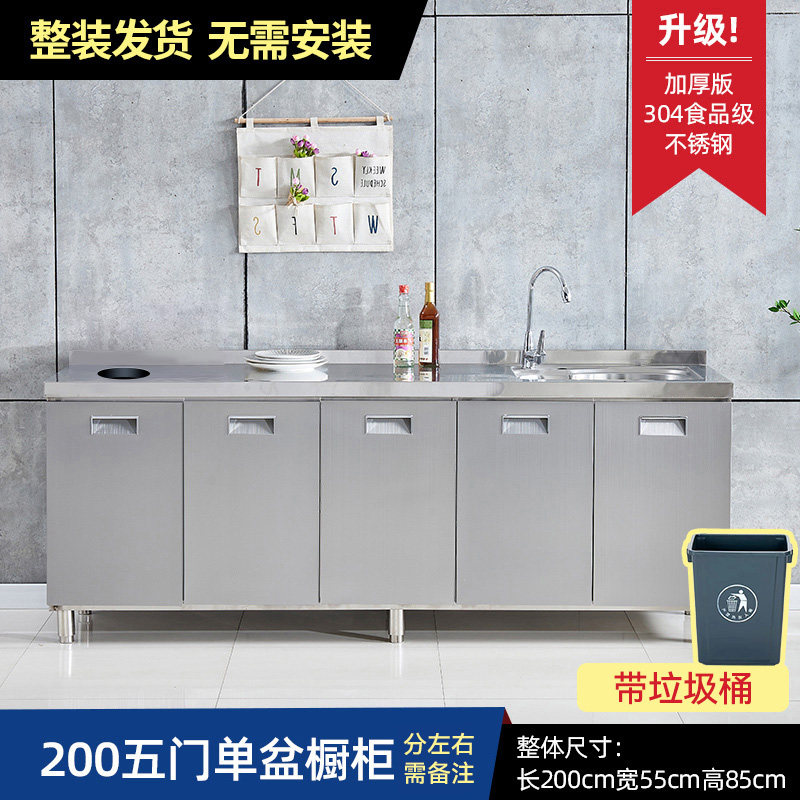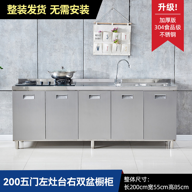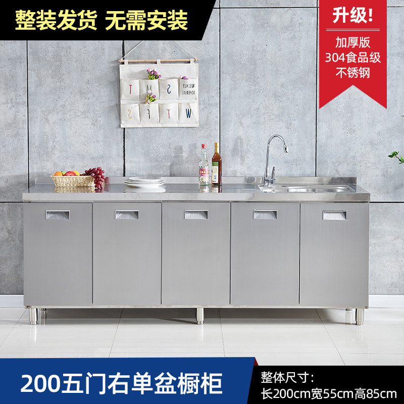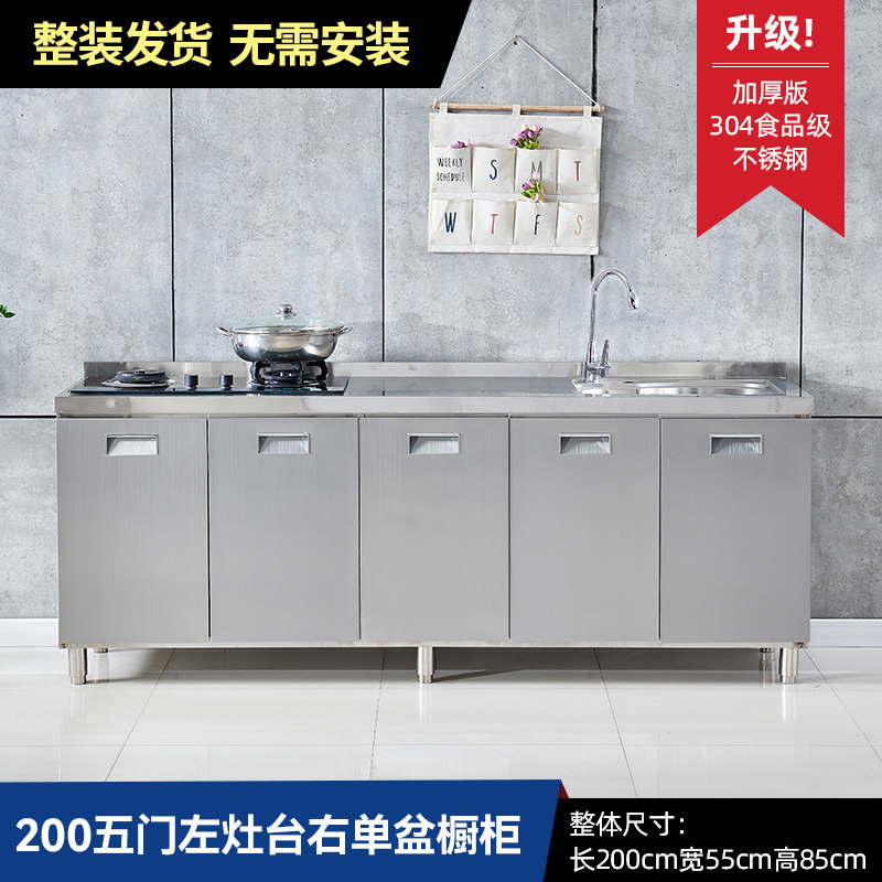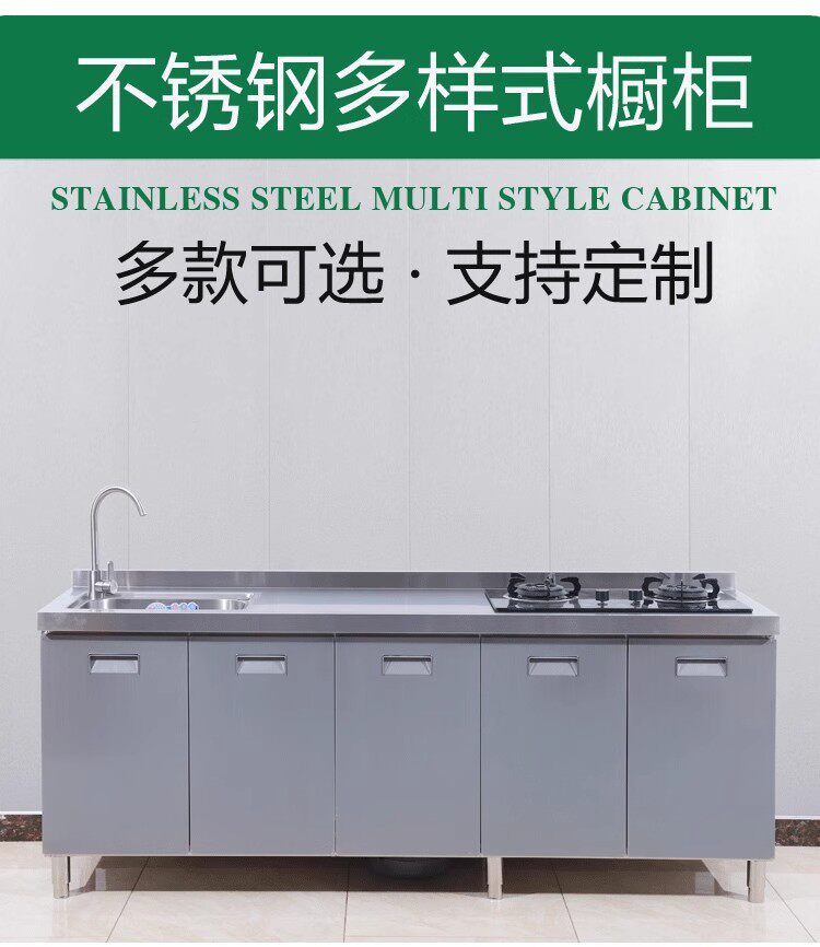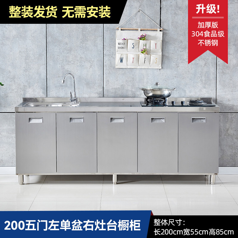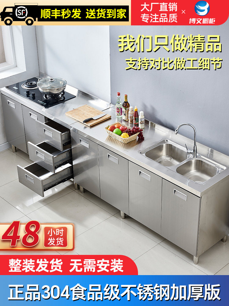 304整体全不锈白钢厨房橱柜简易灶台一体储物收纳碗柜家用小户型