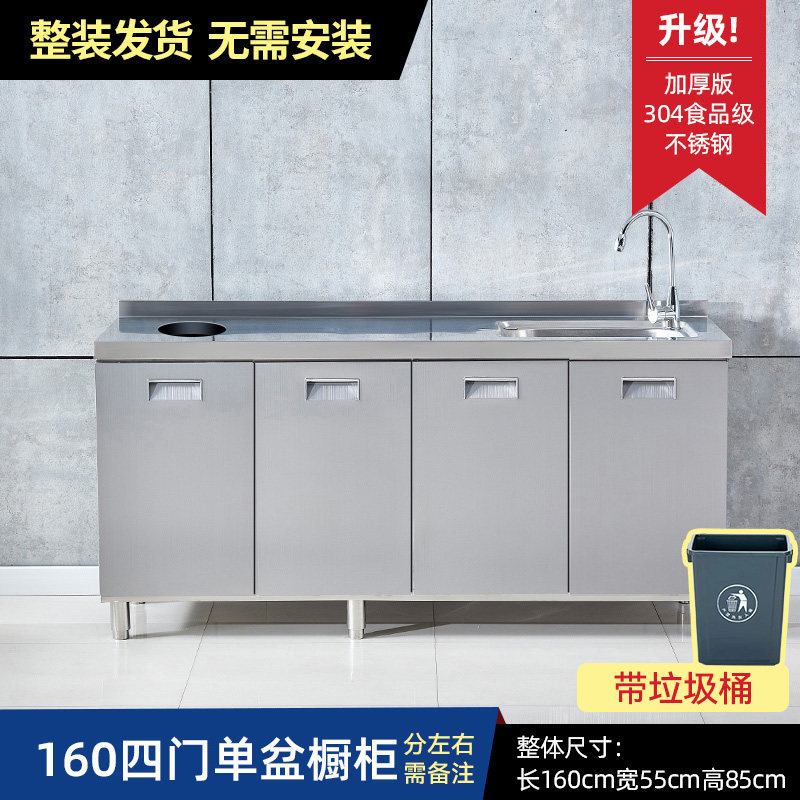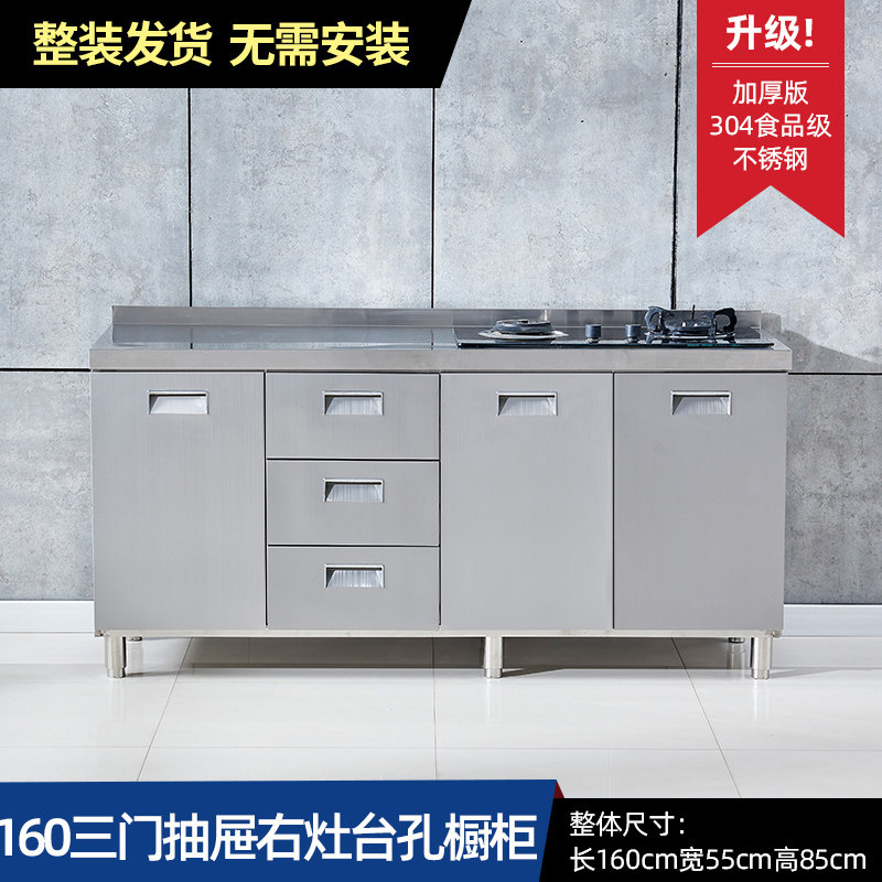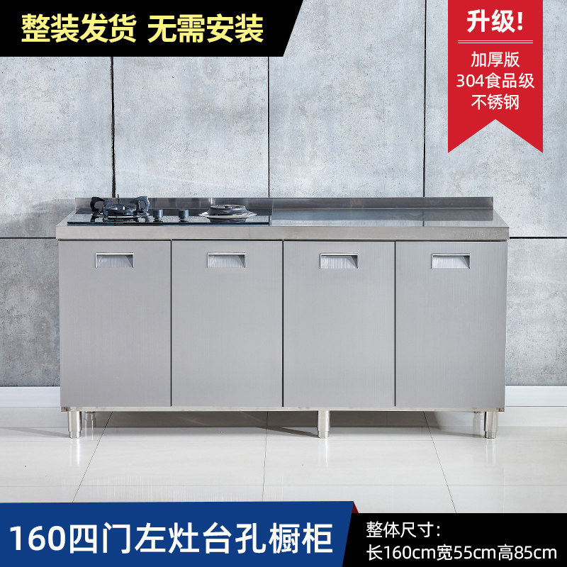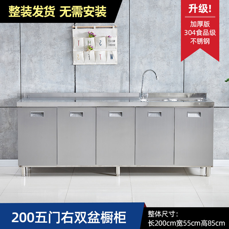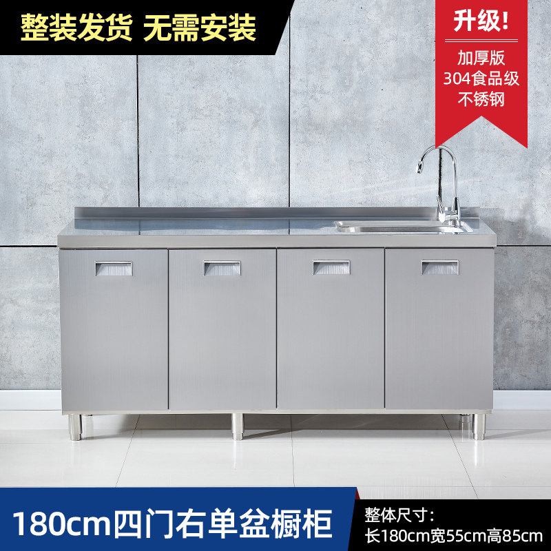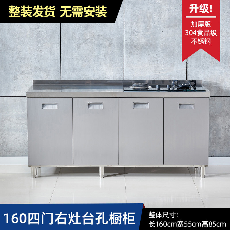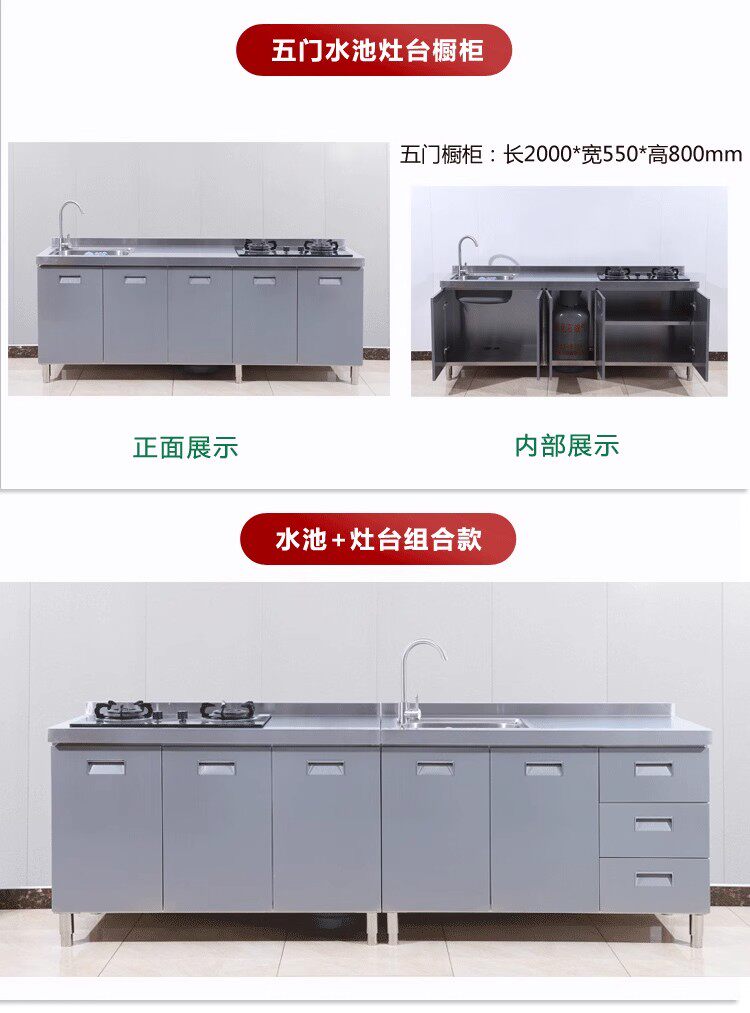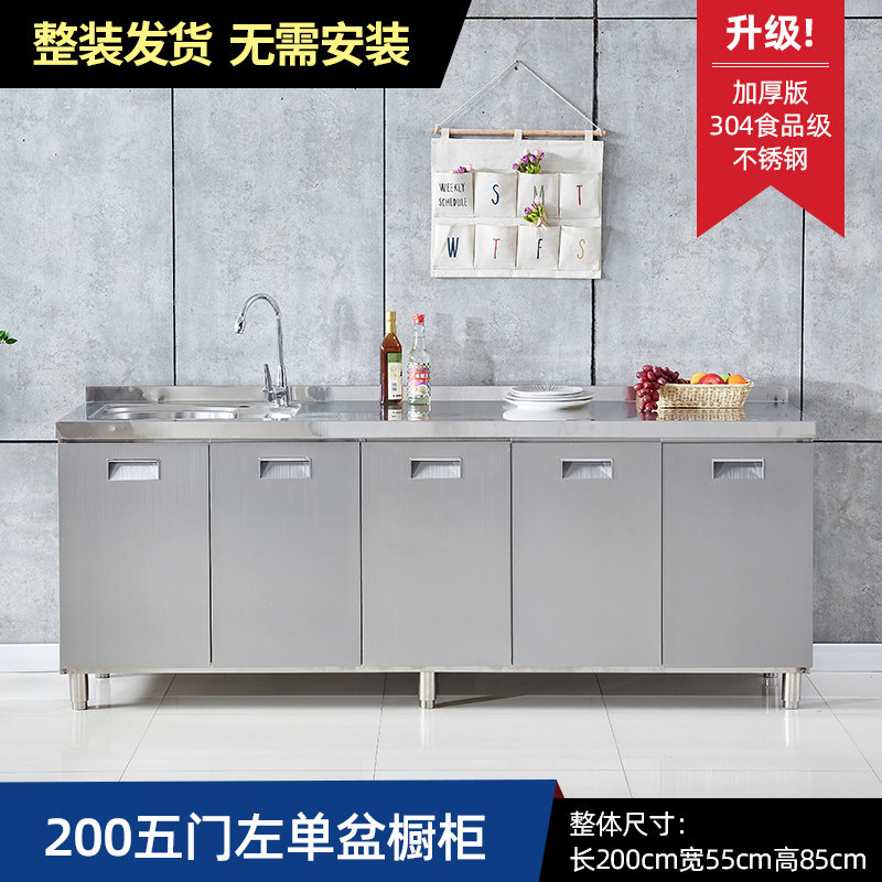 304整体全不锈白钢厨房橱柜简易灶台一体储物收纳碗柜家用小户型