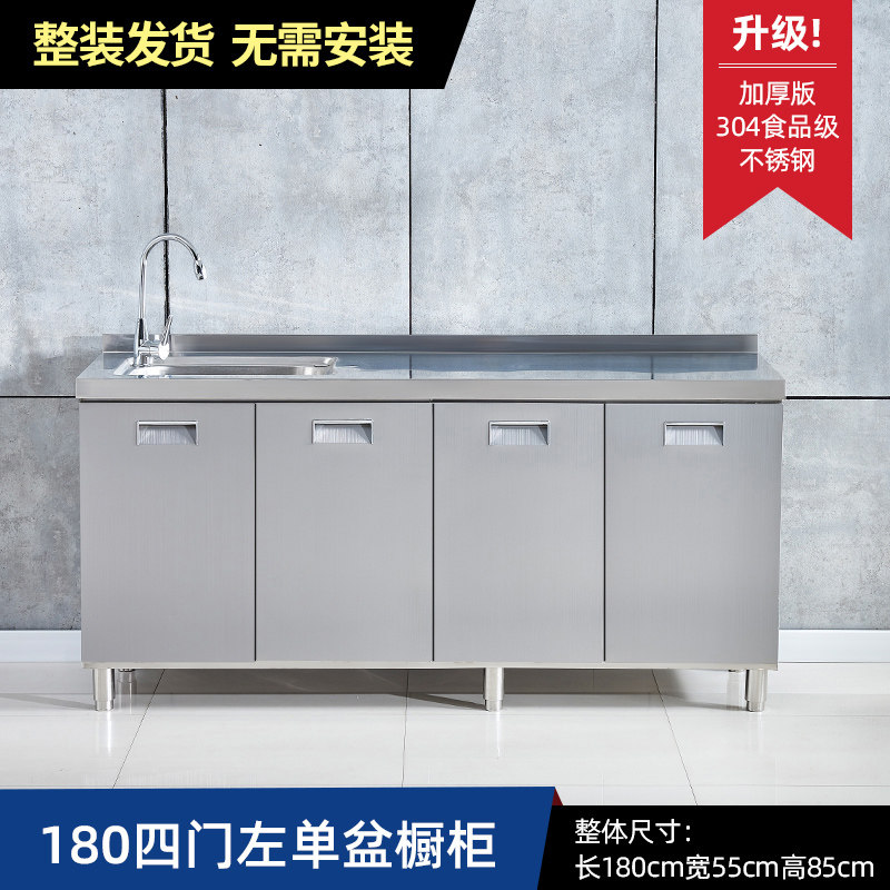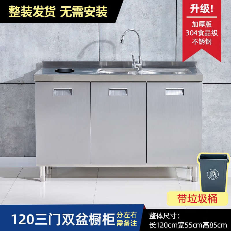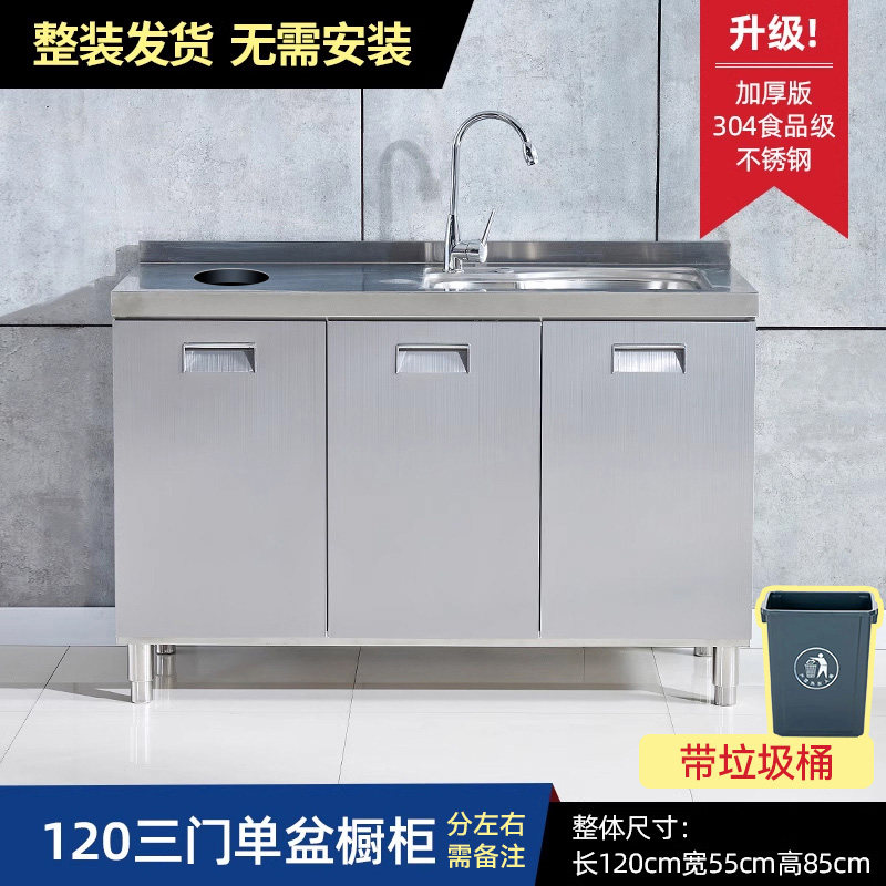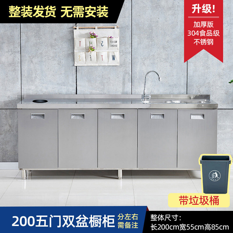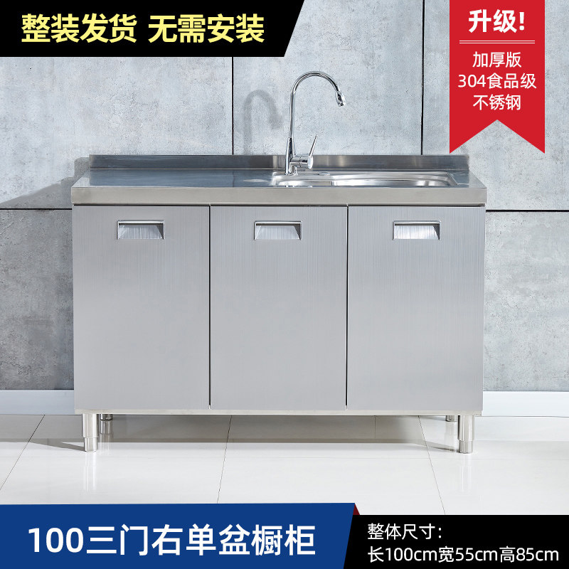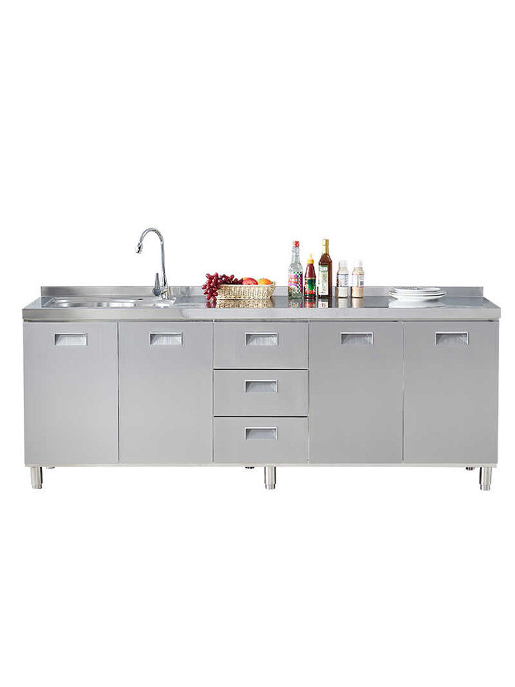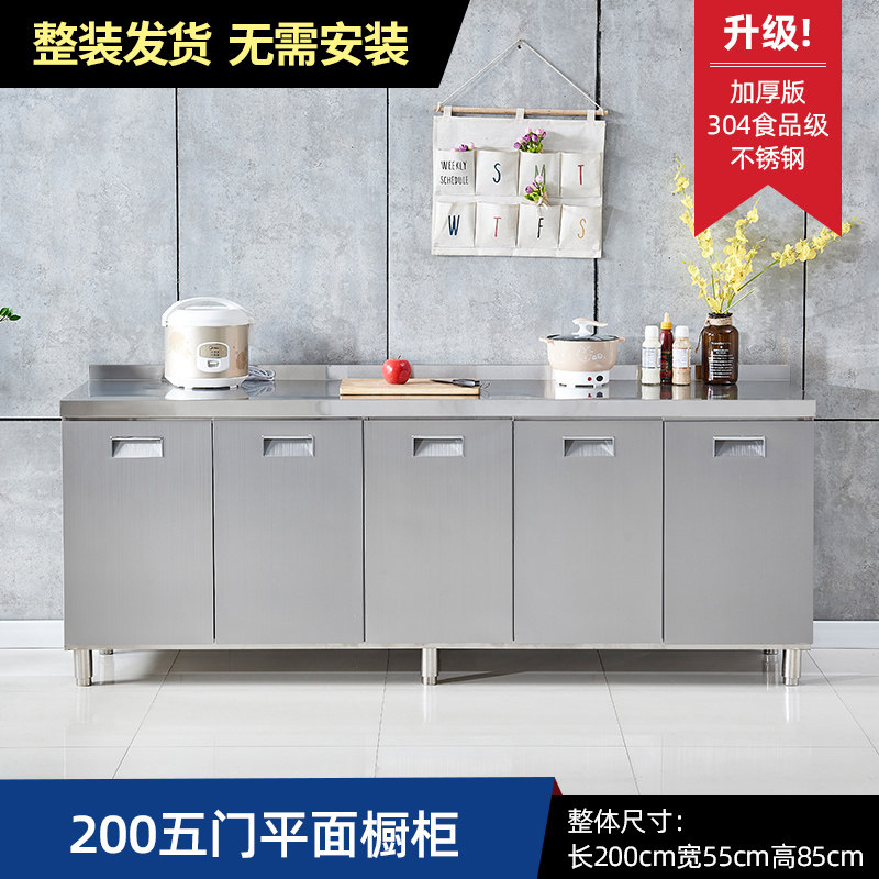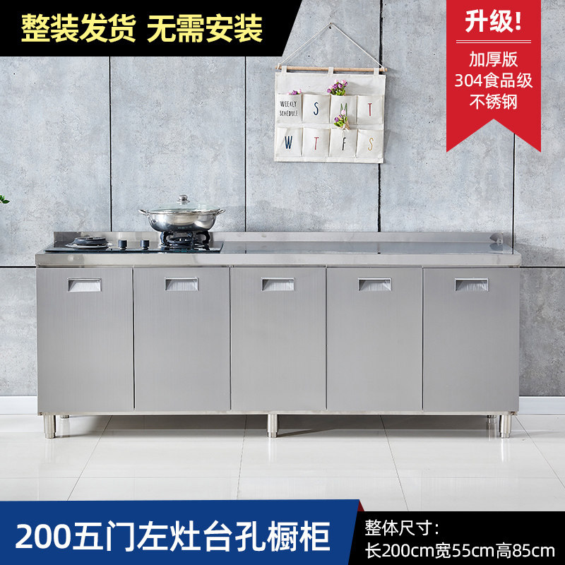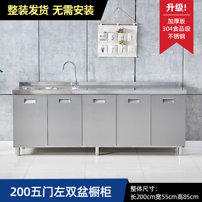 304整体全不锈白钢厨房橱柜简易灶台一体储物收纳碗柜家用小户型
