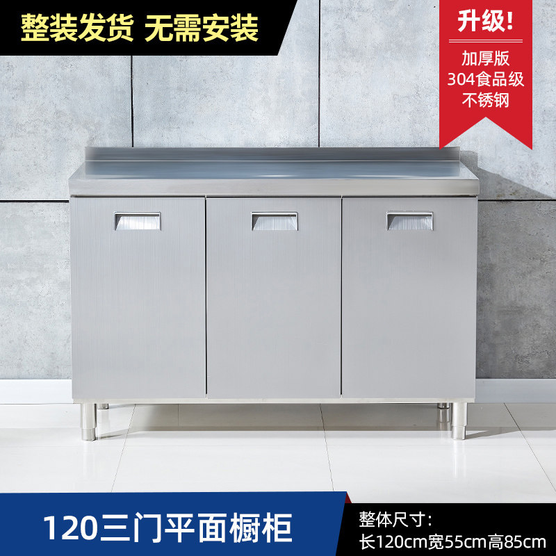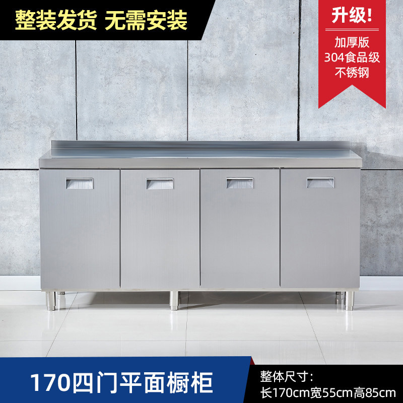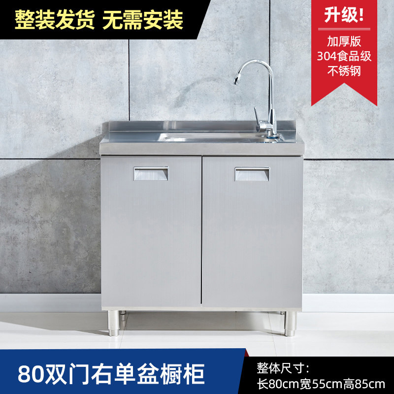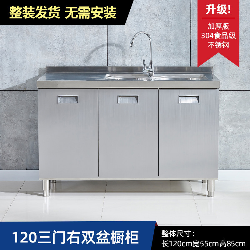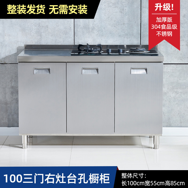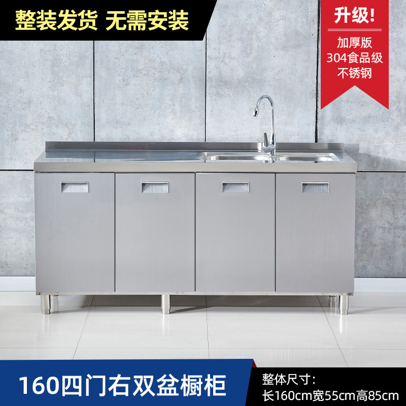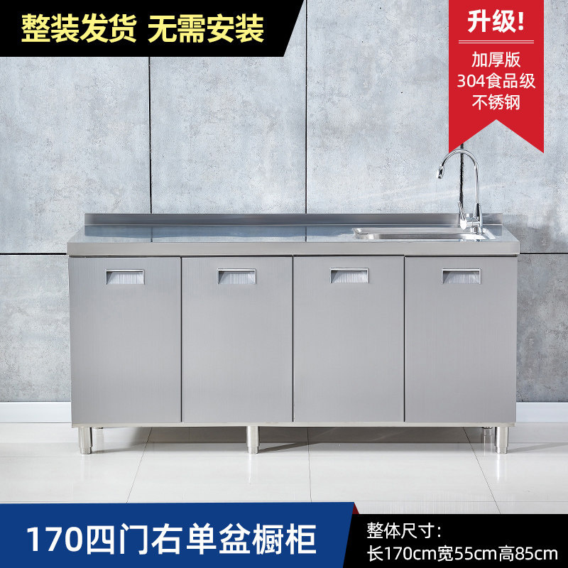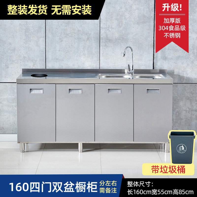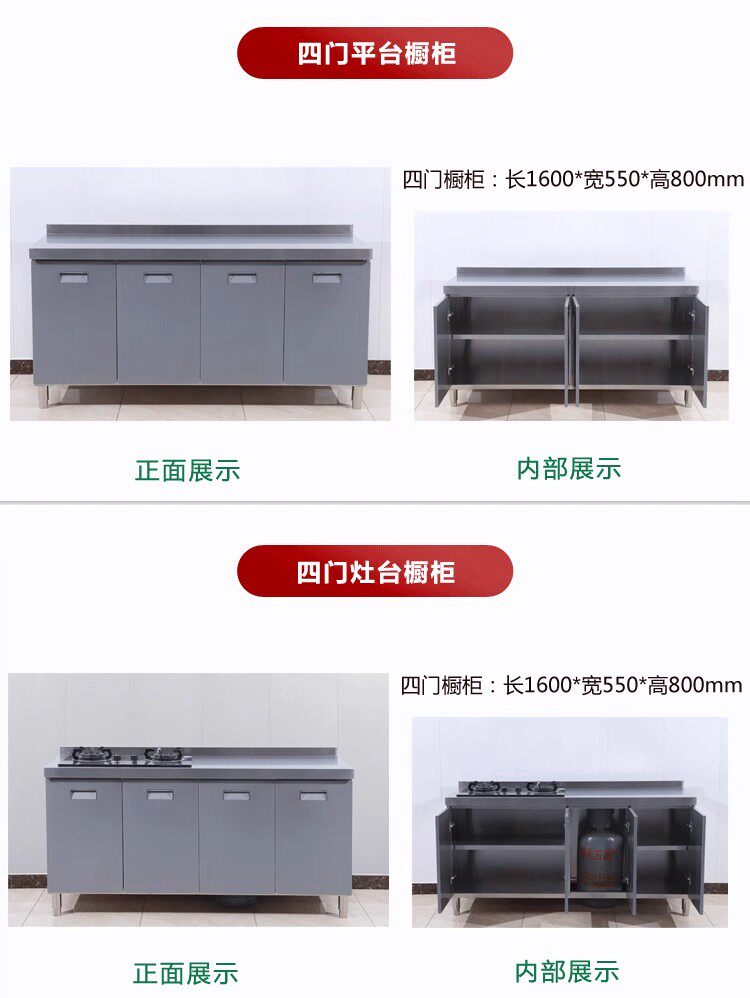 304整体全不锈白钢厨房橱柜简易灶台一体储物收纳碗柜家用小户型