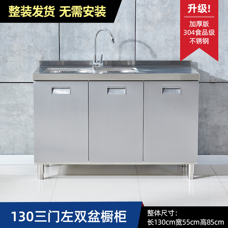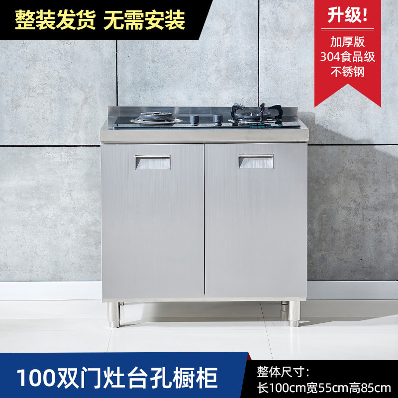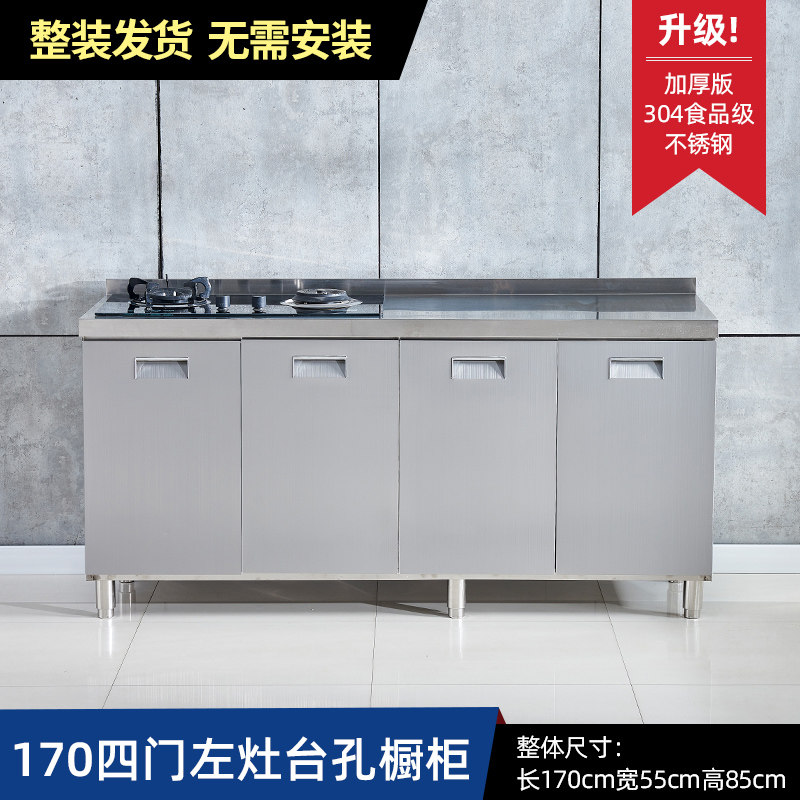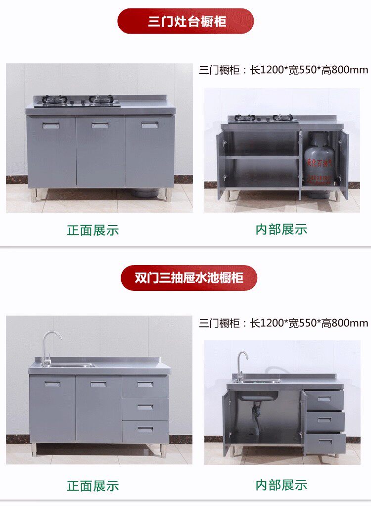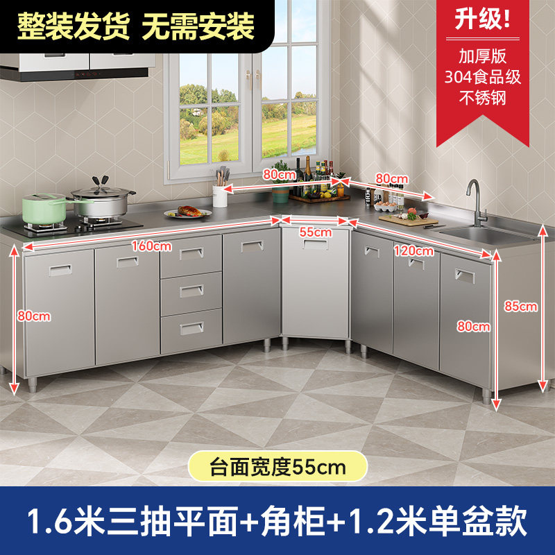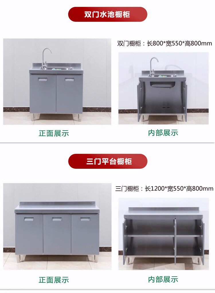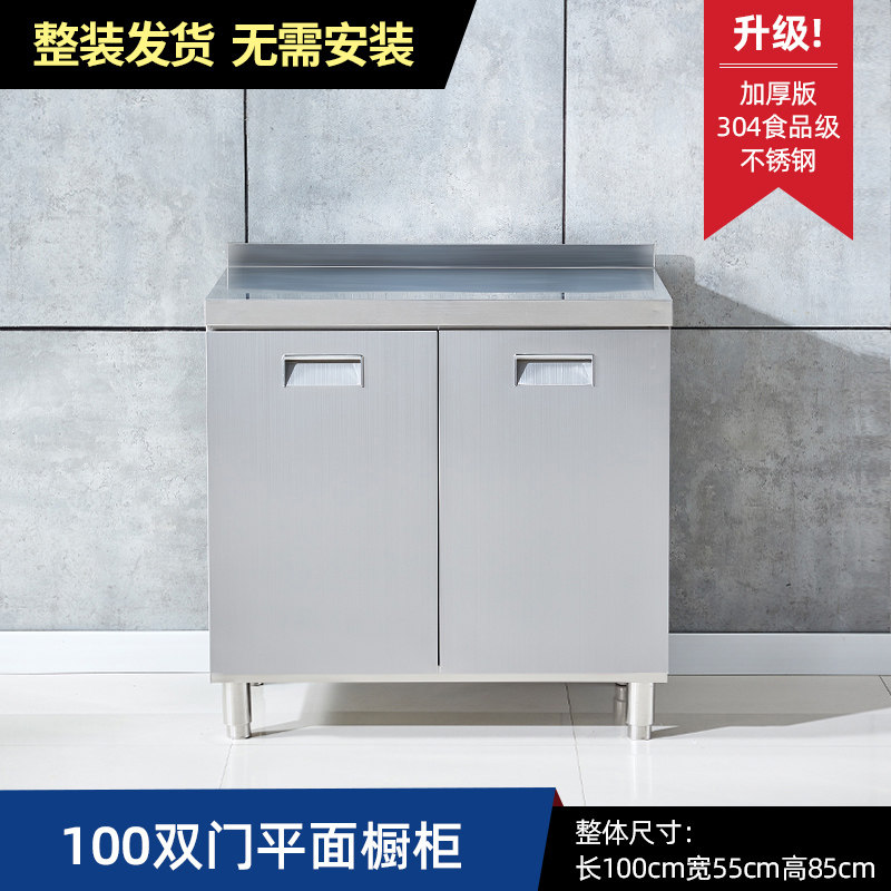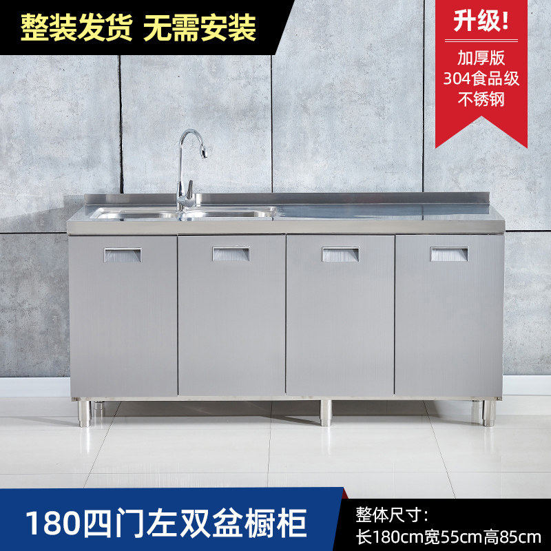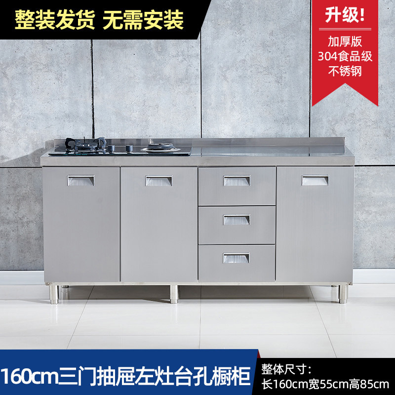 304整体全不锈白钢厨房橱柜简易灶台一体储物收纳碗柜家用小户型