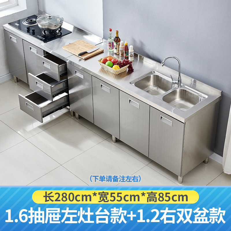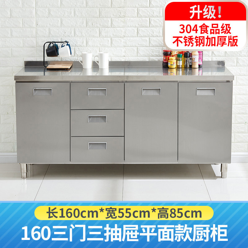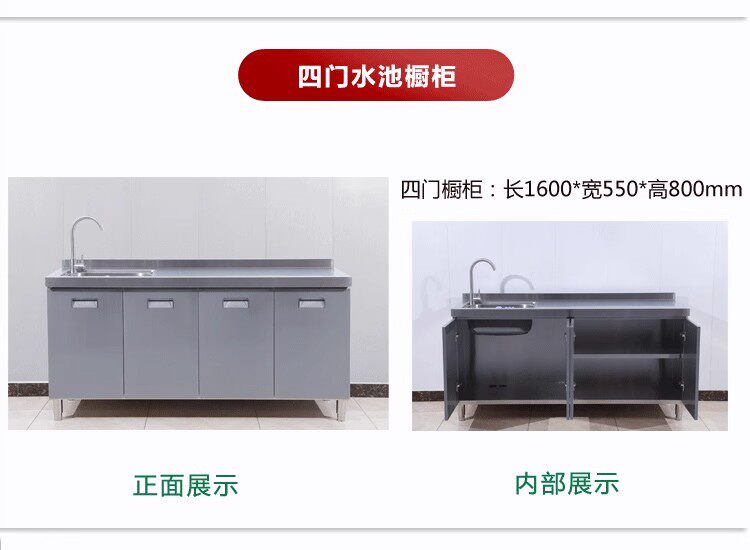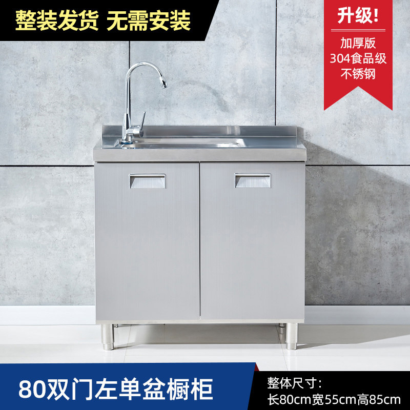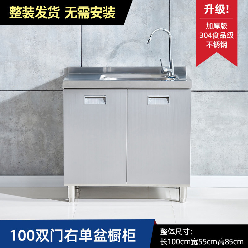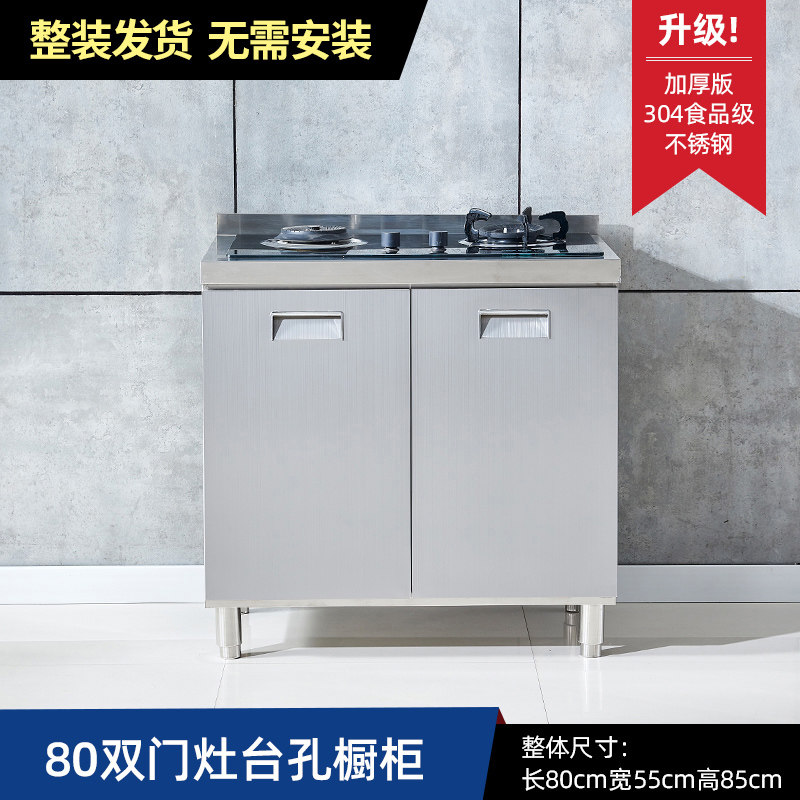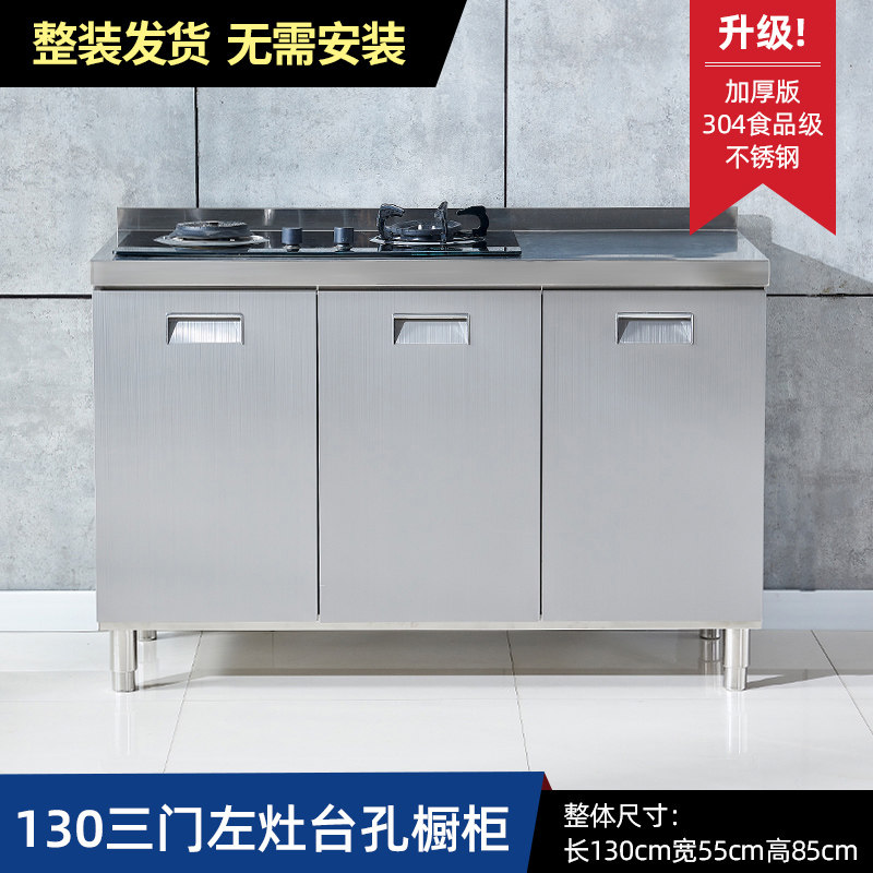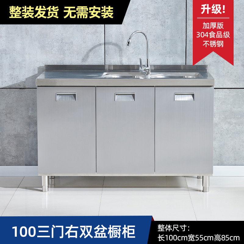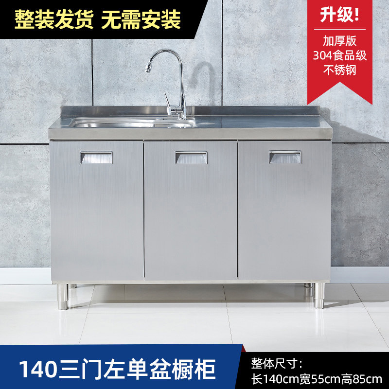 304整体全不锈白钢厨房橱柜简易灶台一体储物收纳碗柜家用小户型