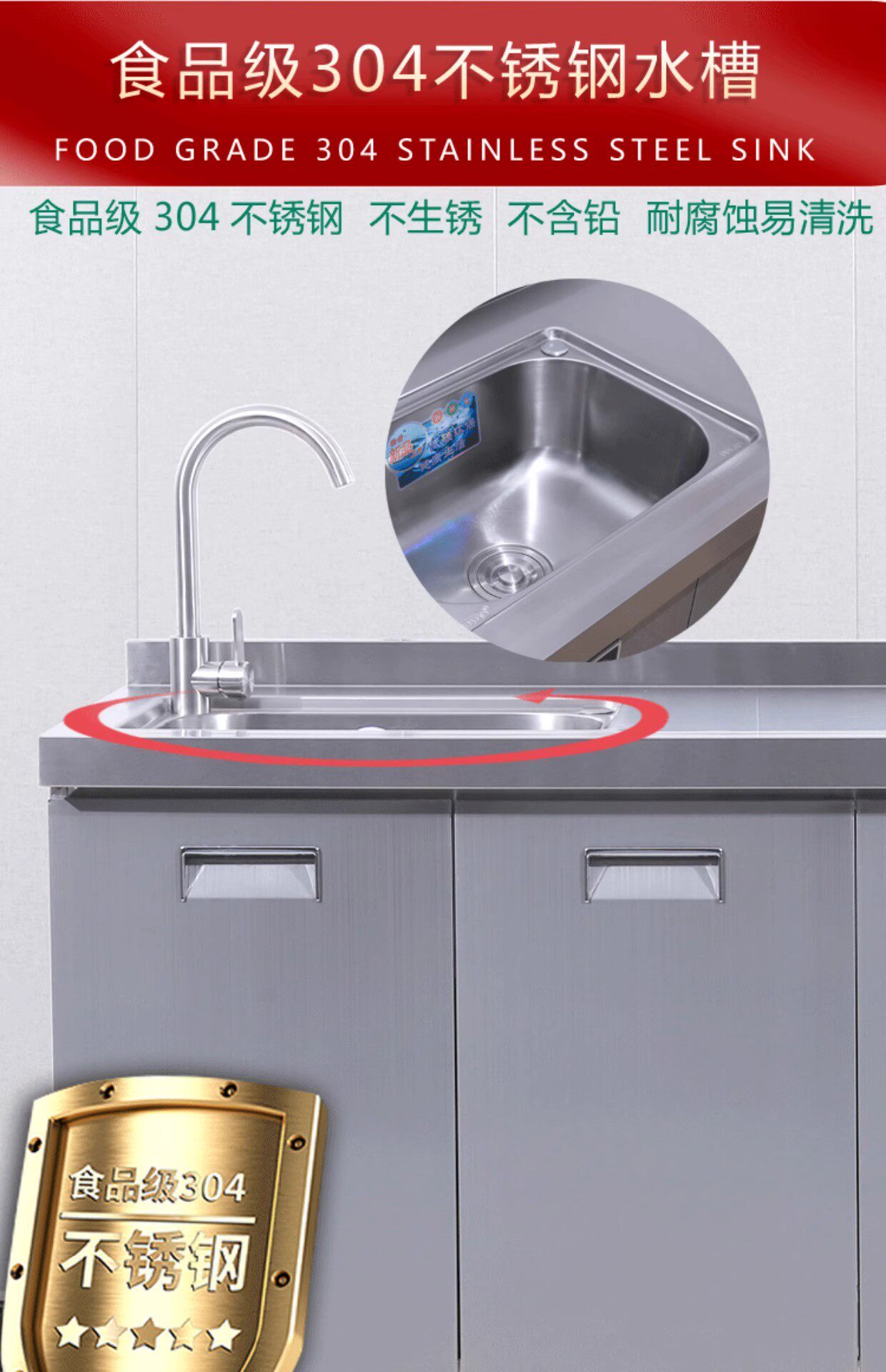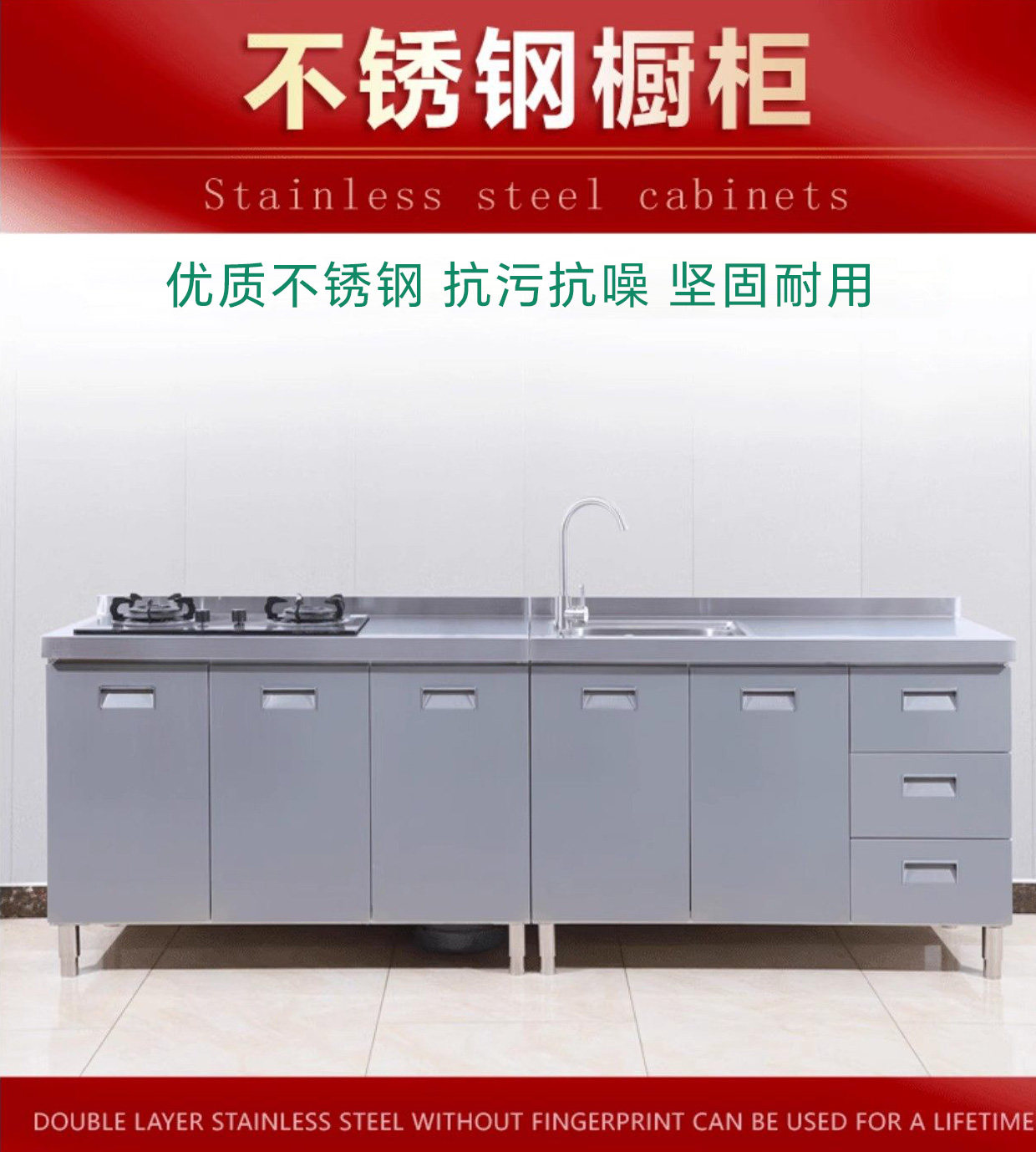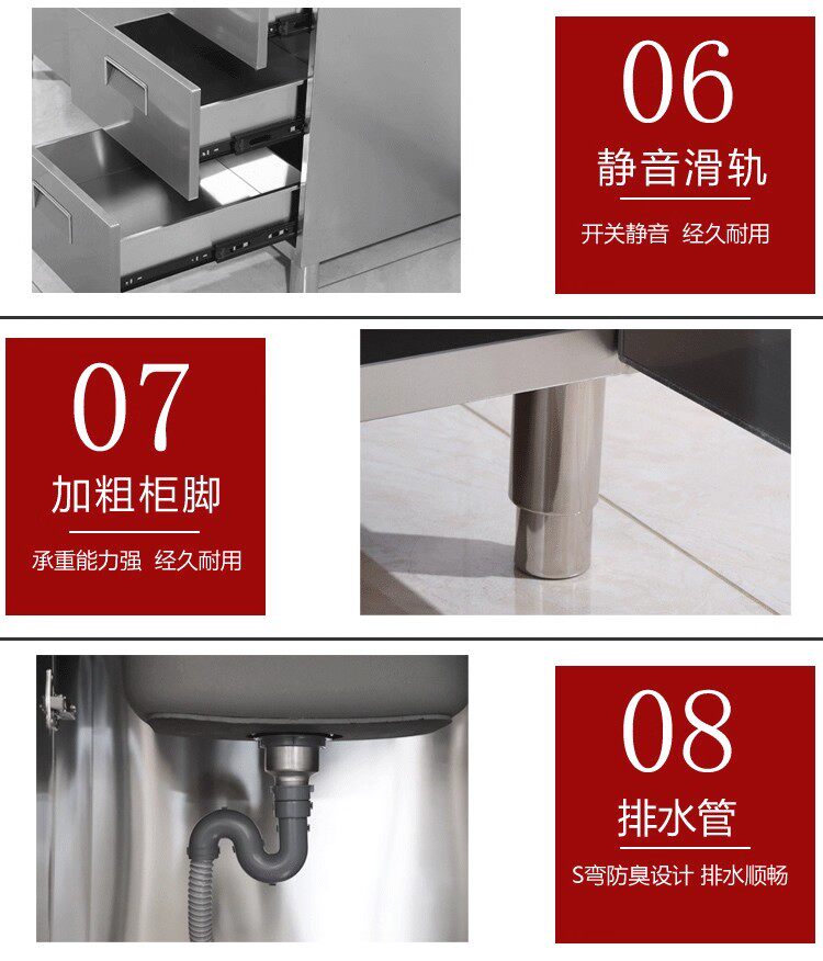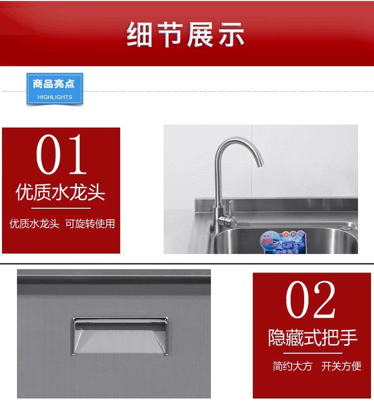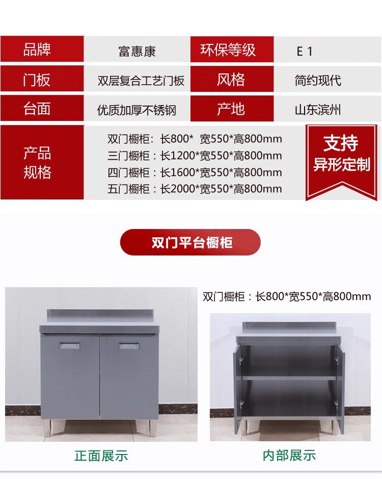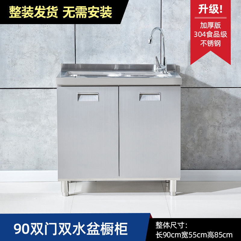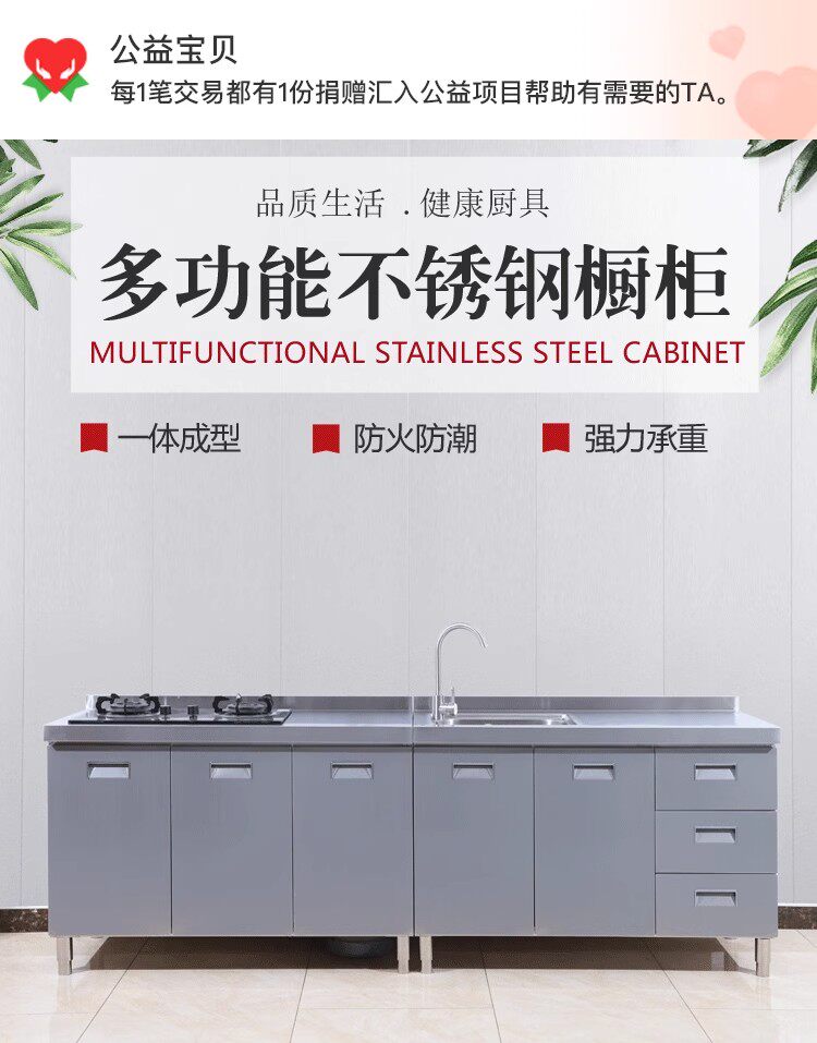 304整体全不锈白钢厨房橱柜简易灶台一体储物收纳碗柜家用小户型