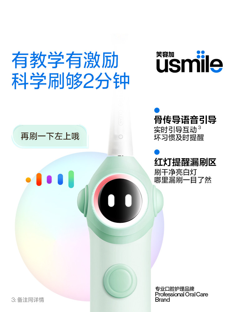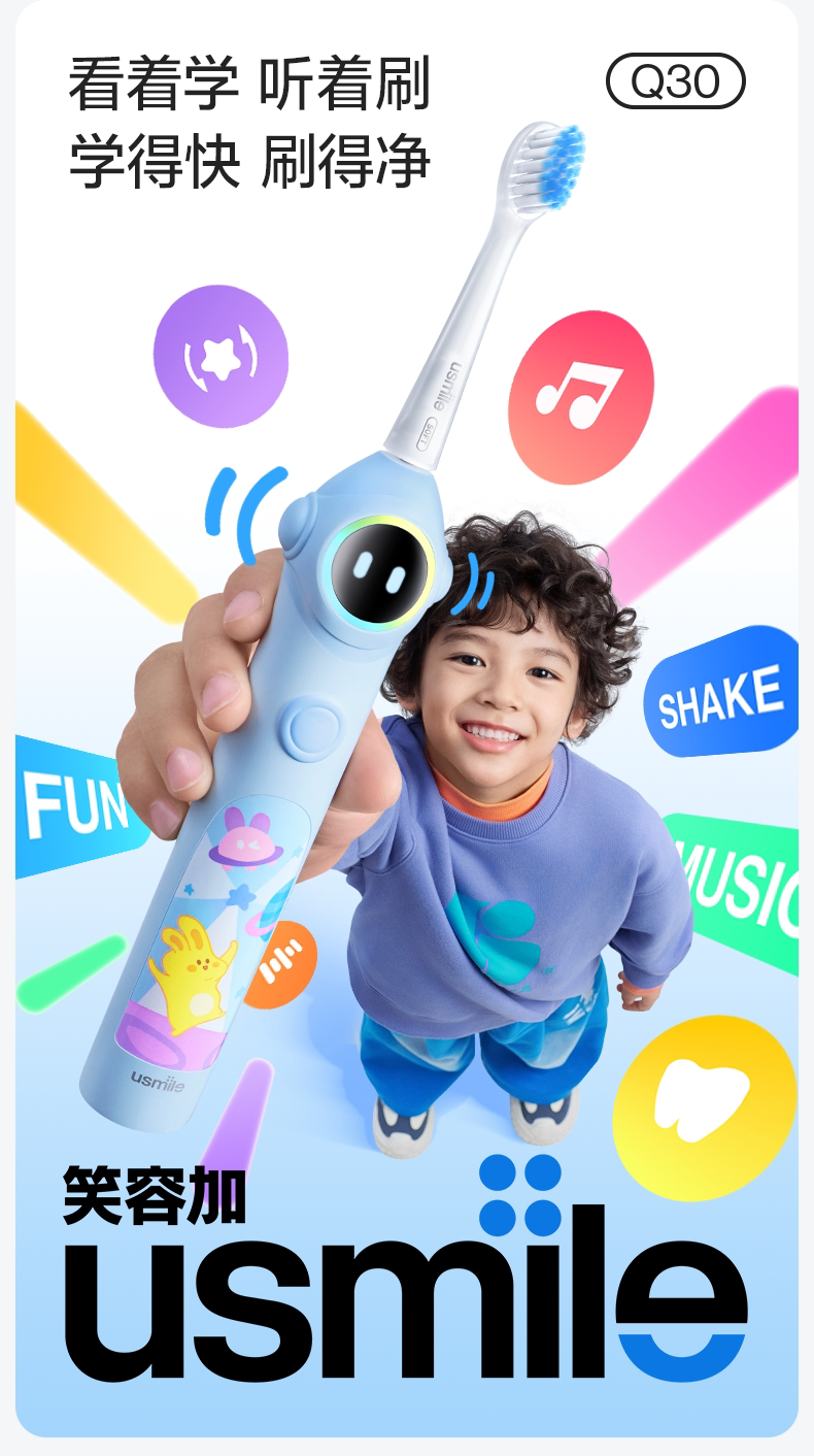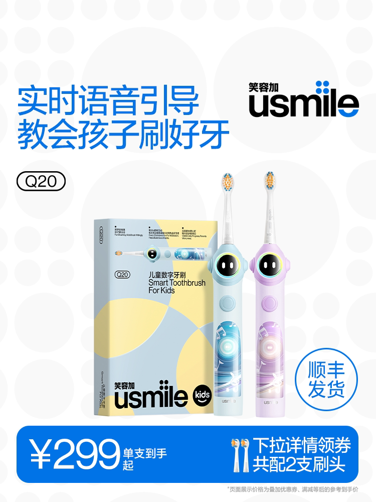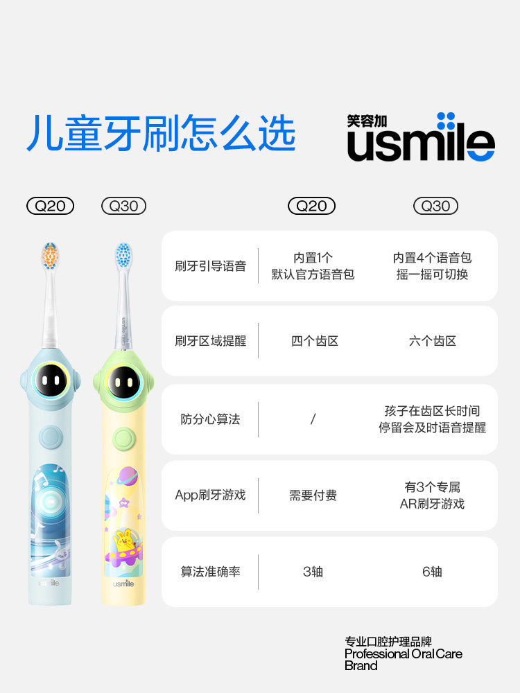 笑容加usmile儿童专用电动牙刷3至12岁宝宝礼物智能语音提醒刷Q20