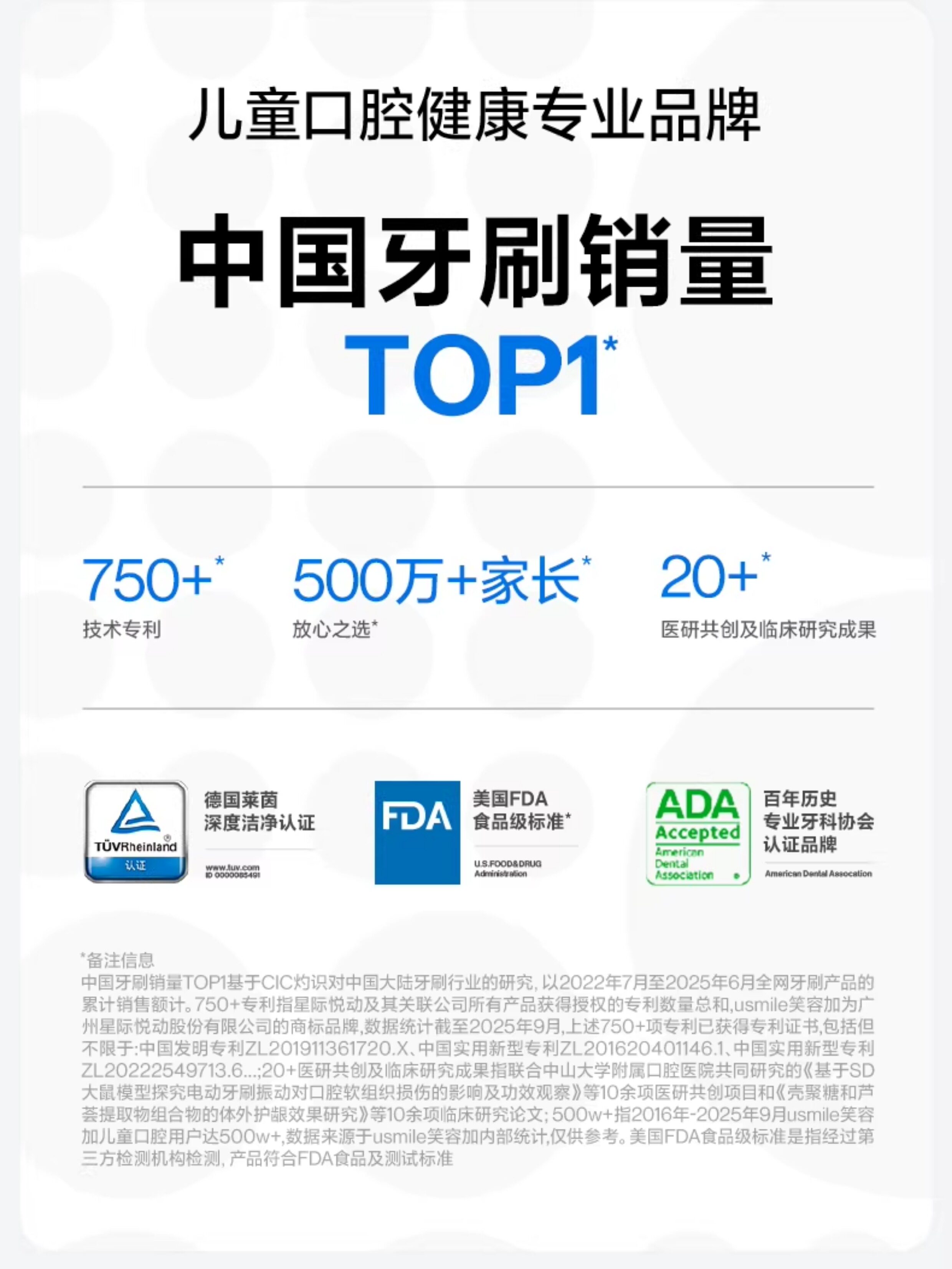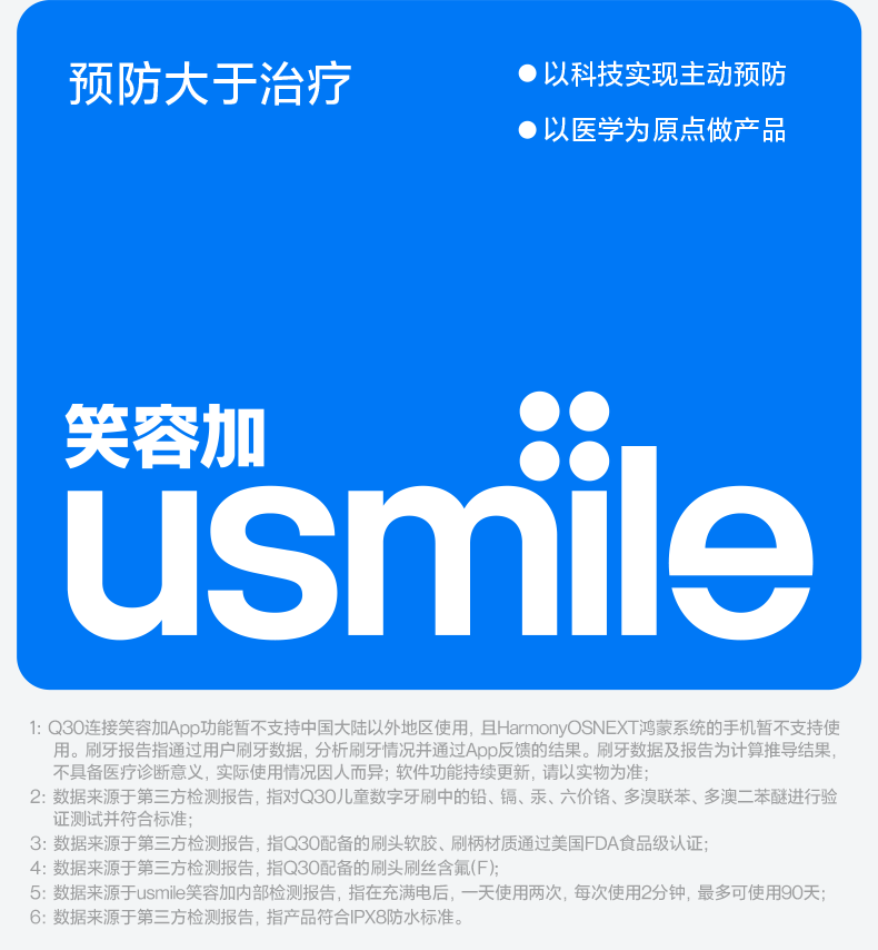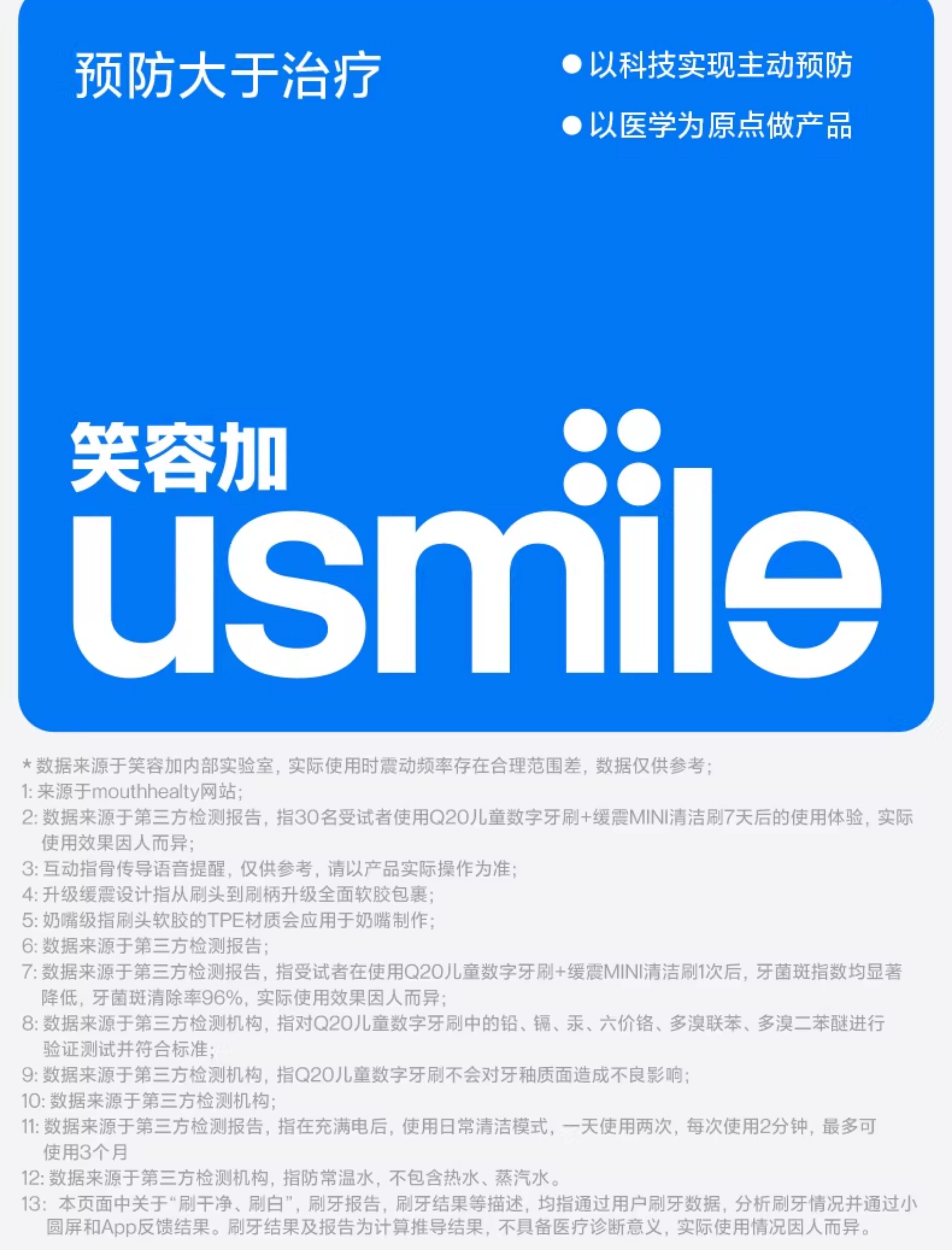 笑容加usmile儿童专用电动牙刷3至12岁宝宝礼物智能语音提醒刷Q20
