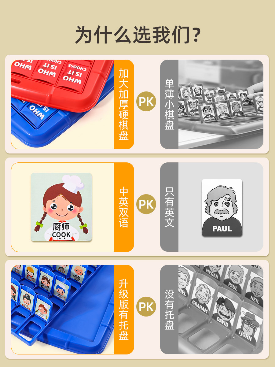 猜猜我是谁卡牌游戏儿童益智女男孩玩具双人桌游棋类亲子互动卡片