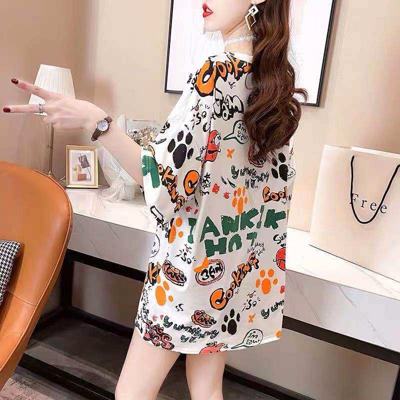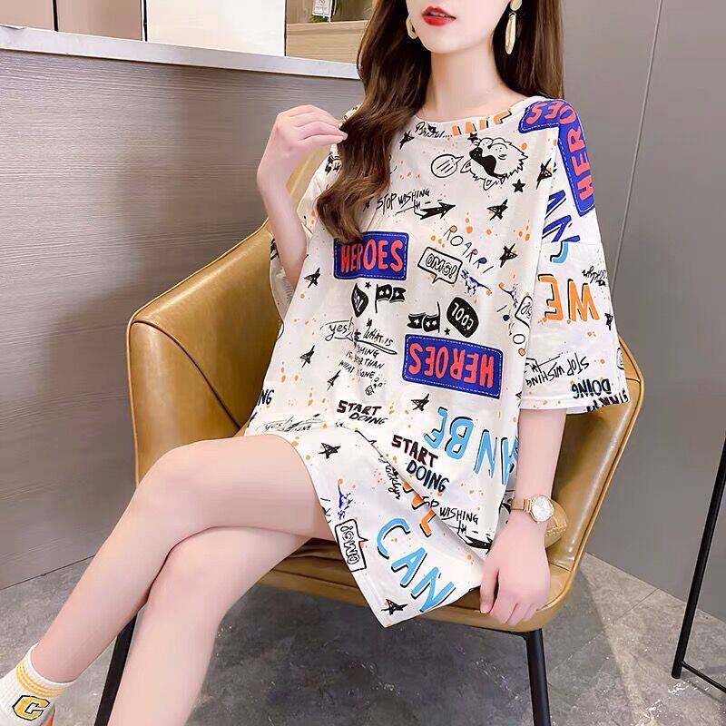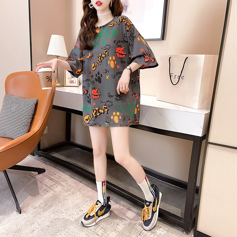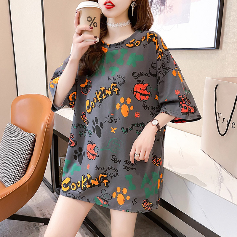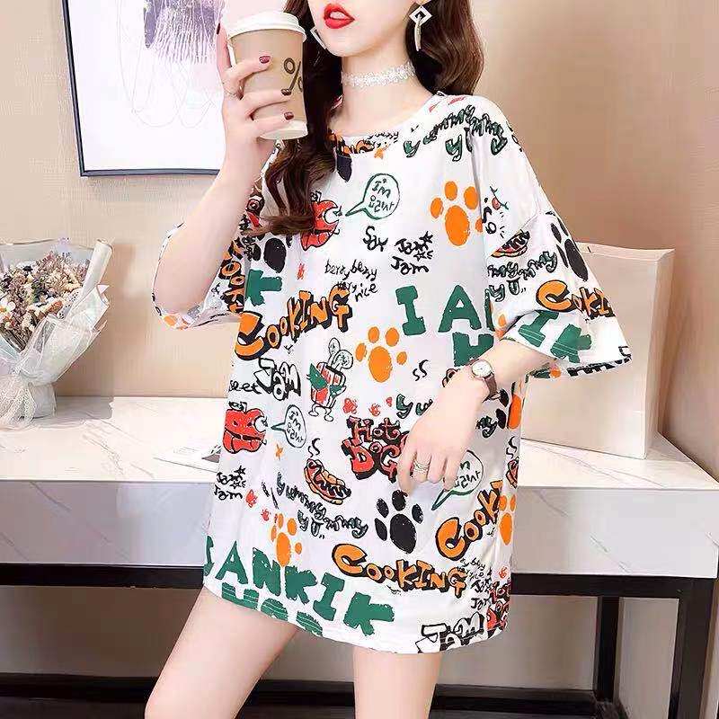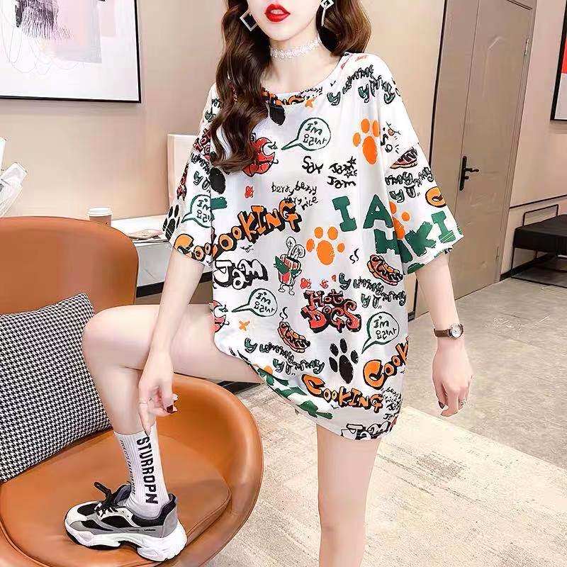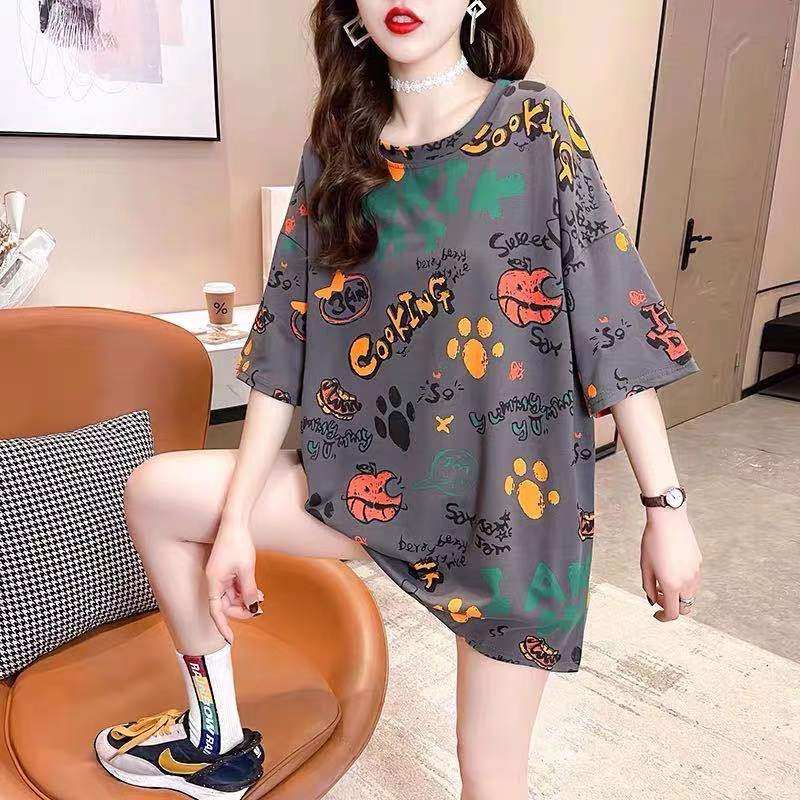 HomeProducts韩版大码欧货潮上衣服半袖体恤T恤女夏装2026新款短袖宽松中长款