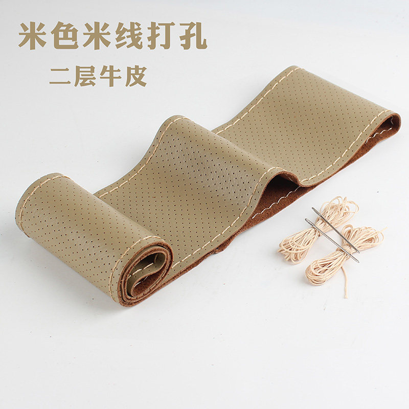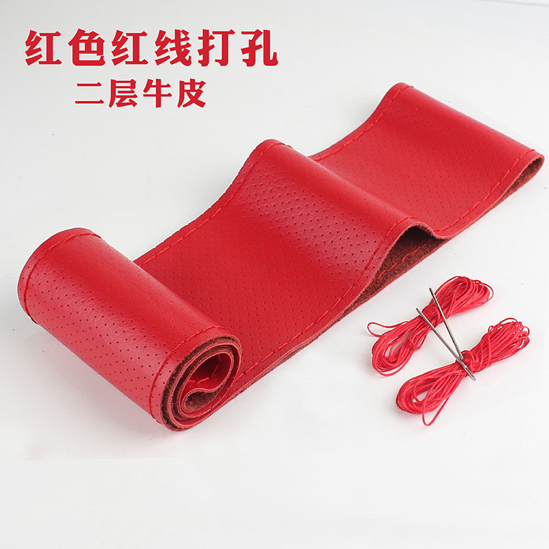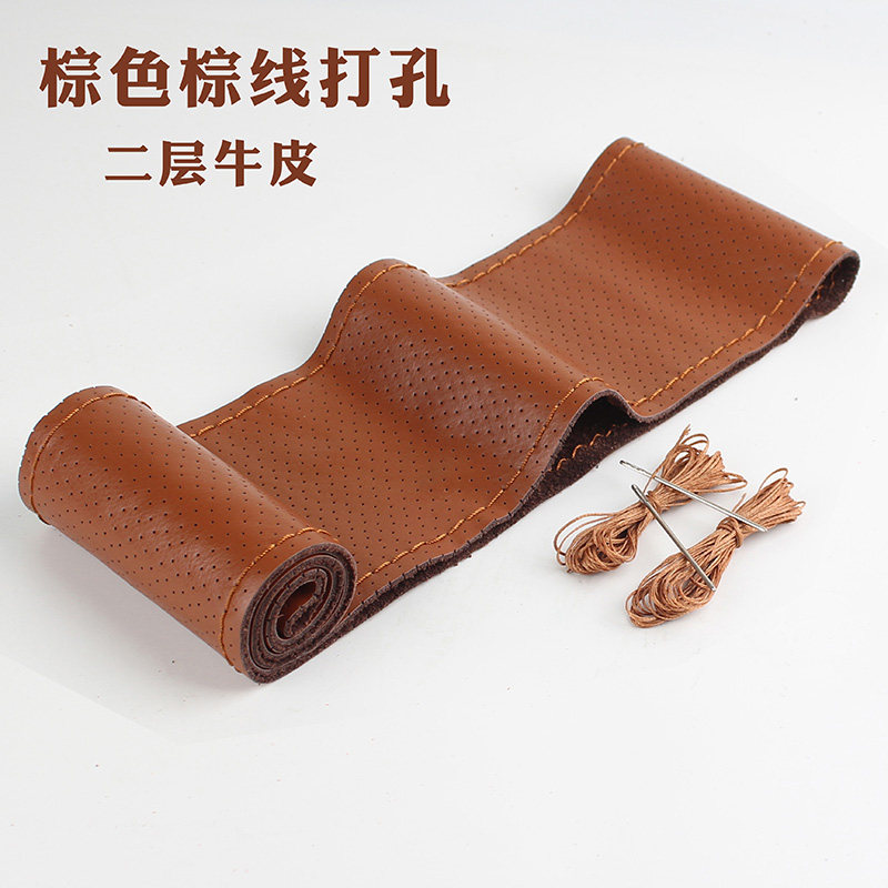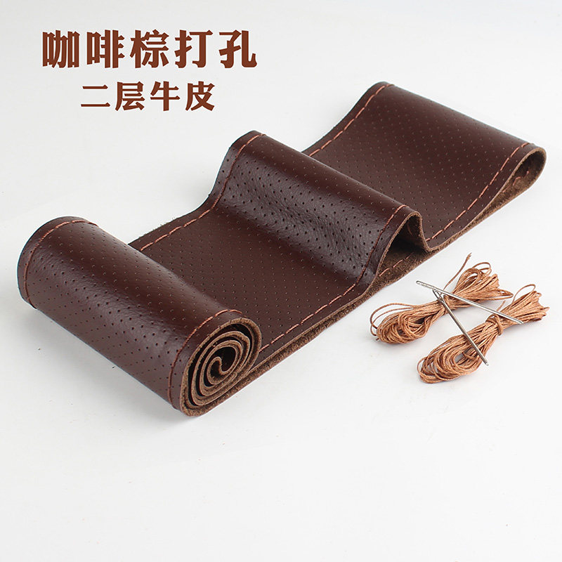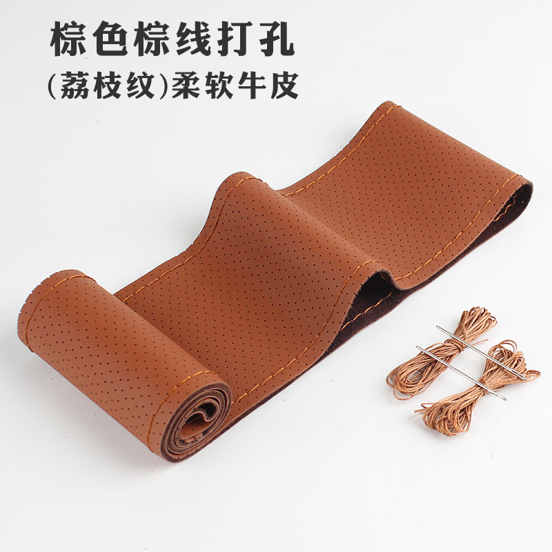 汽车方向盘套真皮手缝男女四季通用大众牛皮手工皮套防滑缝制把套