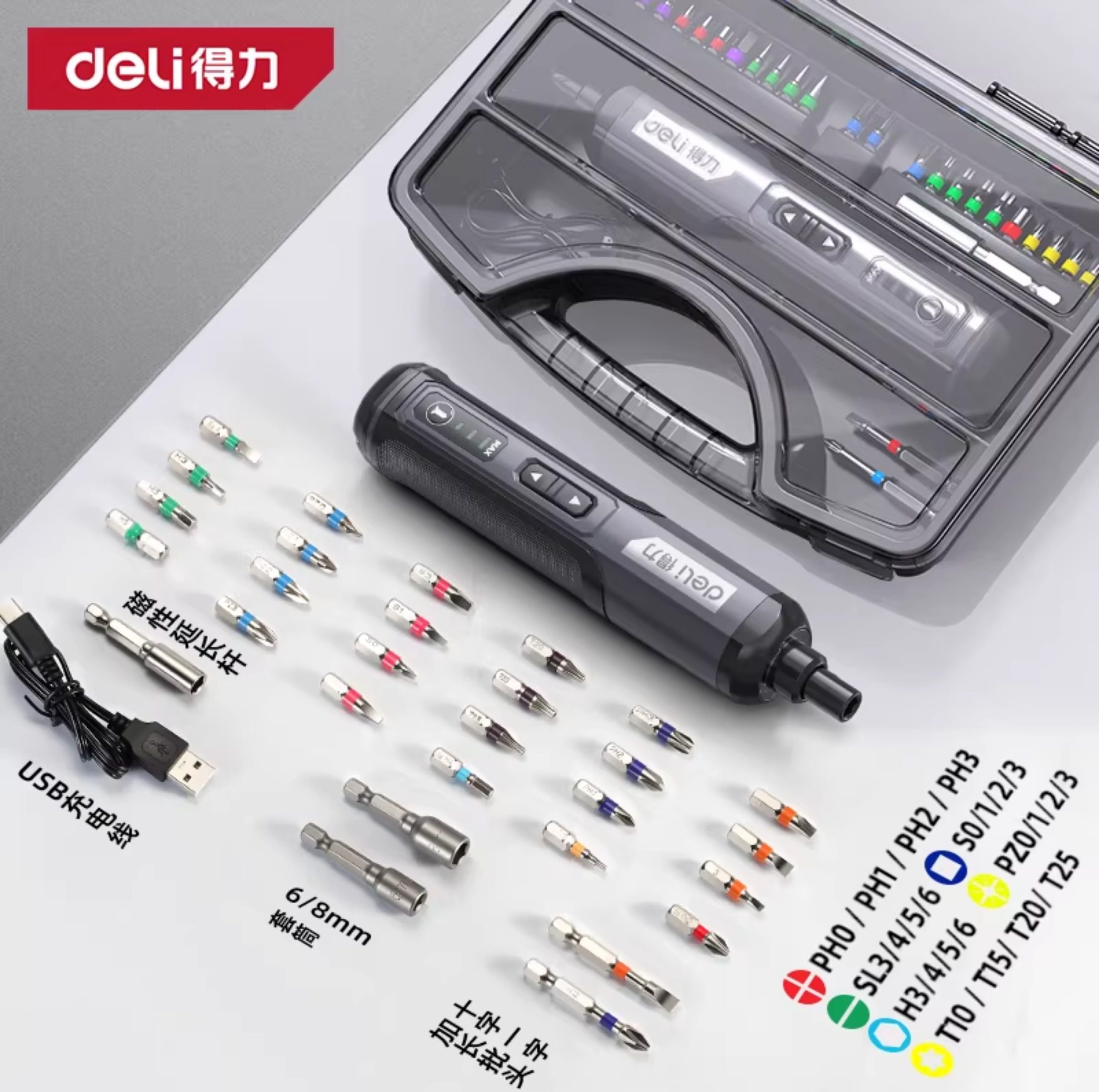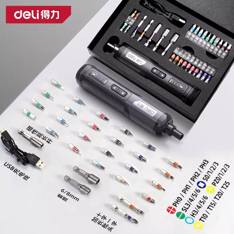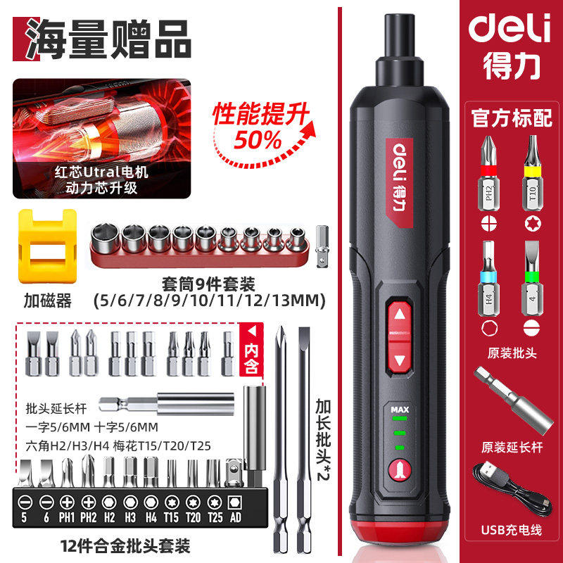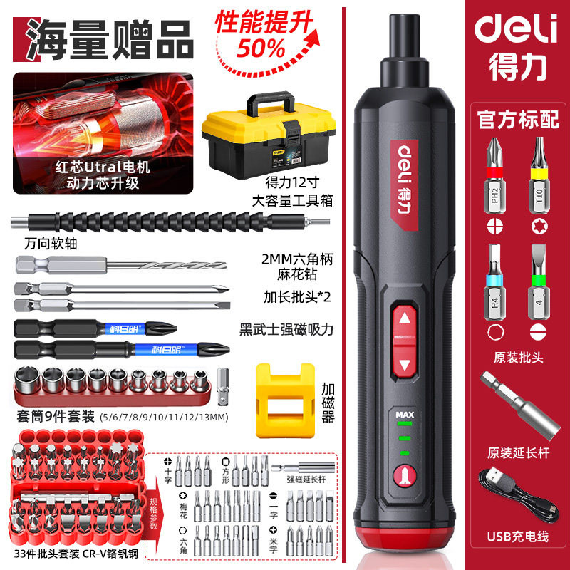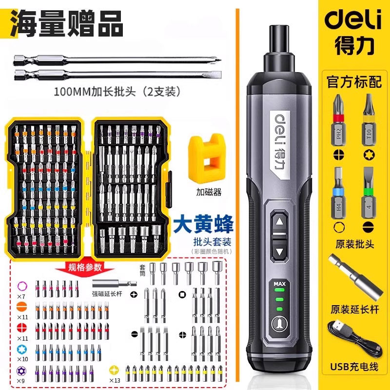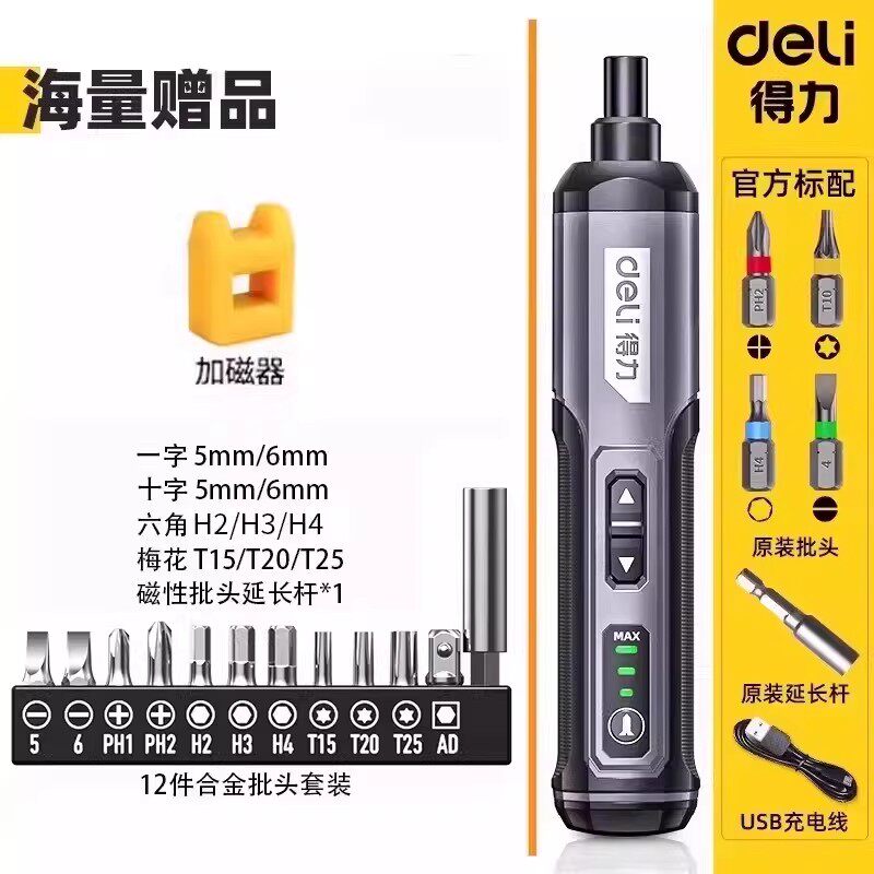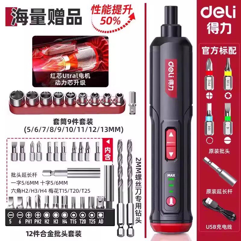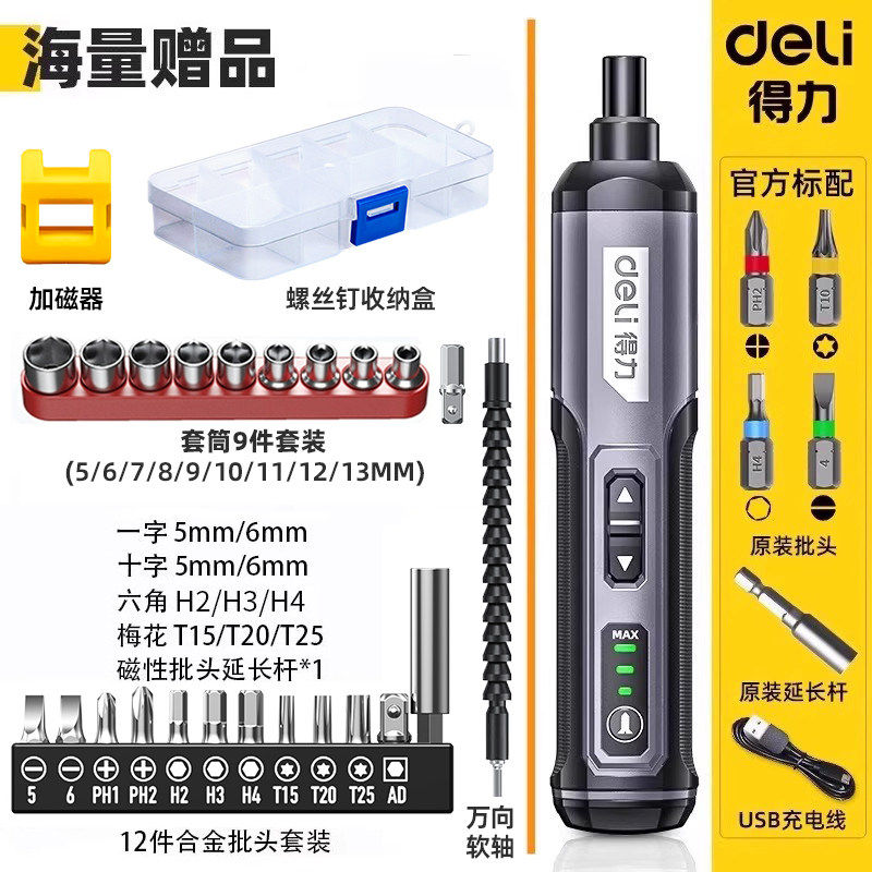 得力电动螺丝刀充电式家用自动多功能电批锂电钻起子工具套装小型