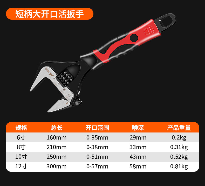 光柄活扳手6寸(小号)