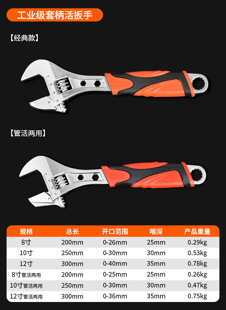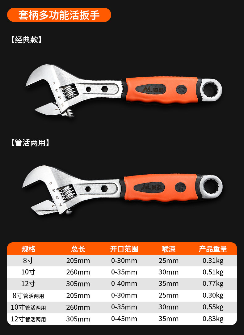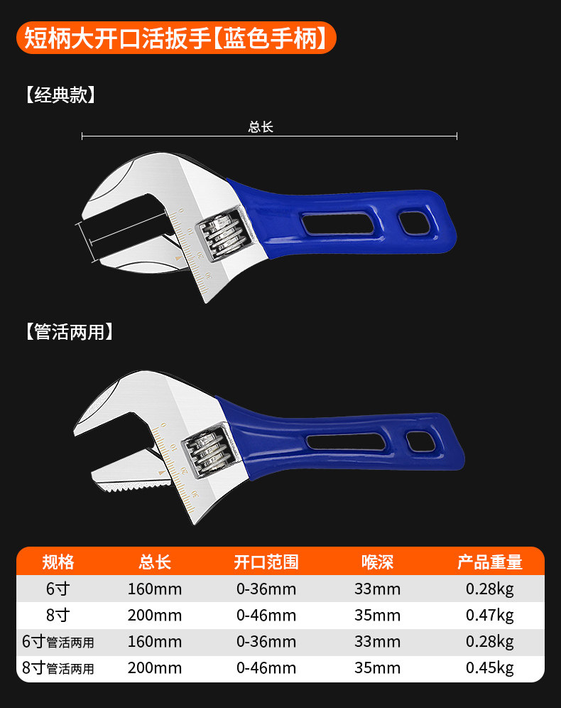 活动扳手工具大全活扳手万用活口板手多功能开口钣手套装扳子正小