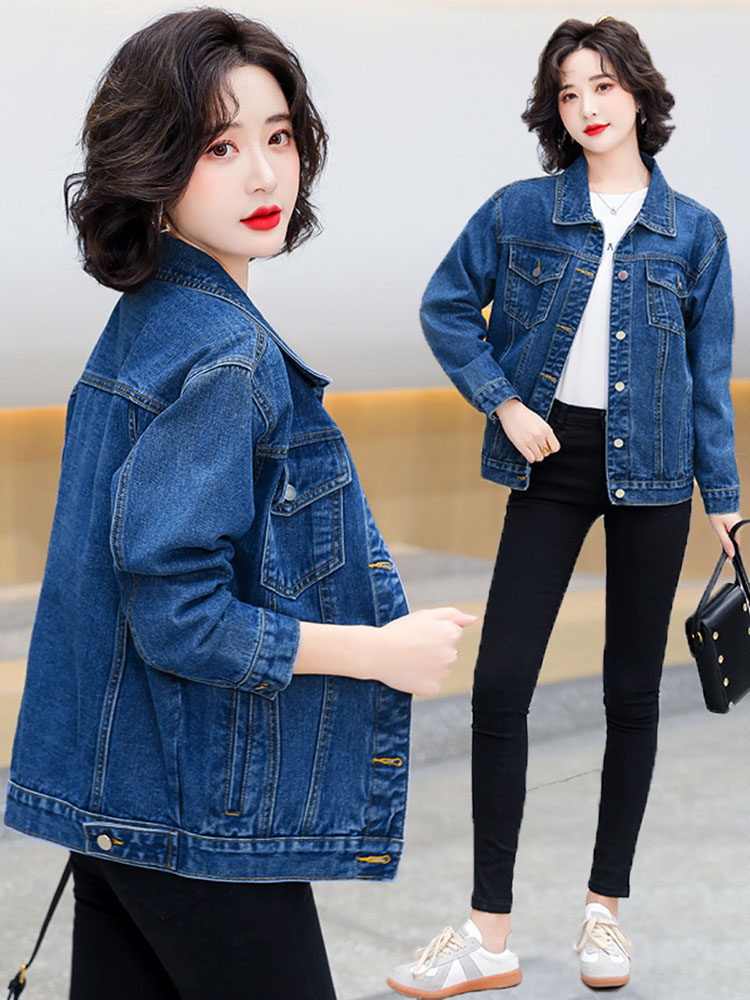 2026春秋新款加肥加大码宽松港味牛仔外套女休闲牛仔衣上衣牛仔褂