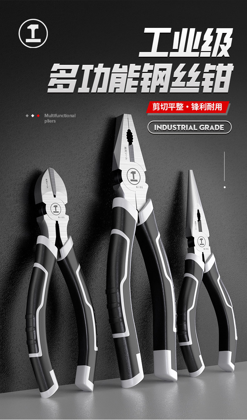 绿林老虎钳尖嘴钳钢丝钳电工专用斜口多功能万用五金工具大全钳子