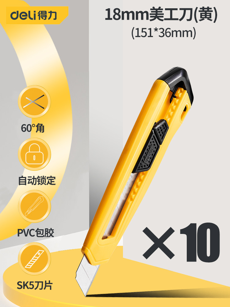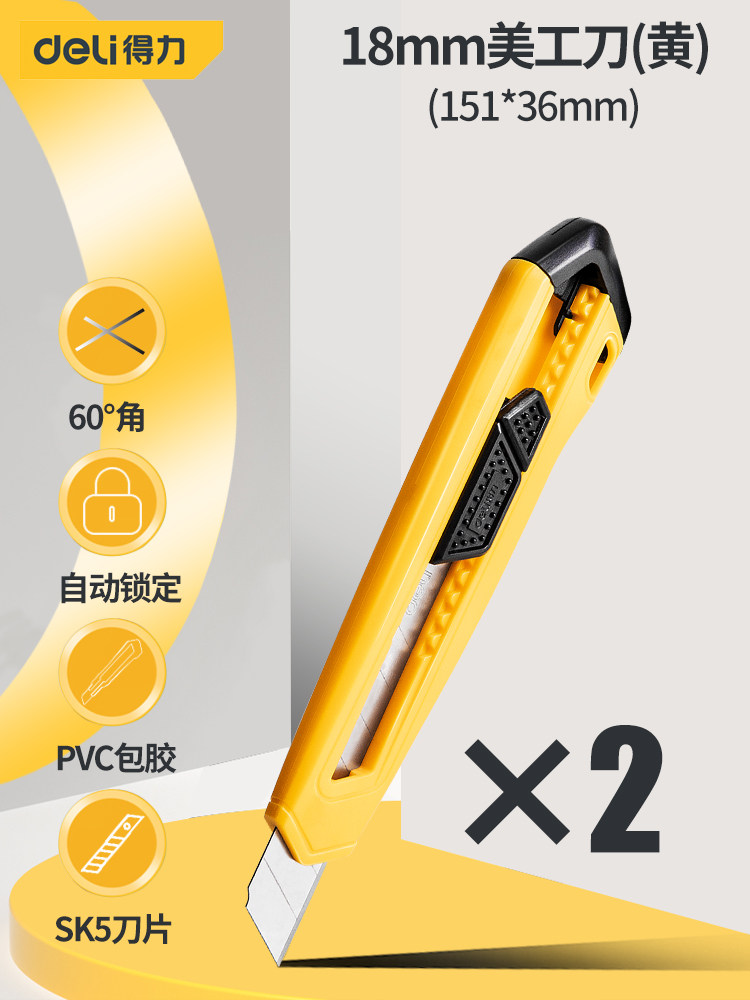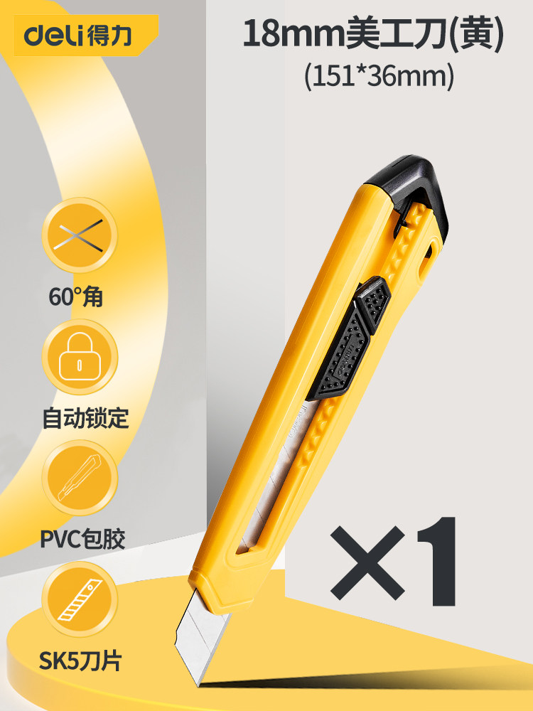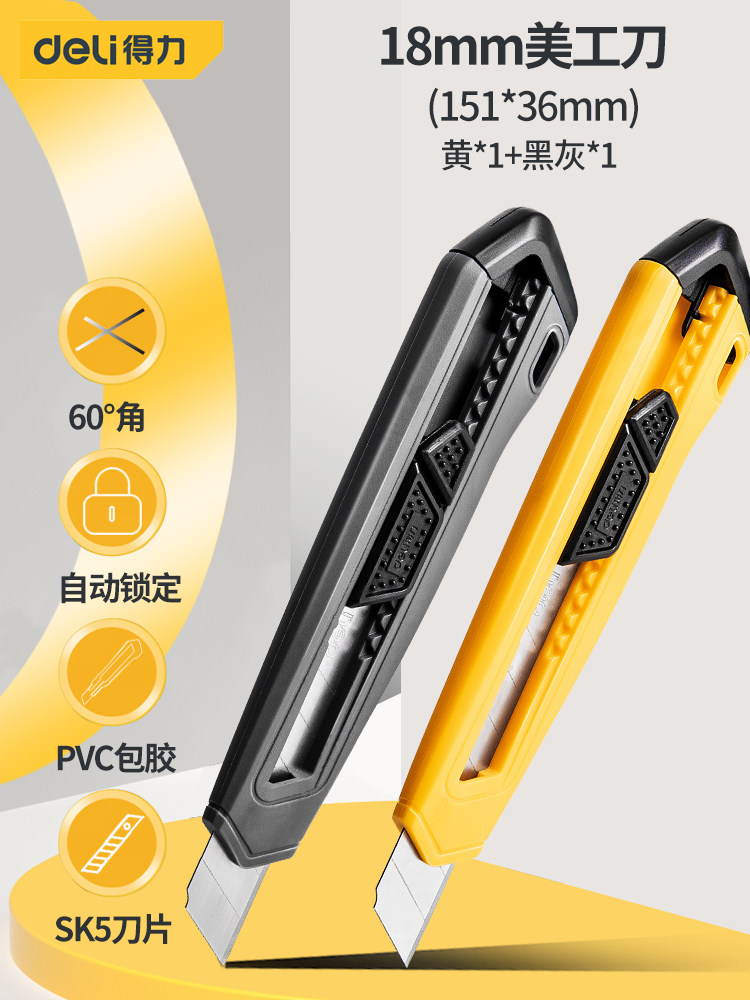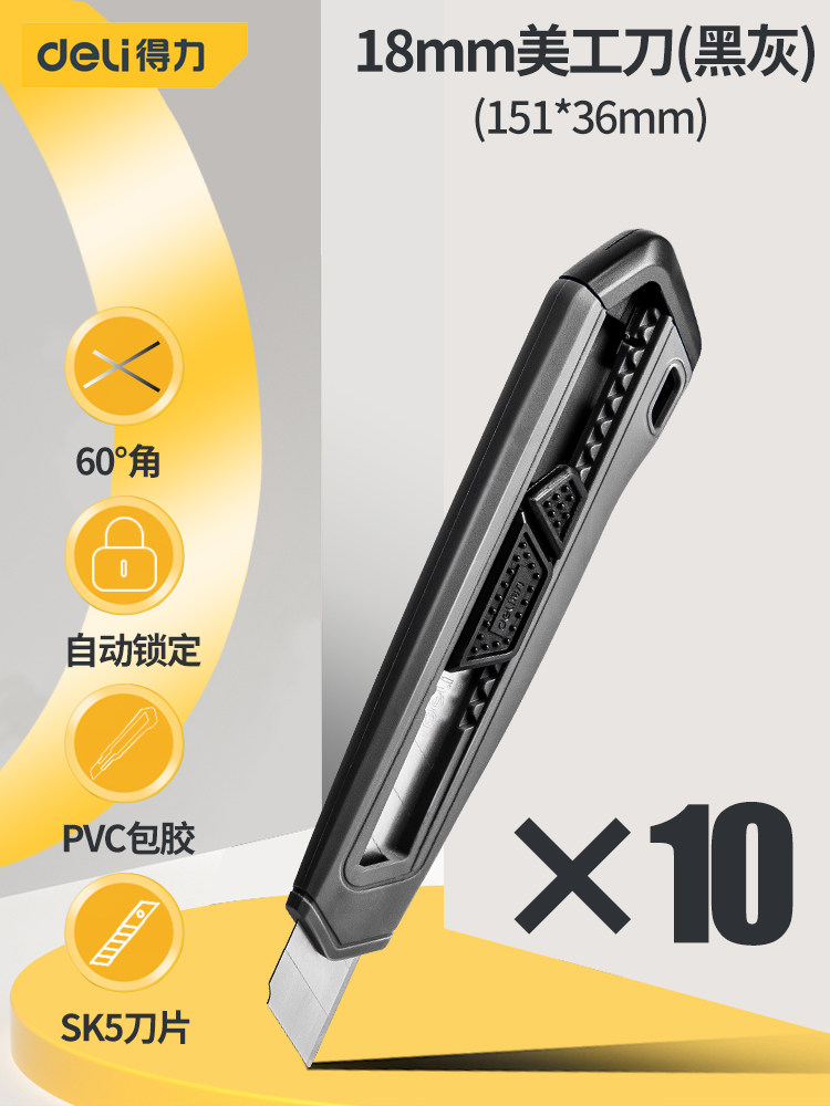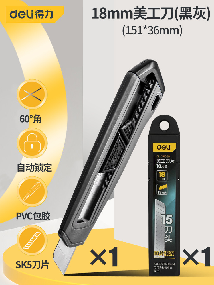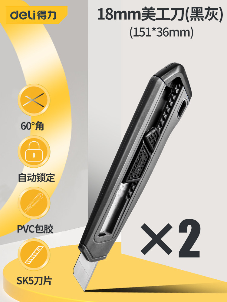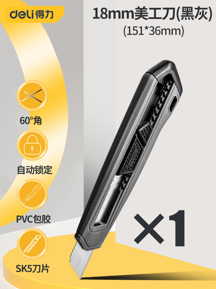 得力美工刀大号18mm壁纸刀黑色裁纸刀家用开箱刀高碳钢SK5拆快递神器多功能拆箱刀