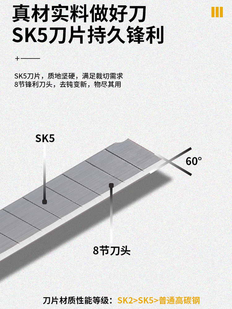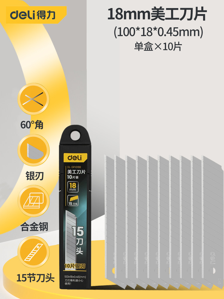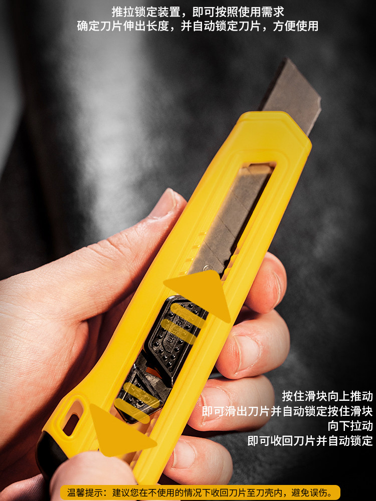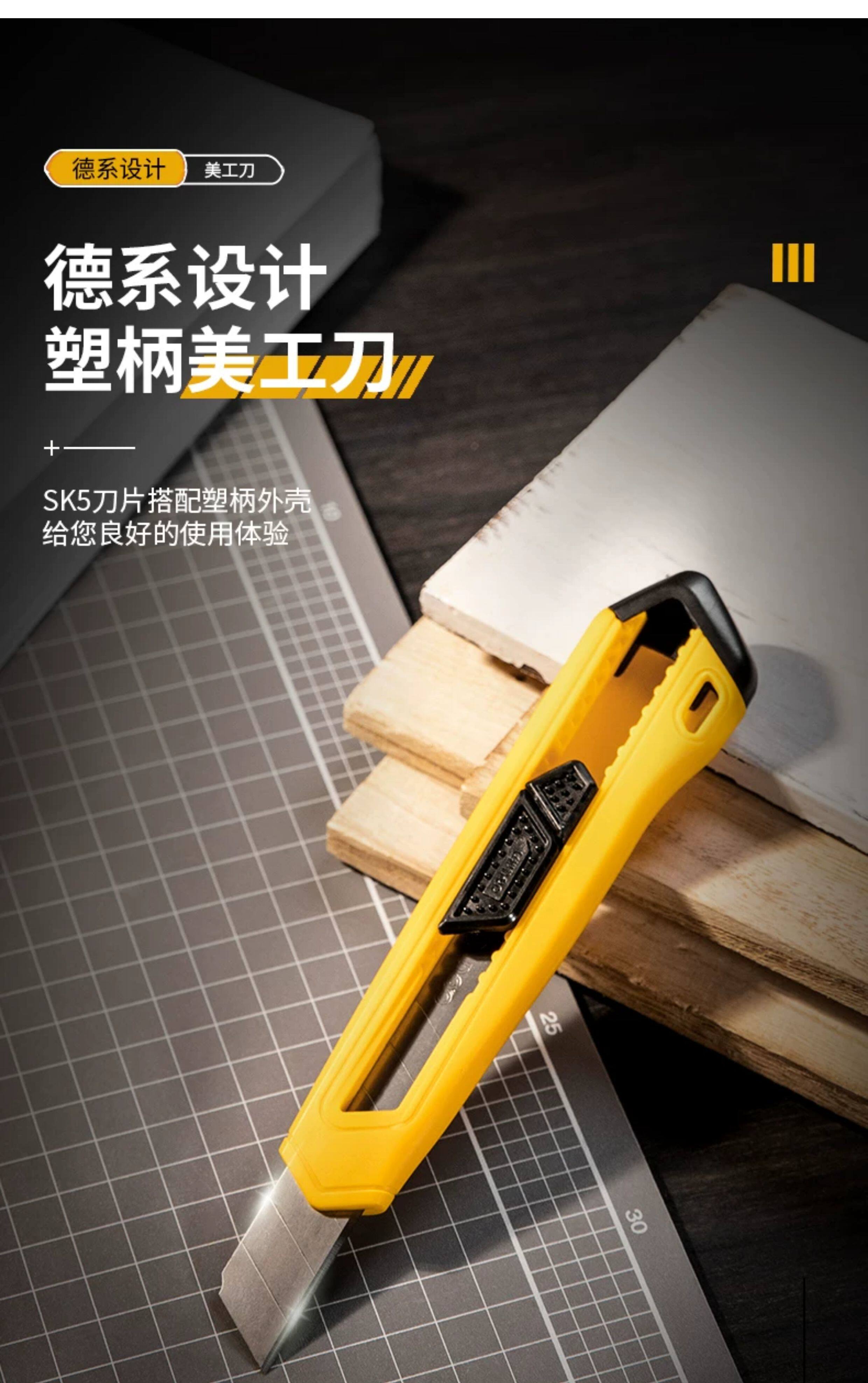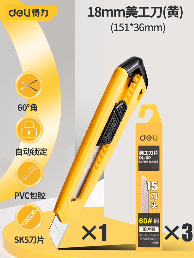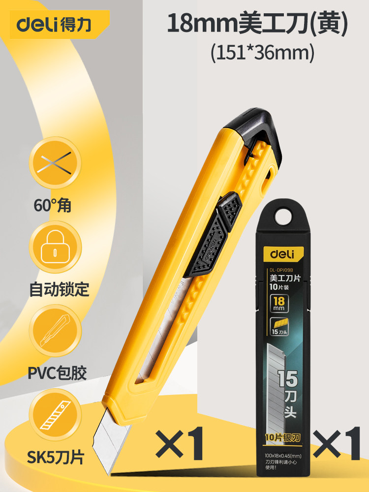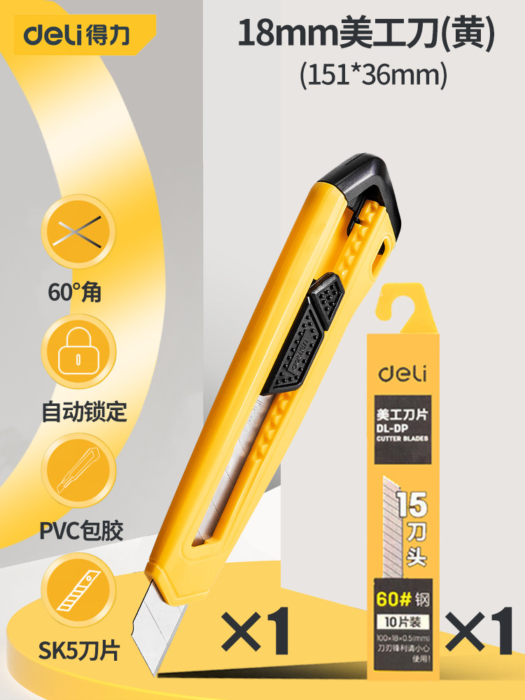 得力美工刀大号18mm壁纸刀黑色裁纸刀家用开箱刀高碳钢SK5拆快递神器多功能拆箱刀