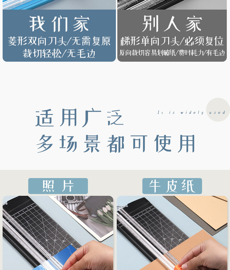 裁纸刀小型切纸刀神器便携照片剪裁器迷你闸刀铡纸刀A4手动相片纸张切割器多功能工资条专用刀办公滑动拆纸器