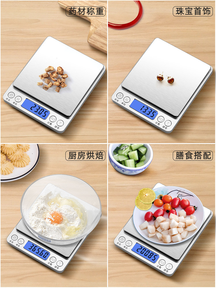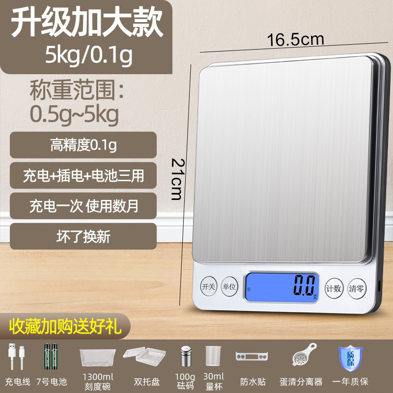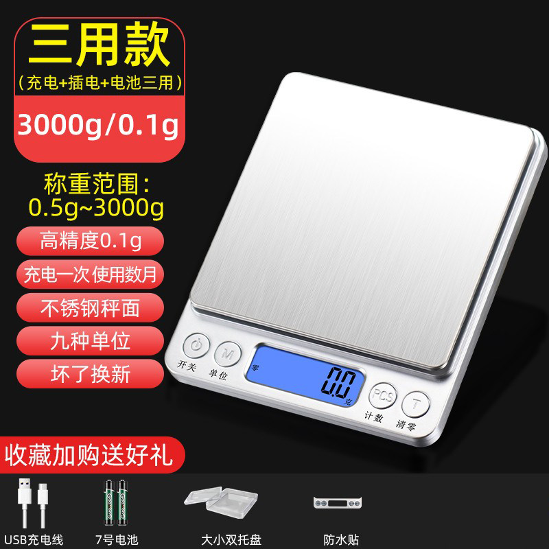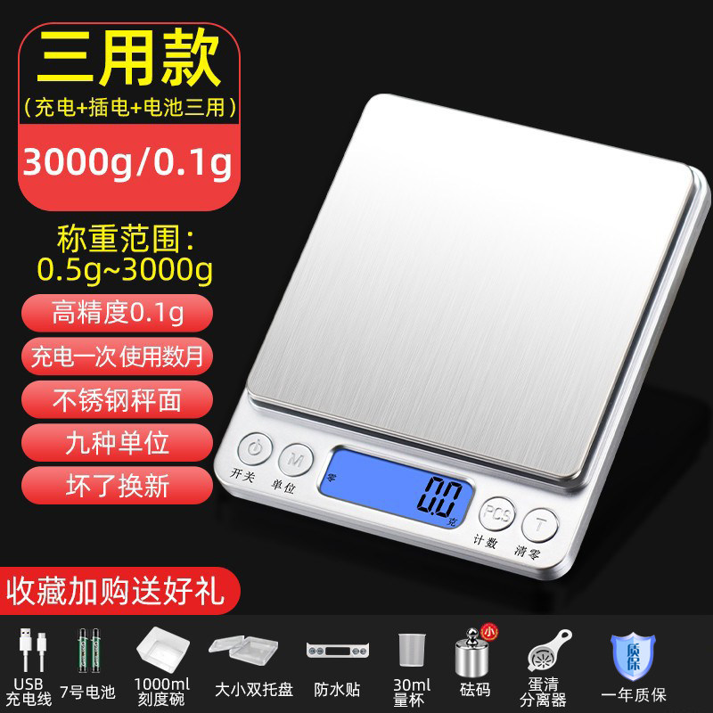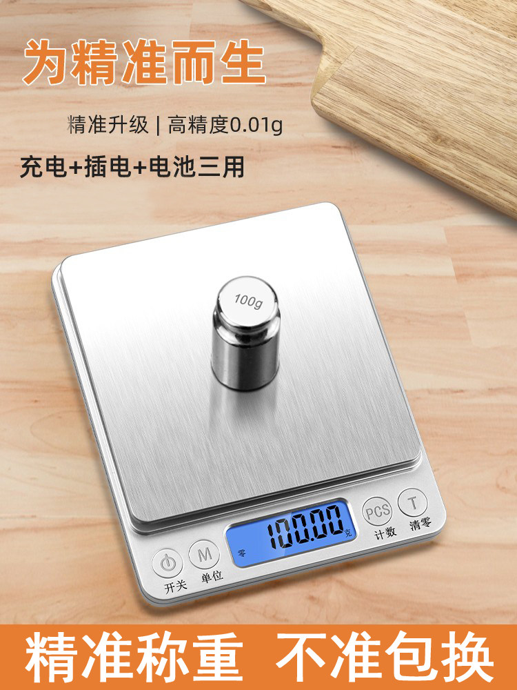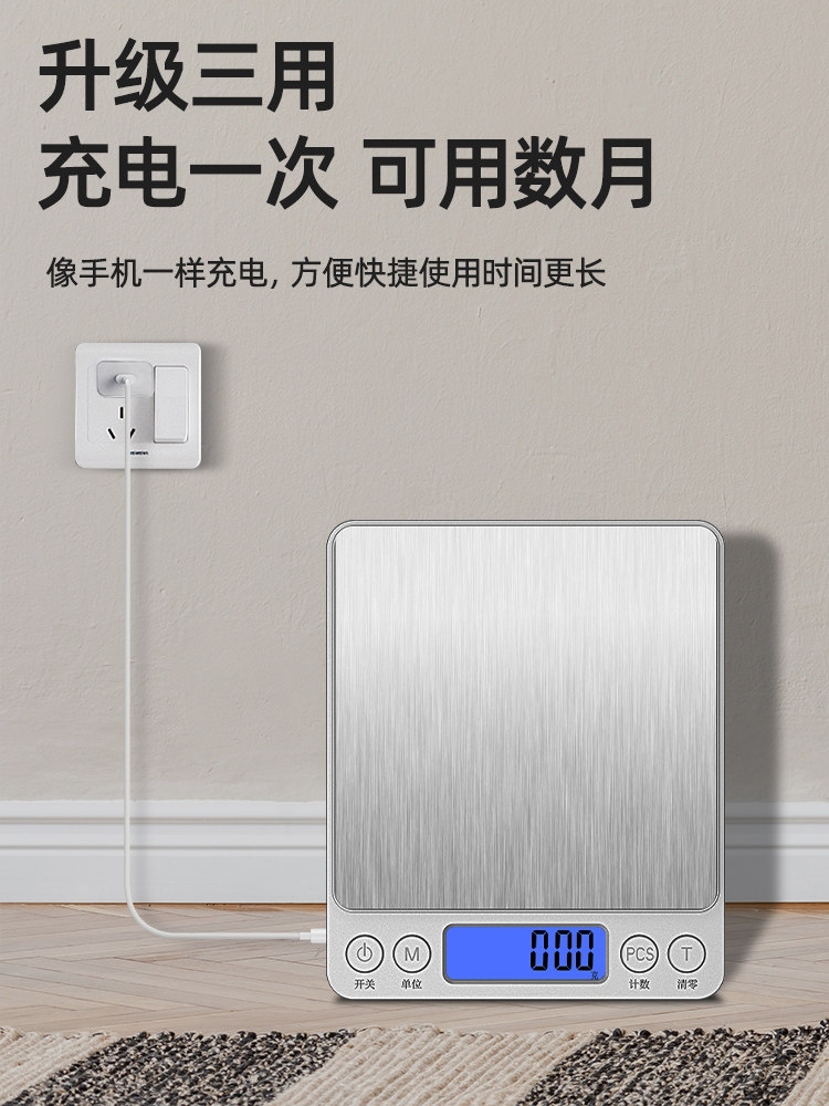 家用克数厨房秤电子秤高精度小型称重烘焙食物克称精准充电天平度