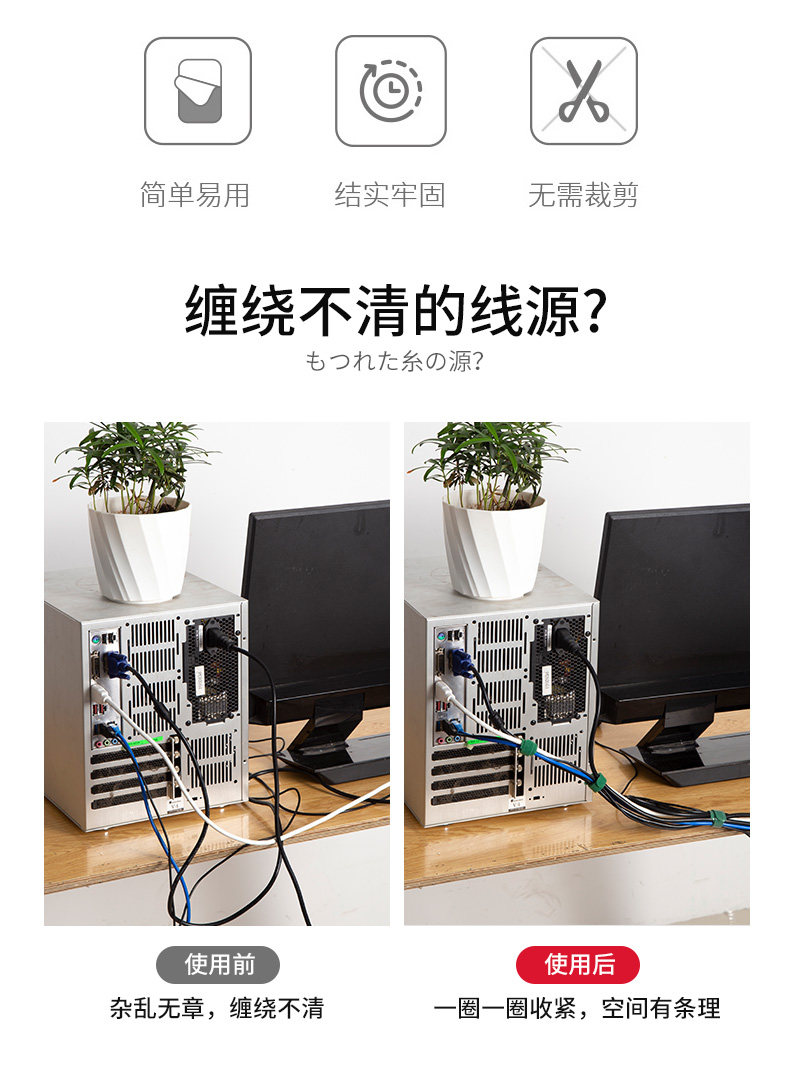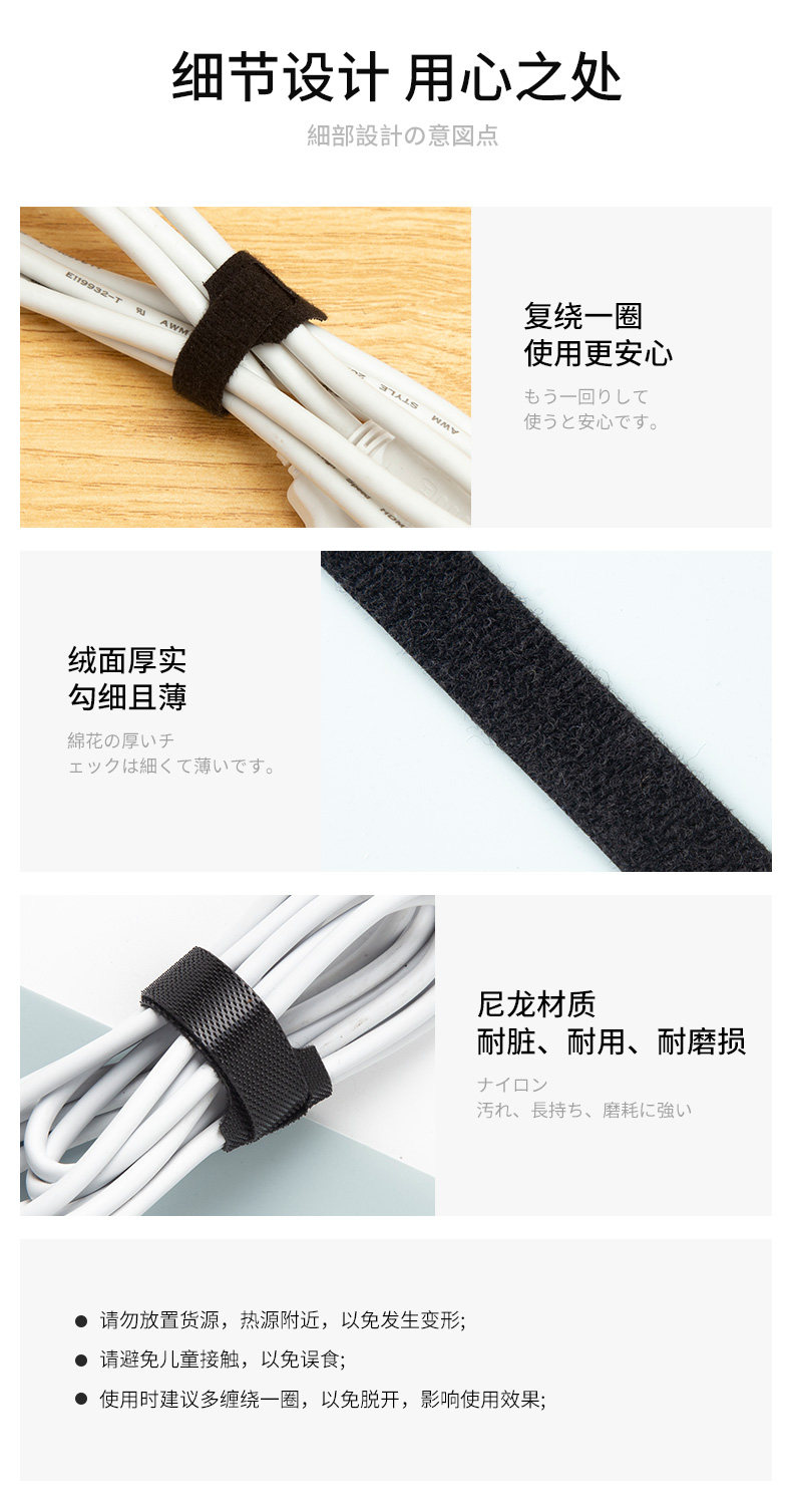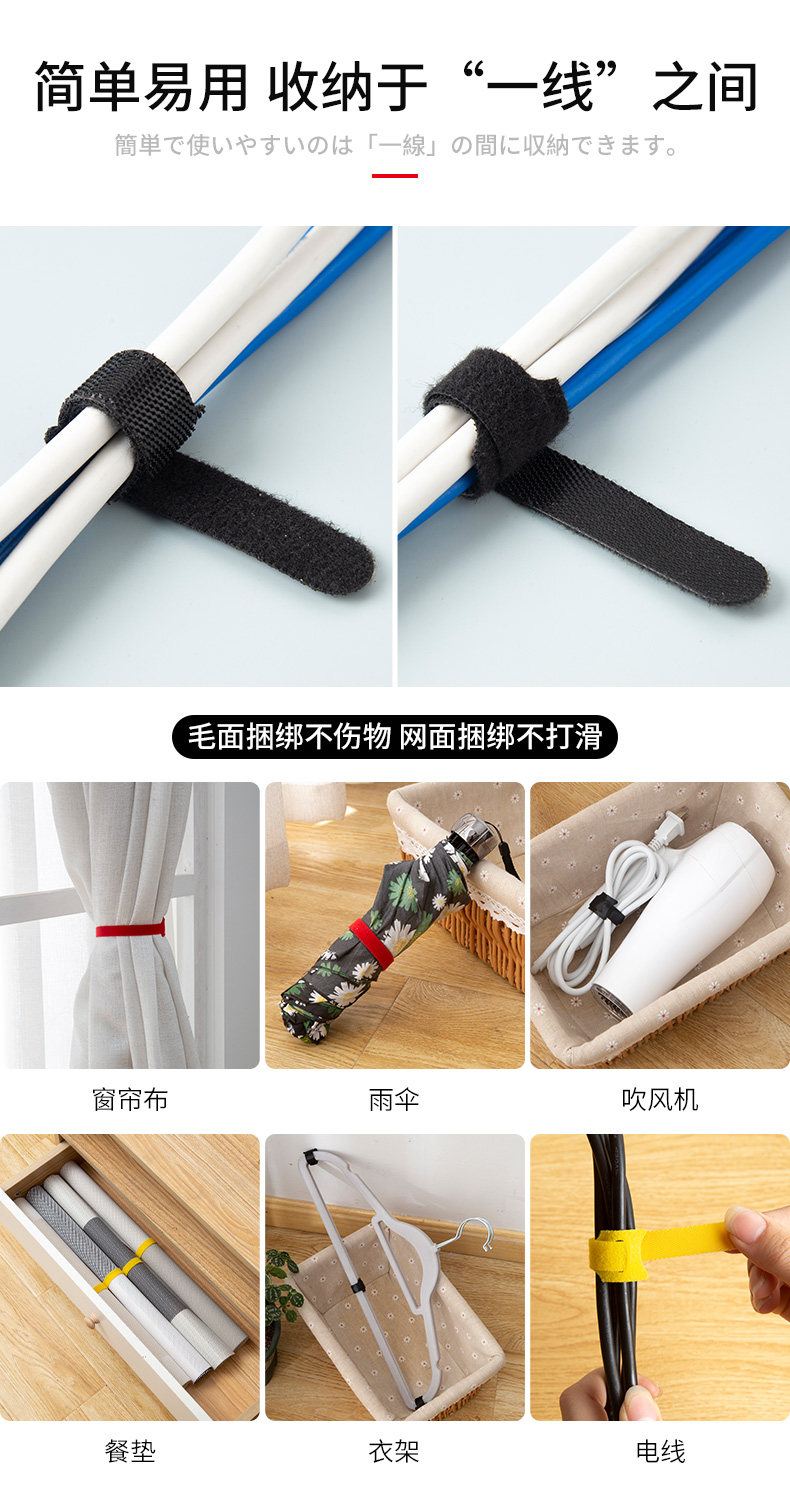 魔术贴扎线带数据线充电线电脑线收纳固定束线器家用理线走线