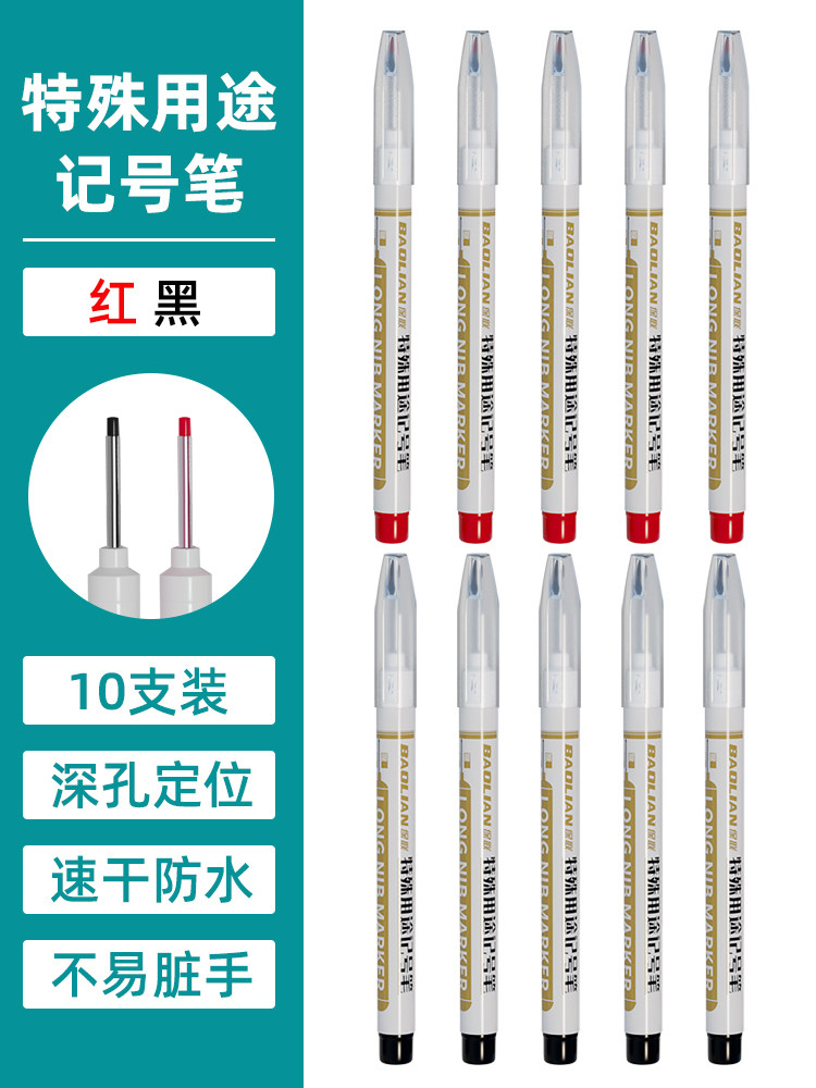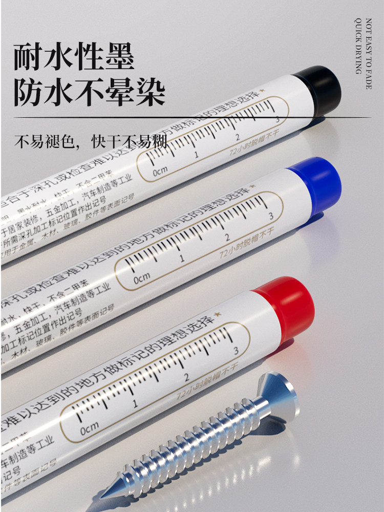 长头记号笔工地木工深孔特殊用途防水不掉色打孔标记长嘴画线油性