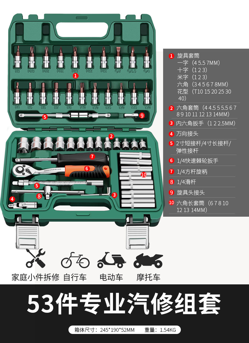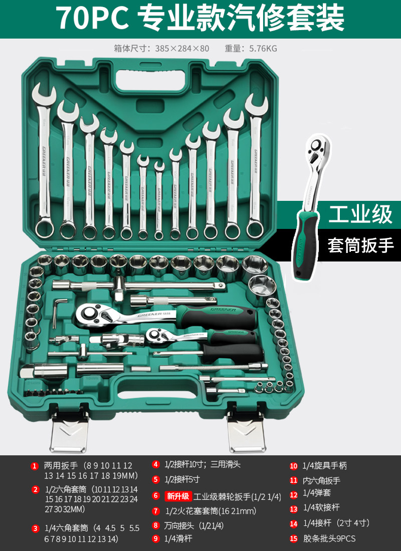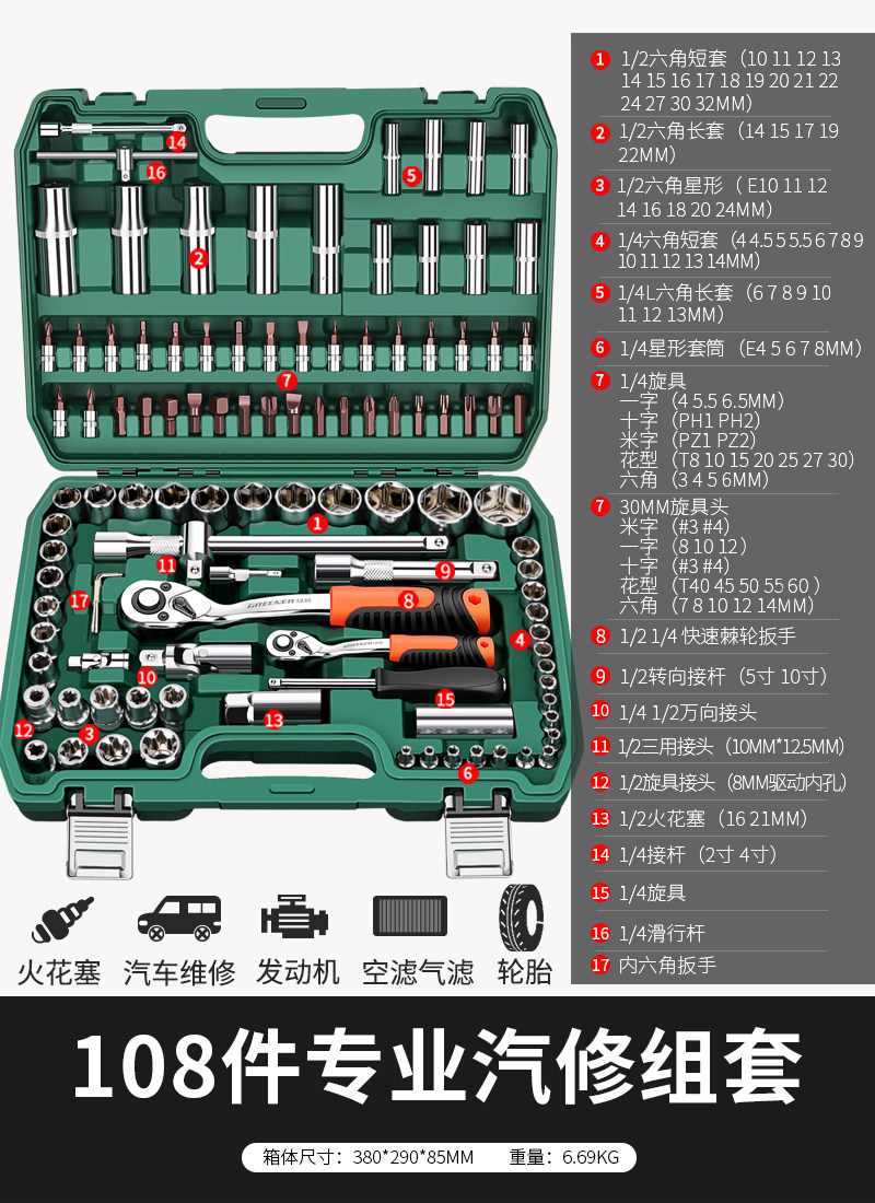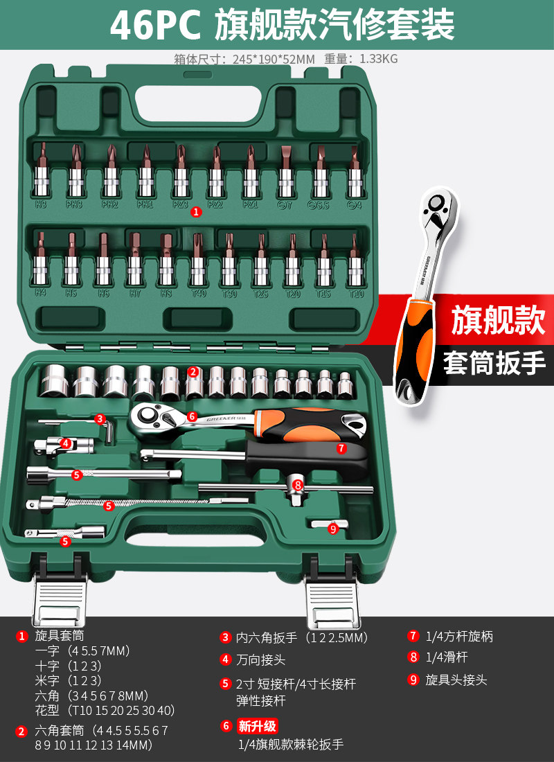 绿林小飞套筒套装组合汽修修车工具套装棘轮套筒扳手组合套装整套