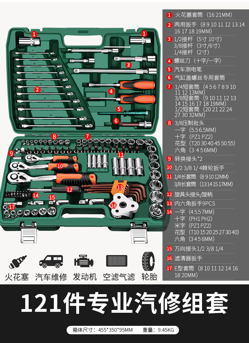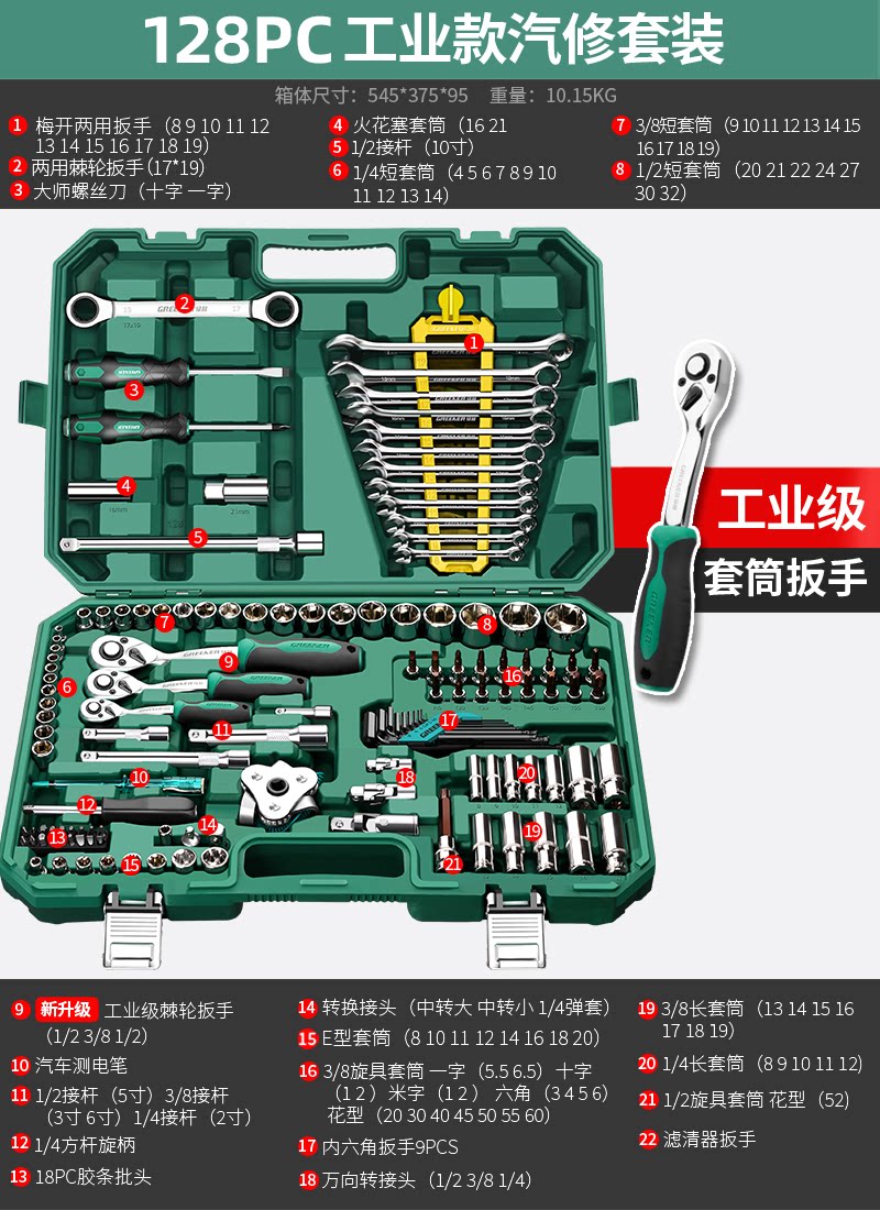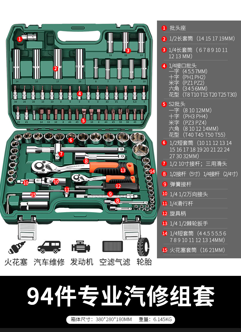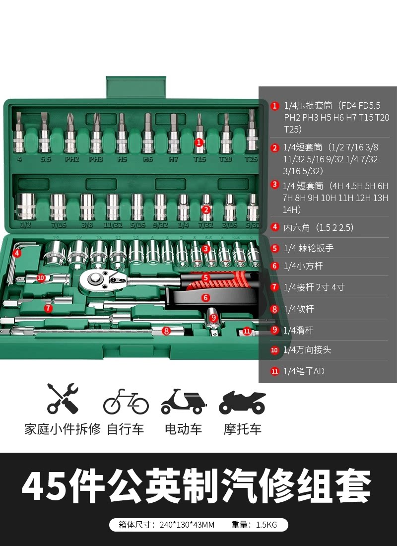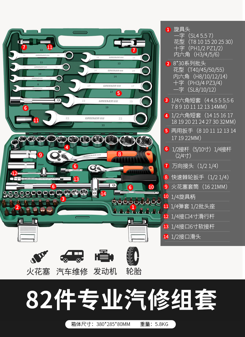 绿林小飞套筒套装组合汽修修车工具套装棘轮套筒扳手组合套装整套