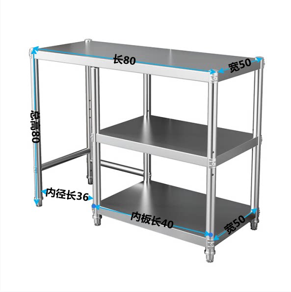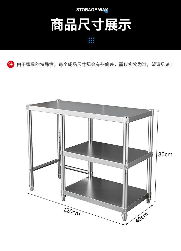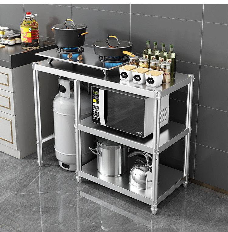 不锈钢厨房三层煤气罐置物架落地灶台架案板台面多功能收纳储物架
