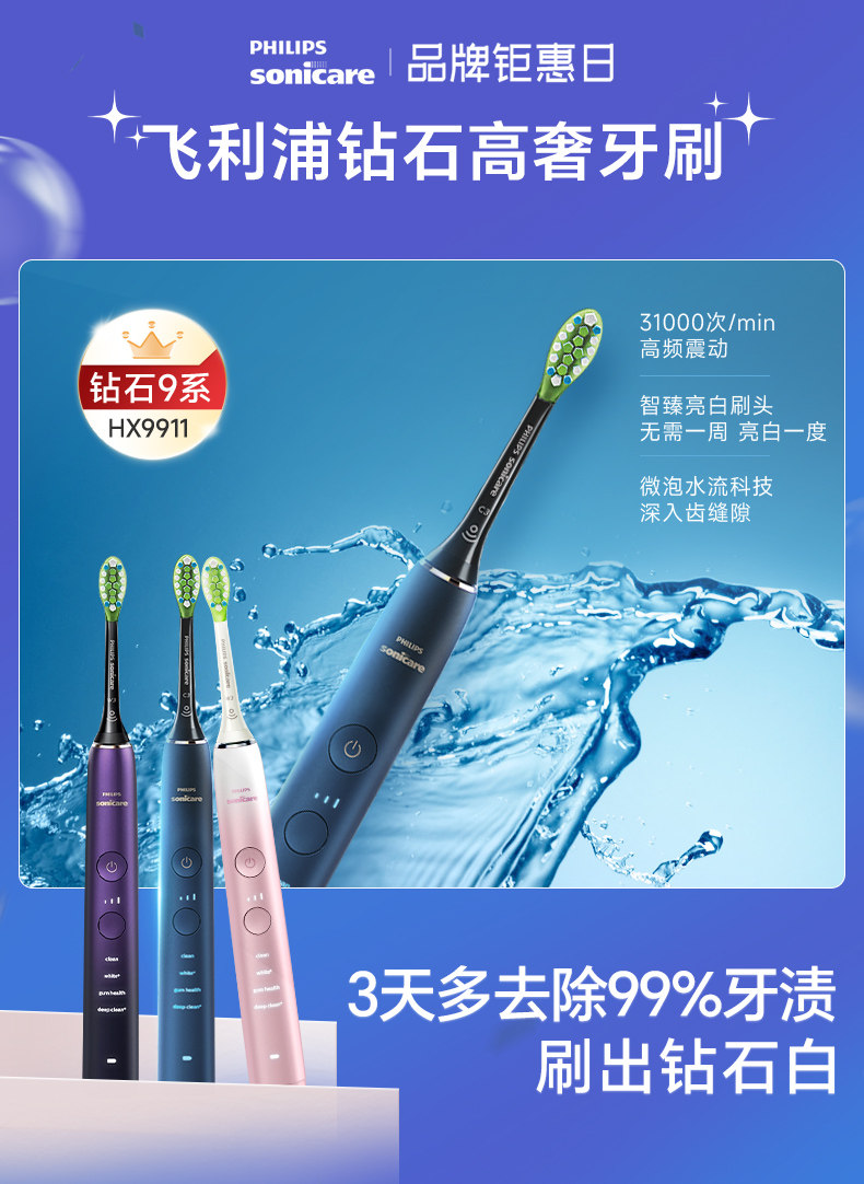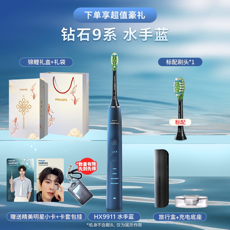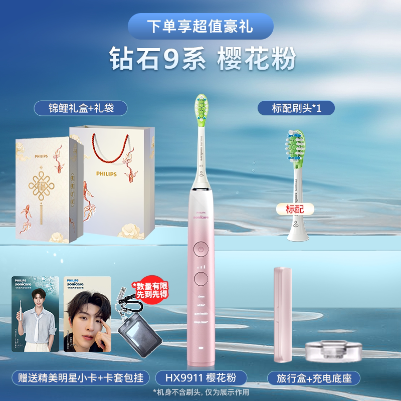 Philips/飞利浦声波智能电动牙刷钻石9系成人情侣礼物HX9911/2