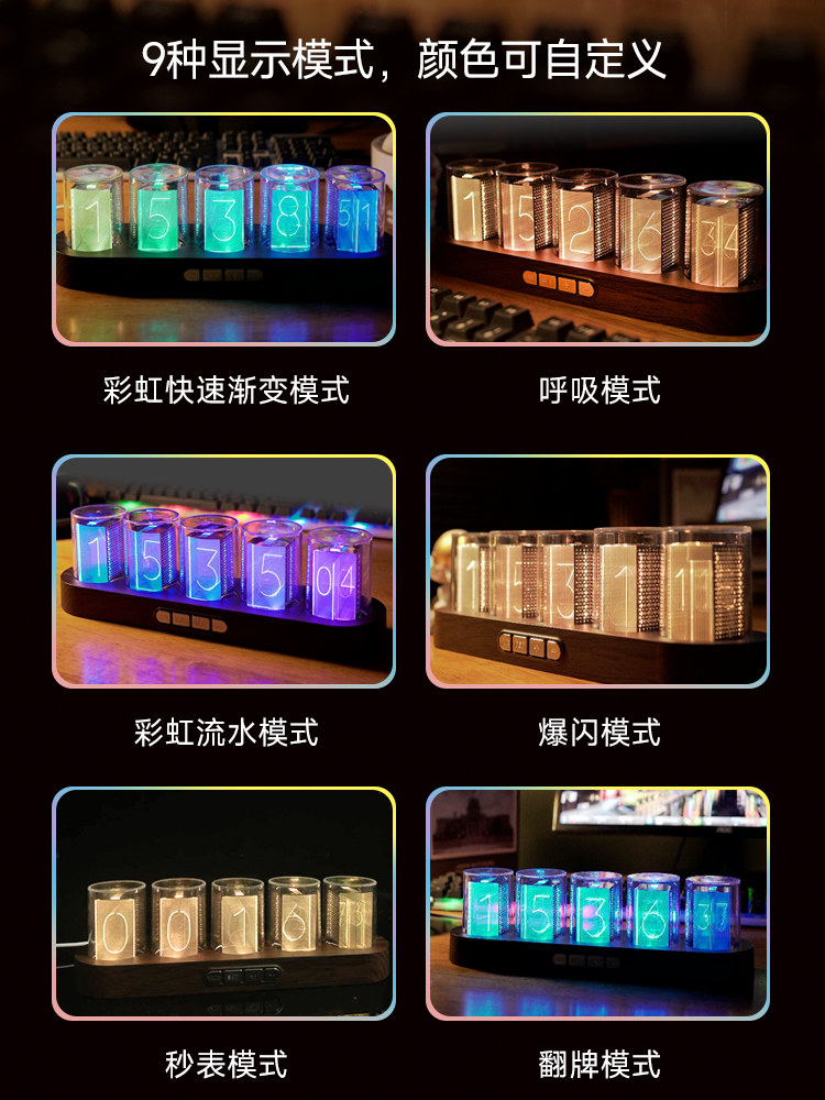 拟辉光管时钟led灯电竞电脑搭桌面科技rgb摆件套电子diy数字创意