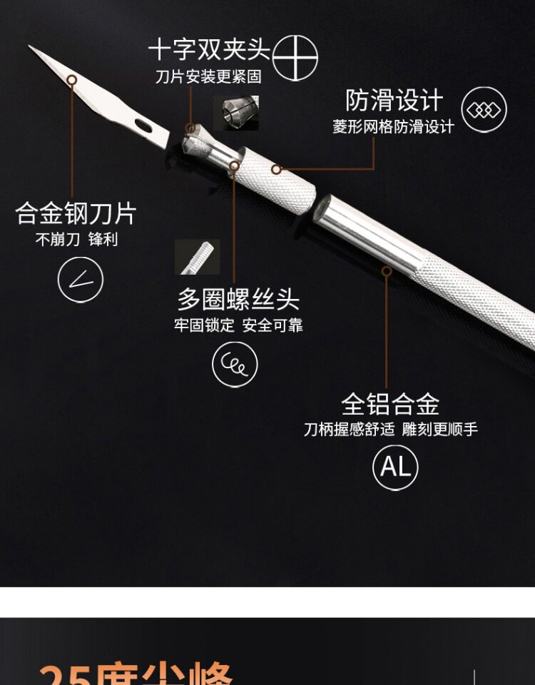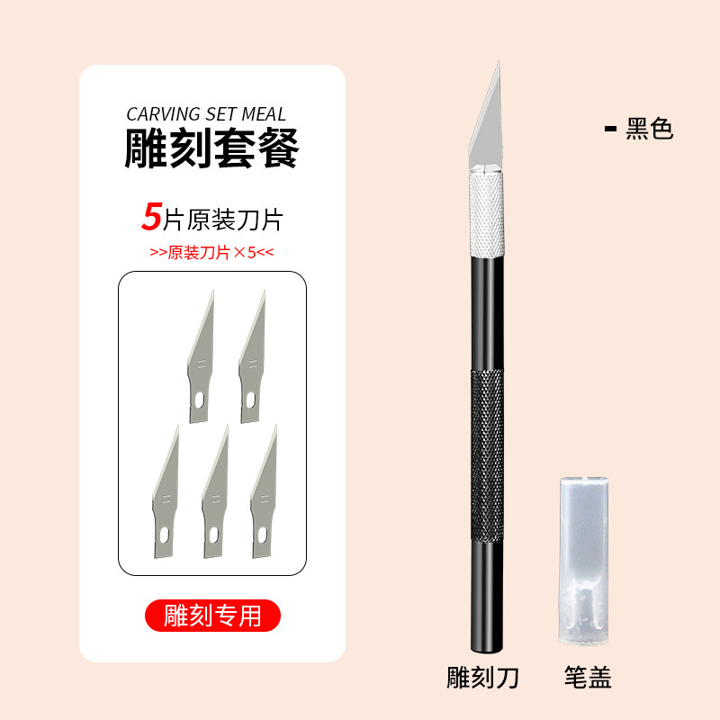60°以下 / 11cm / 3cm / 黑色 铝合金雕刻刀(送5支刀片)