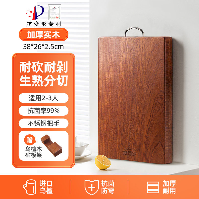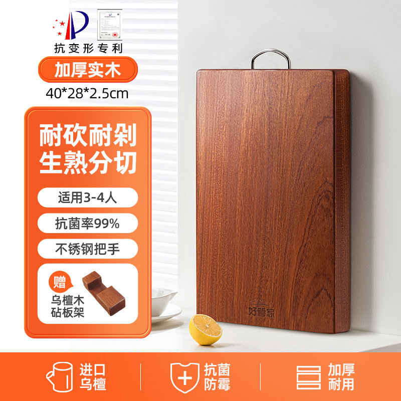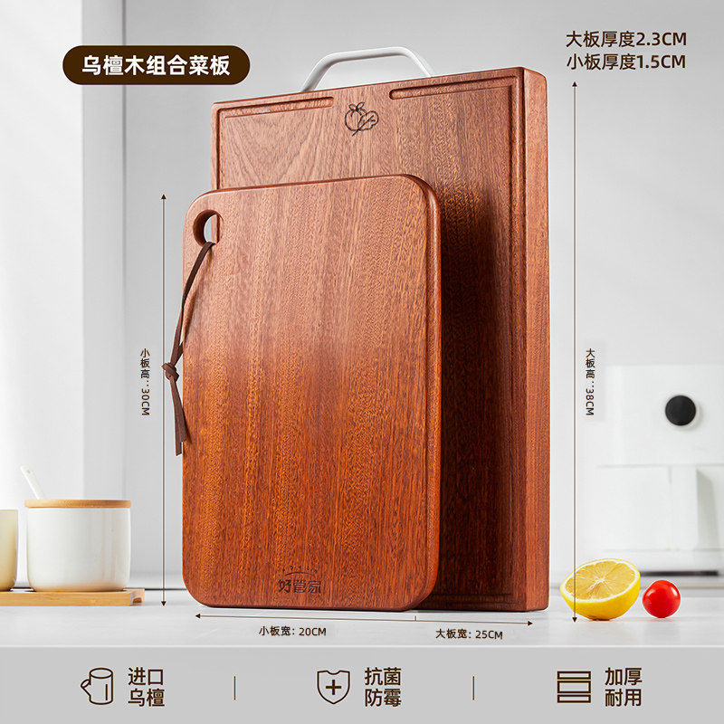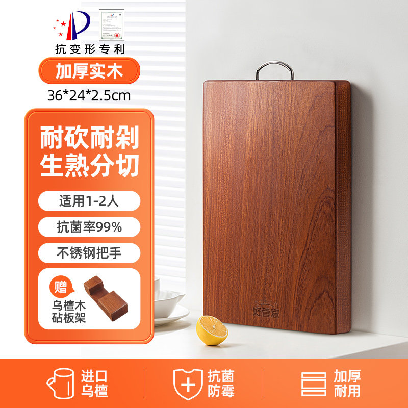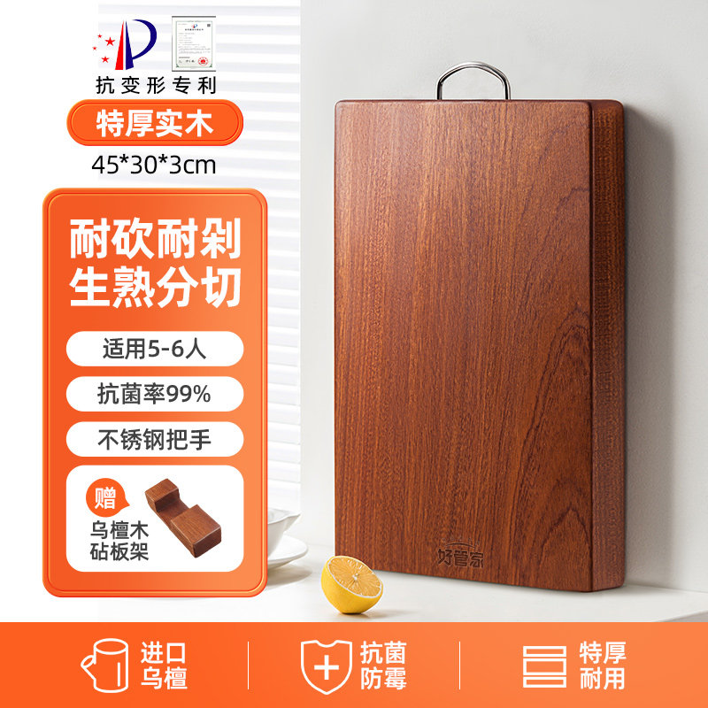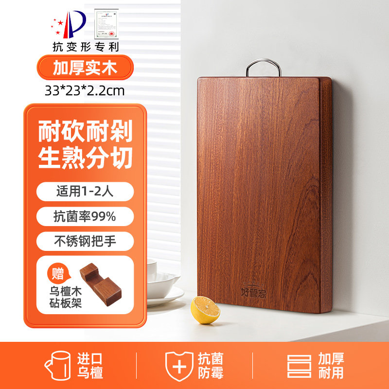 好管家乌檀木菜板实木抗菌防霉家用砧板木质案板擀面板占粘切菜板