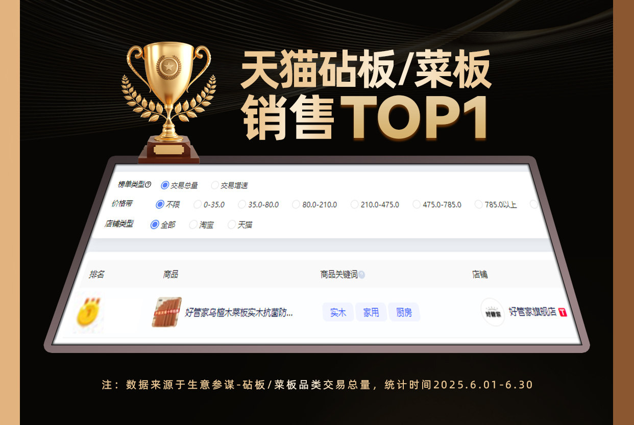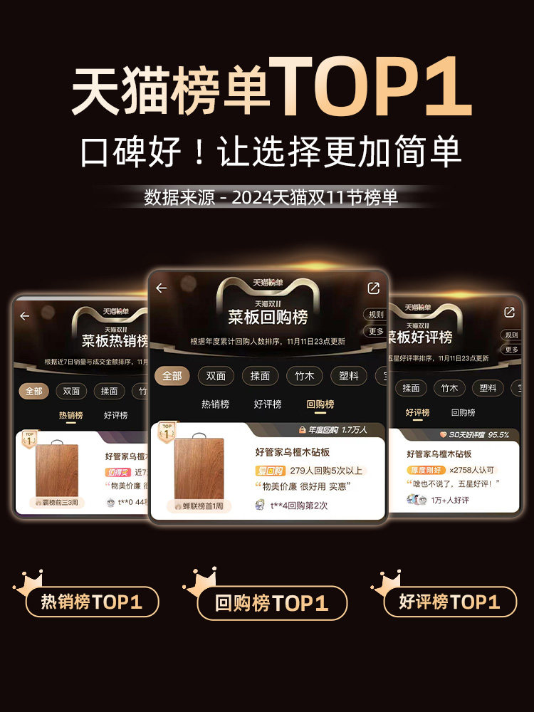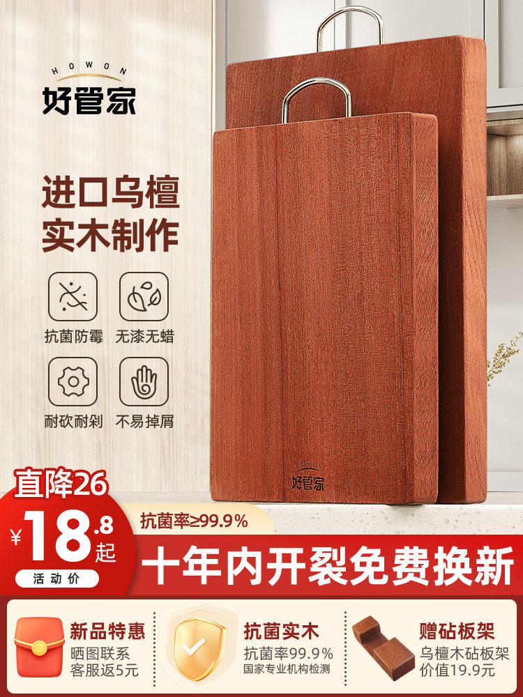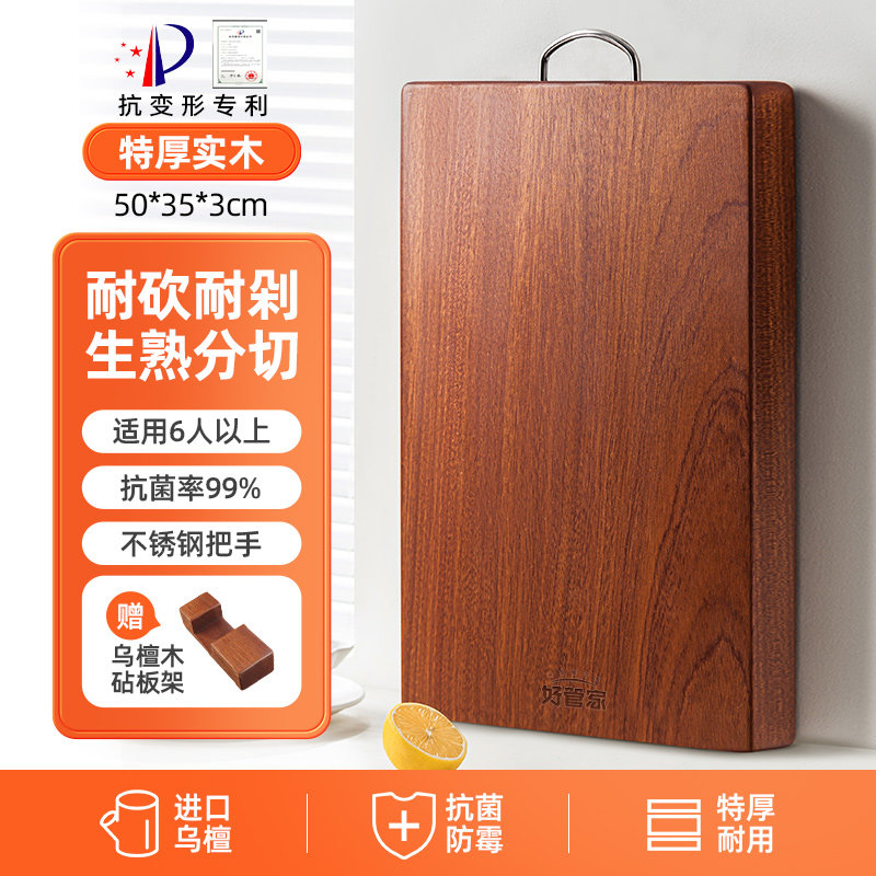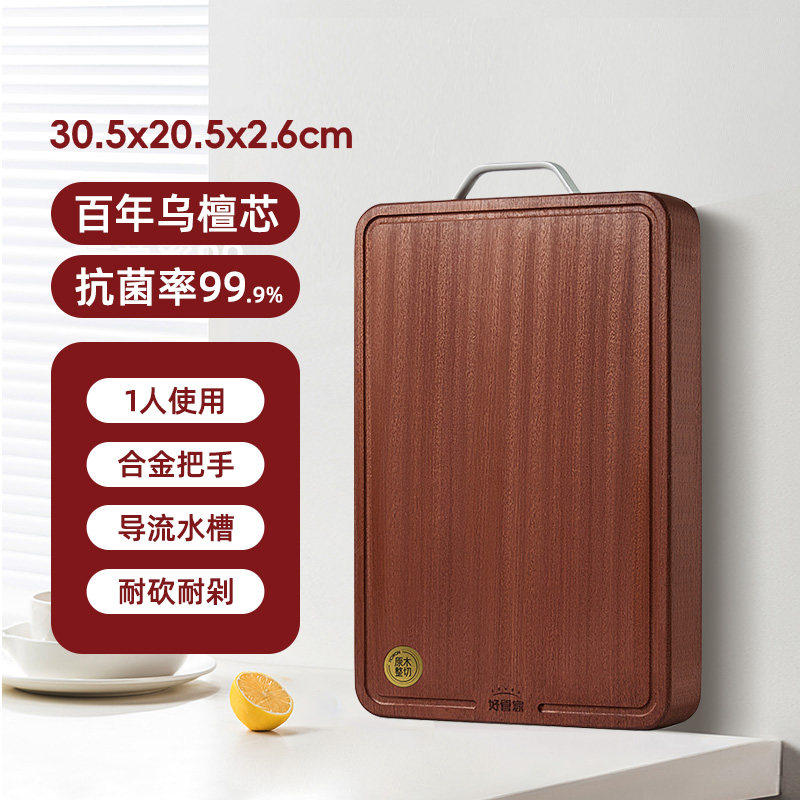 好管家乌檀木菜板实木抗菌防霉家用砧板木质案板擀面板占粘切菜板
