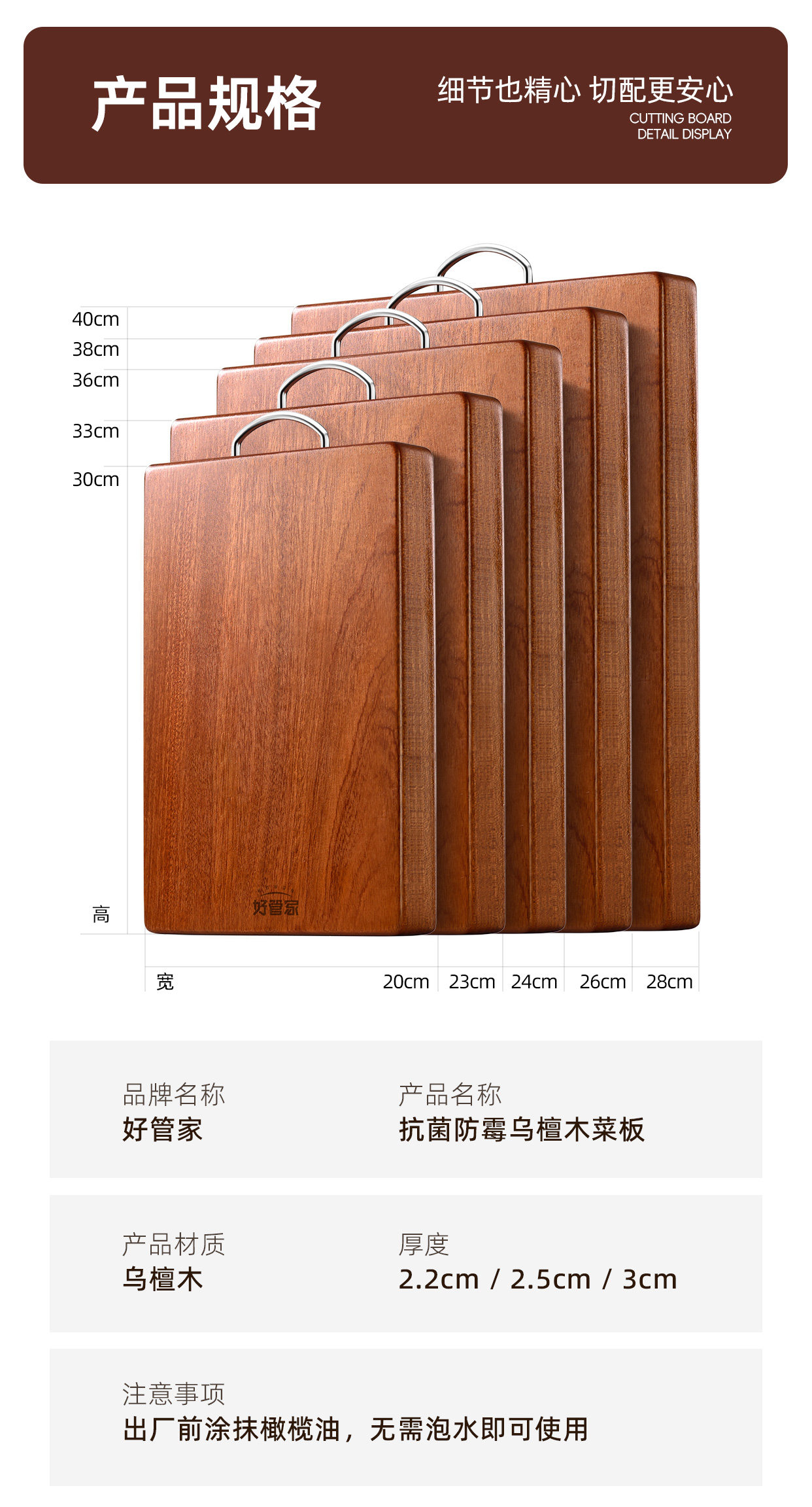 【抗菌实木】30*20*2.2CM【送乌檀木砧板架】