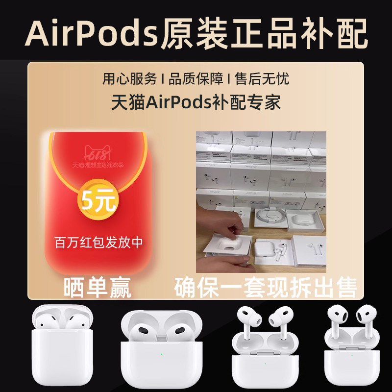 airpodsPro2代左右耳适用苹果耳机单只补配3仓丢失二三四充电盒4