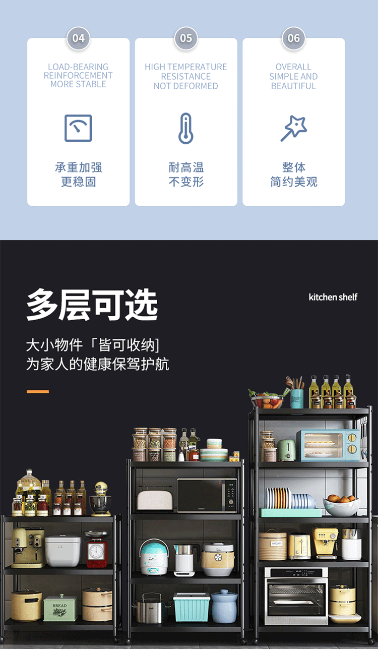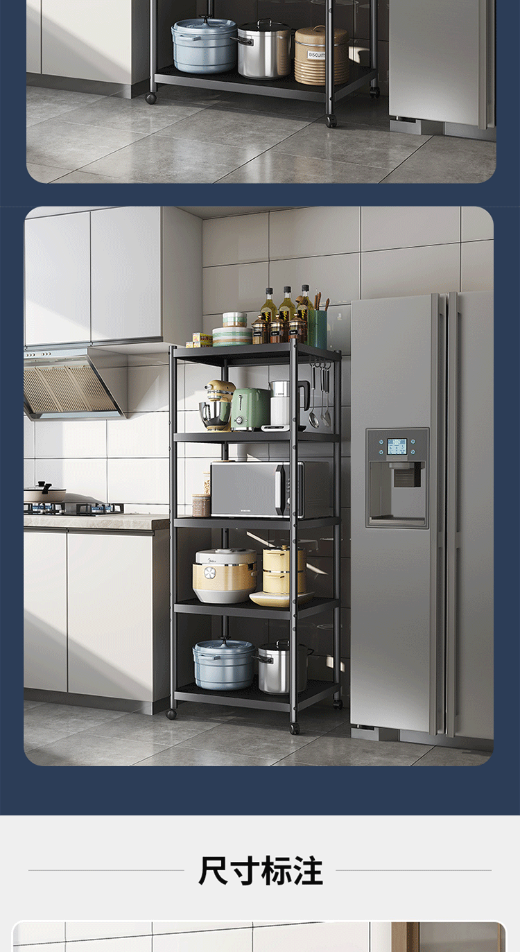 可移动厨房置物架落地多层家用烤箱微波炉收纳多功能锅具储物架子